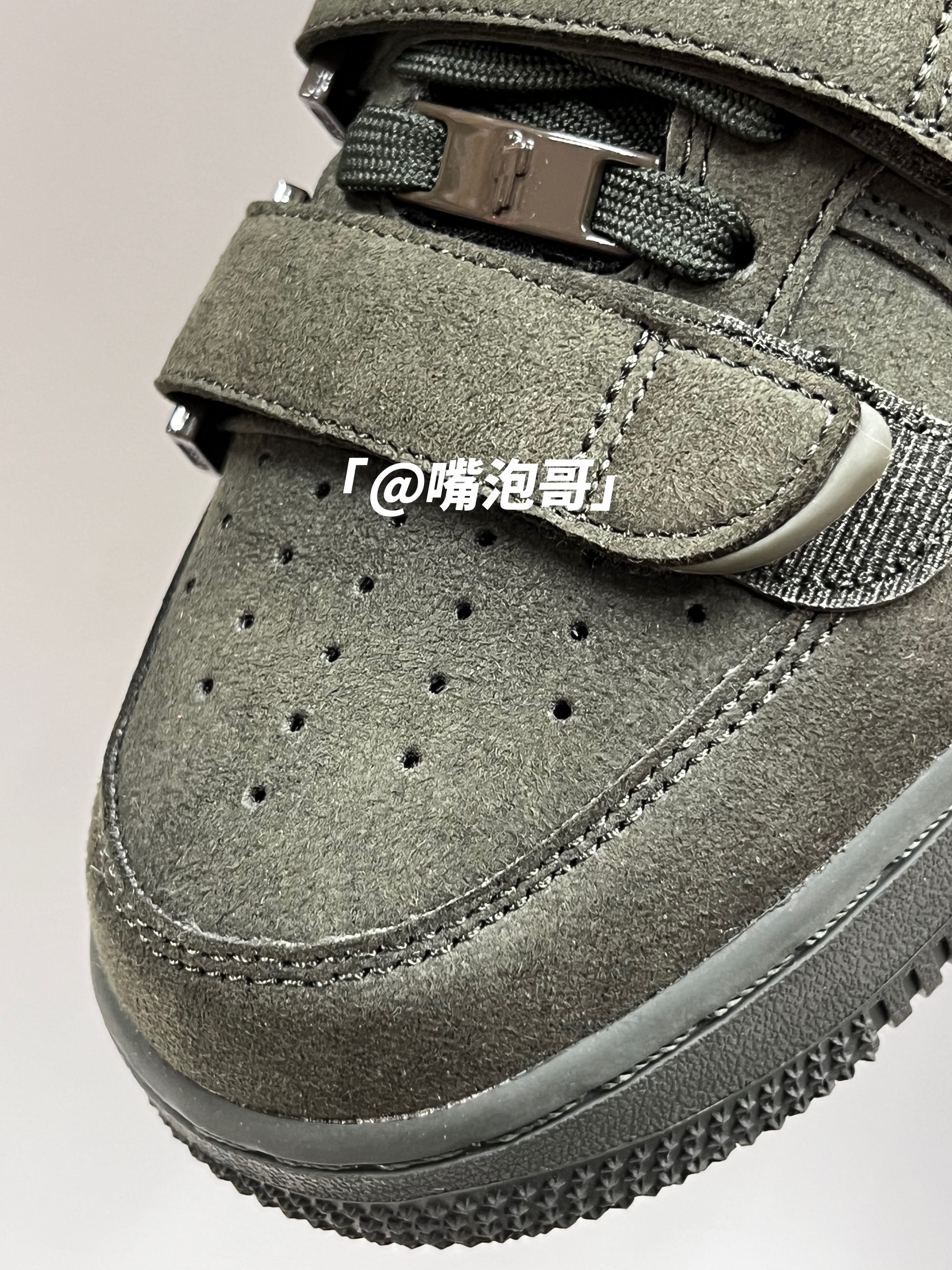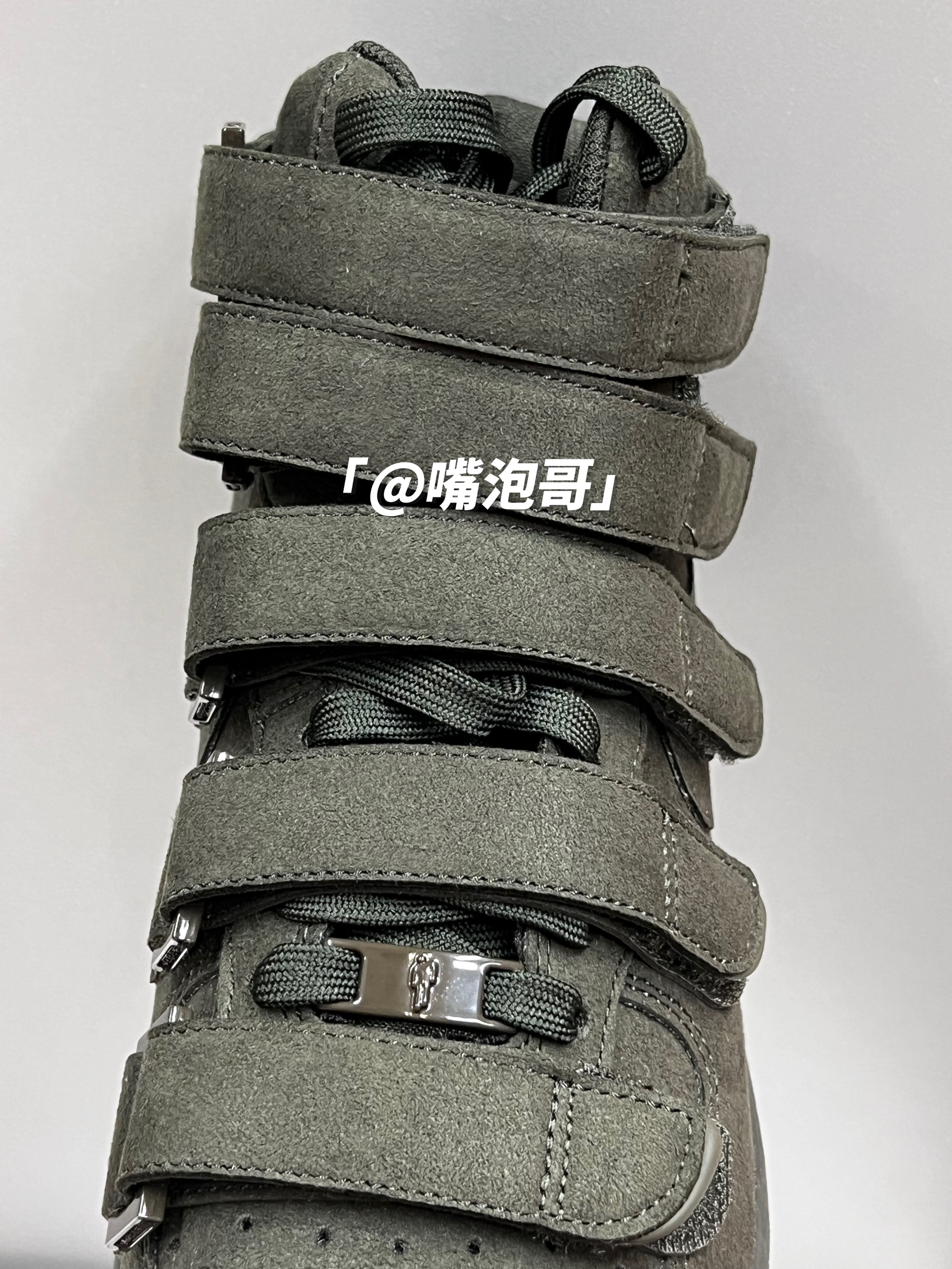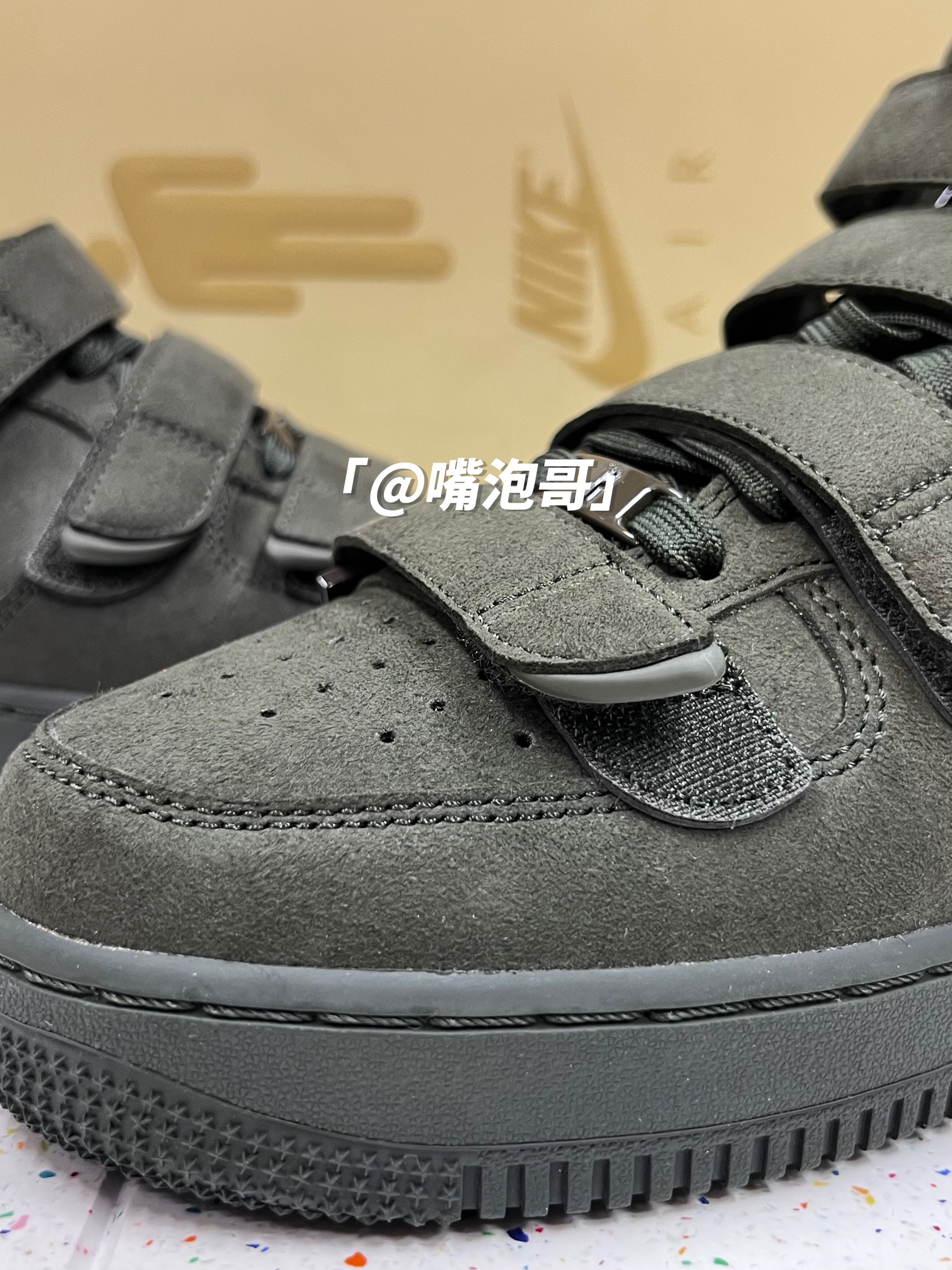 👟:Billie Eilish x Air Force 1 High "sequoia"墨绿色 简介: 鞋款是由Billie Eilish与耐克联名推出,选用了经典的空军一号高帮款作为设计鞋型,整体的外观上与其他相似,但在鞋面上加入了5条魔术贴绑带设计,并且鞋子整体运用了墨绿色来呈现,使其具有较高的辨识度。 细节: 鞋面采用了复合磨砂皮革制成,鞋身两侧的swoosh同样选用此种材料,与...