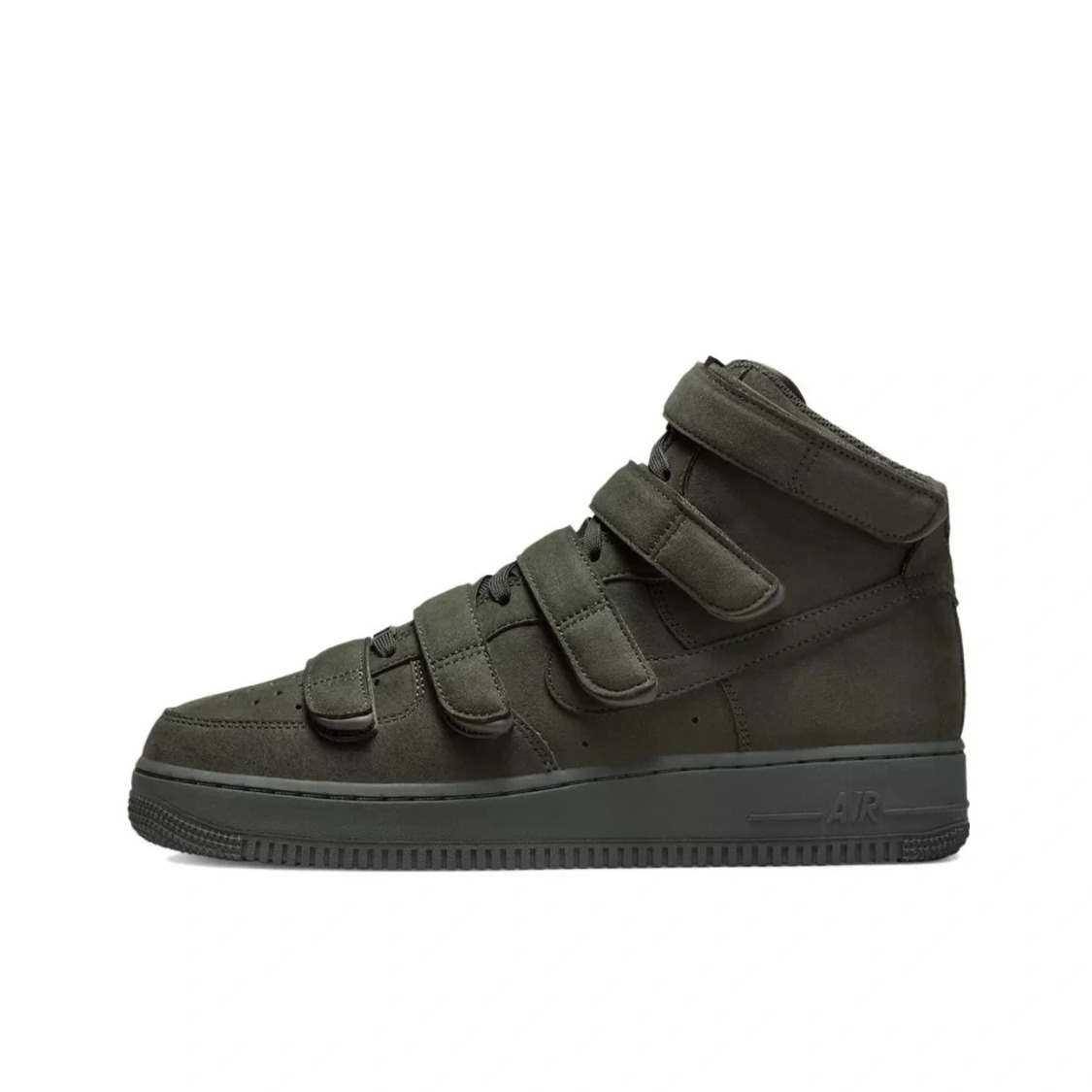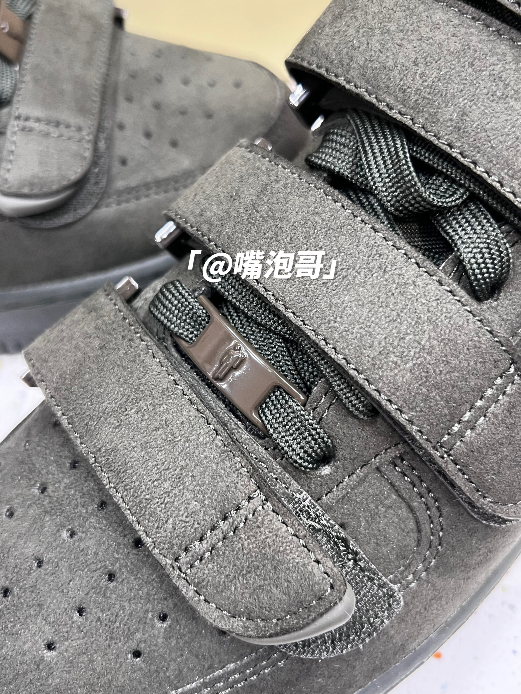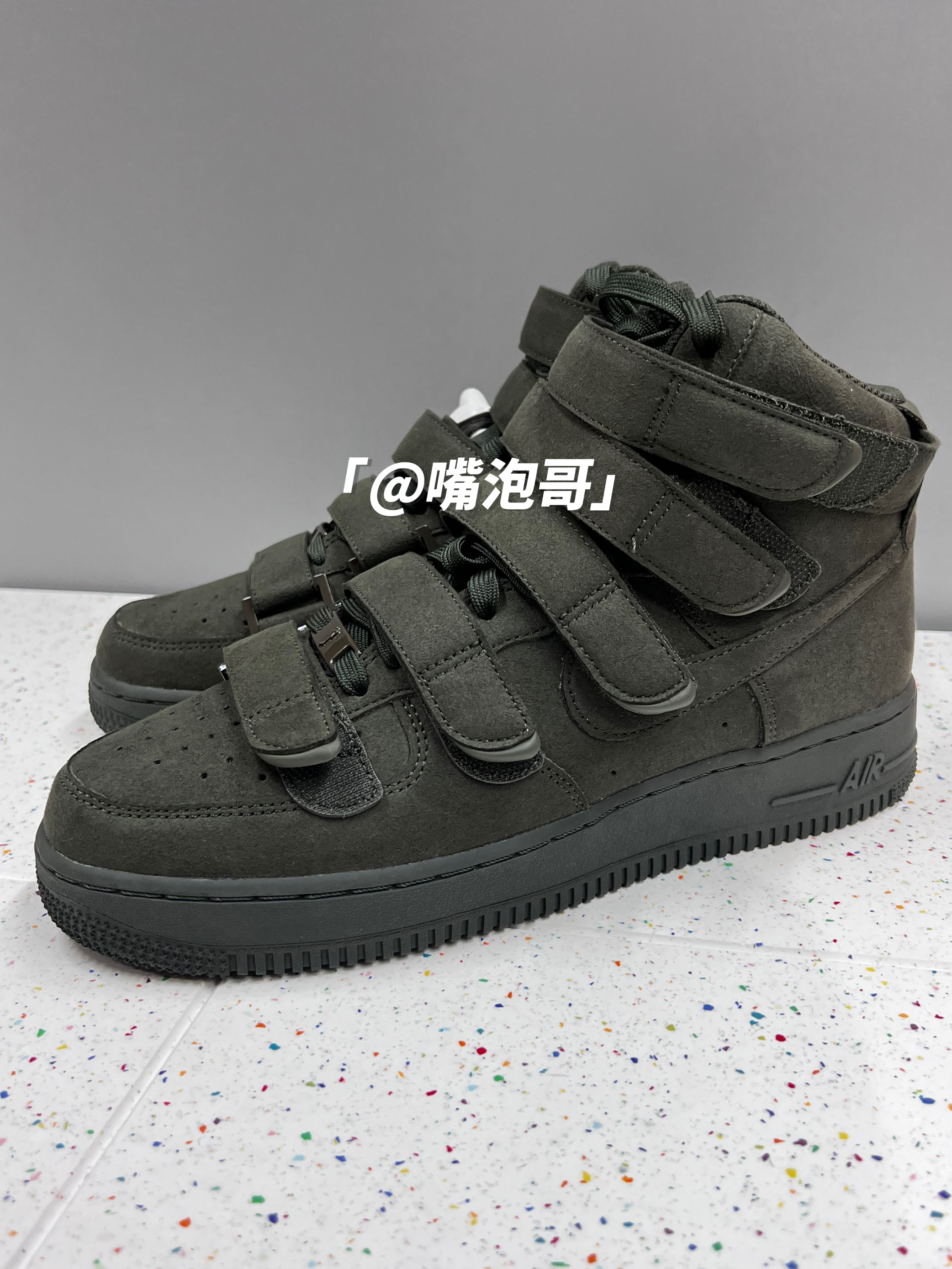 👟:Billie Eilish x Air Force 1 High "sequoia"墨绿色 简介: 鞋款是由Billie Eilish与耐克联名推出,选用了经典的空军一号高帮款作为设计鞋型,整体的外观上与其他相似,但在鞋面上加入了5条魔术贴绑带设计,并且鞋子整体运用了墨绿色来呈现,使其具有较高的辨识度。 细节: 鞋面采用了复合磨砂皮革制成,鞋身两侧的swoosh同样选用此种材料,与...