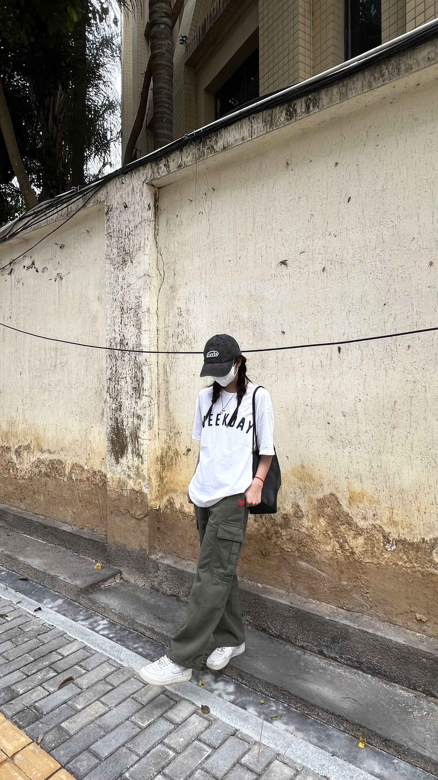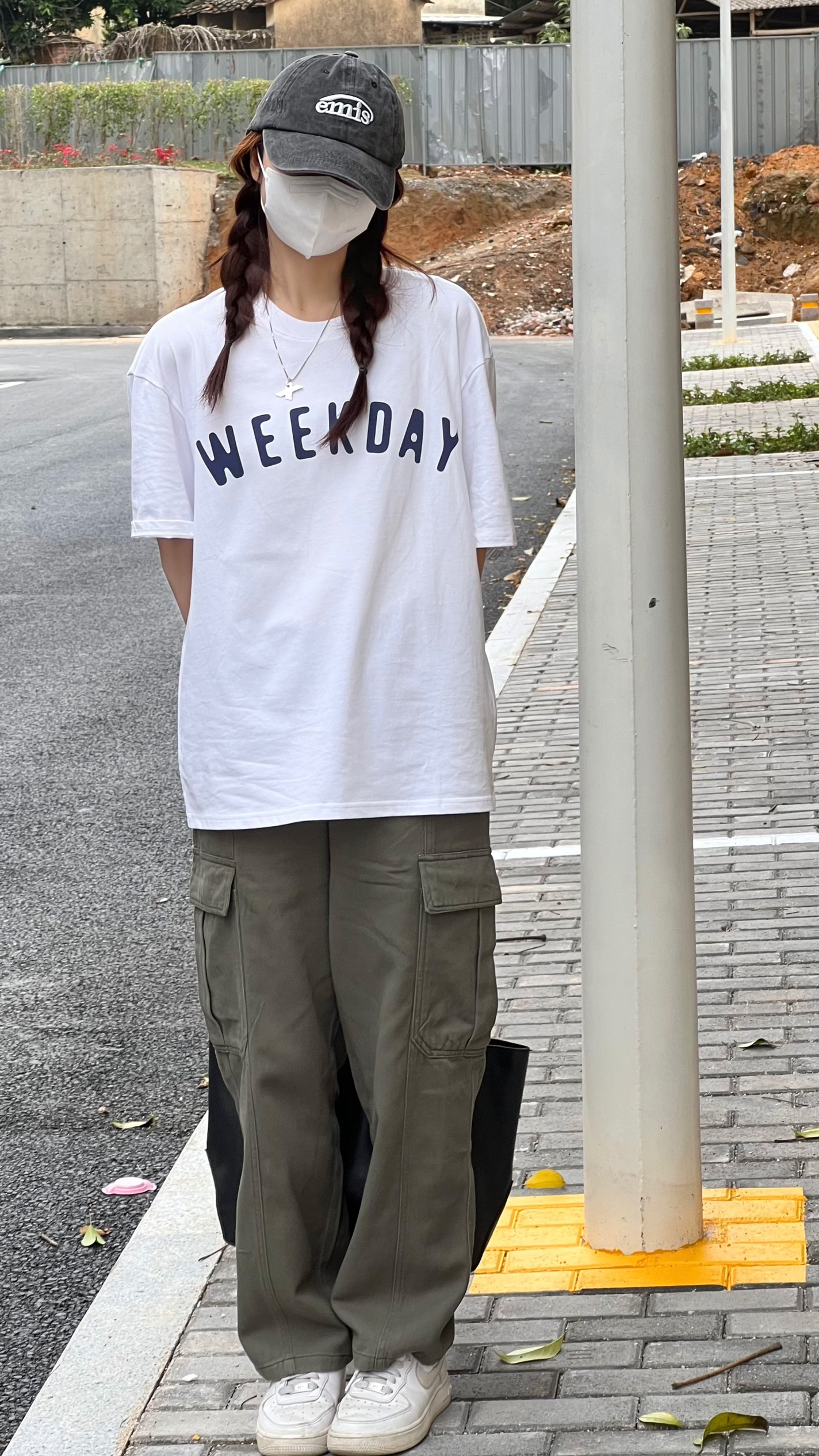 最后抓住夏天的尾巴做一个工装女孩,短袖T恤搭配口袋工装裤,又是休闲舒适的一天