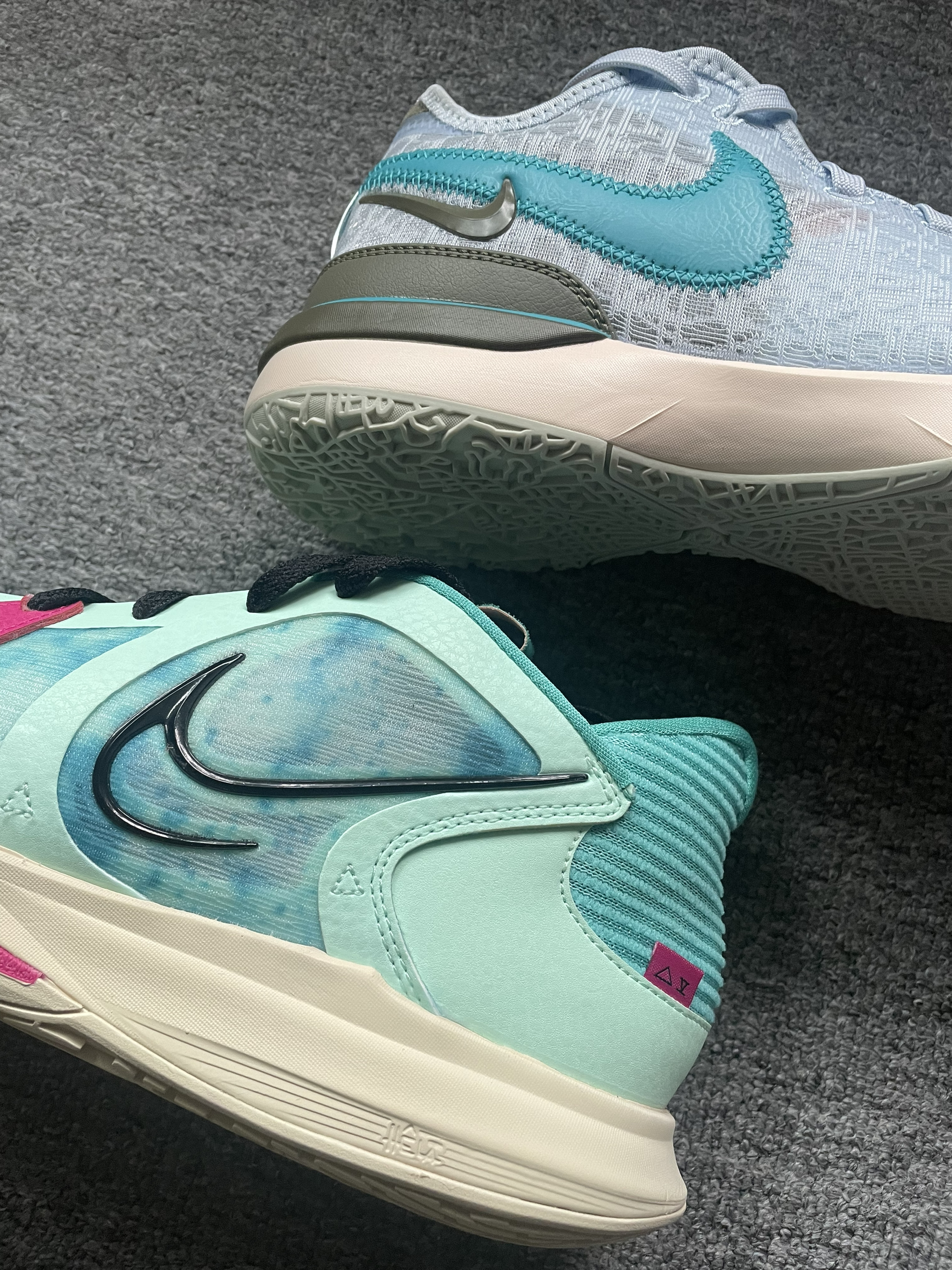 Nike Lebron NXXT Gen Zoom 蓝白 双层网纱鞋面,包裹支撑更好,强度更好。中底为Nike经典前后Air Zoom 气垫,脚感和缓震一点毛病没有,这种感觉是发泡材质给不了你的。尤其是后跟部分,不论是港宝材质还是后跟泡棉部分都更加稳定一些! XDR的橡胶大底更加实用,抓地耐磨都非常不错!这个配色还有一定的降价空间,可以再等等看! Nike Kyrie low5 C...