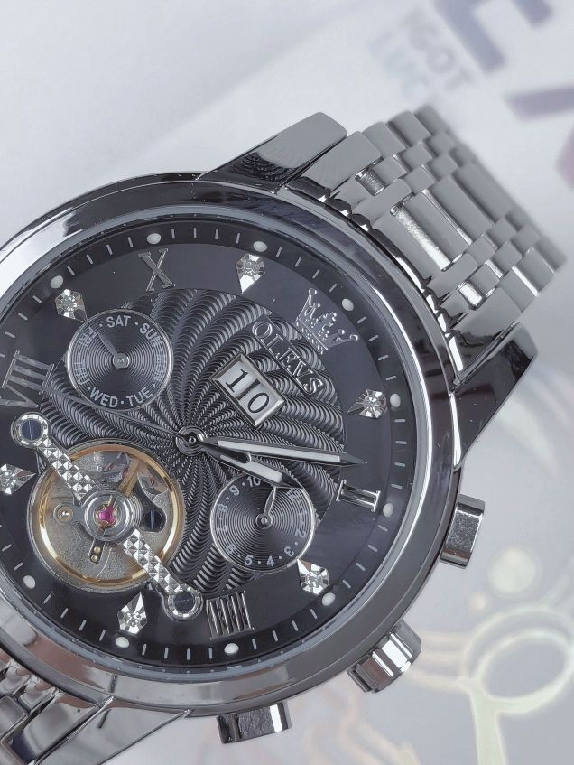 本篇笔记关联了OLEVS/欧利时 瑞士认证品牌双日历黑科技高档钢带霸气多功能夜光防水运动镂空机械男士手表 本色黑面等商品,为用户提供真实的使用体验和购买参考。