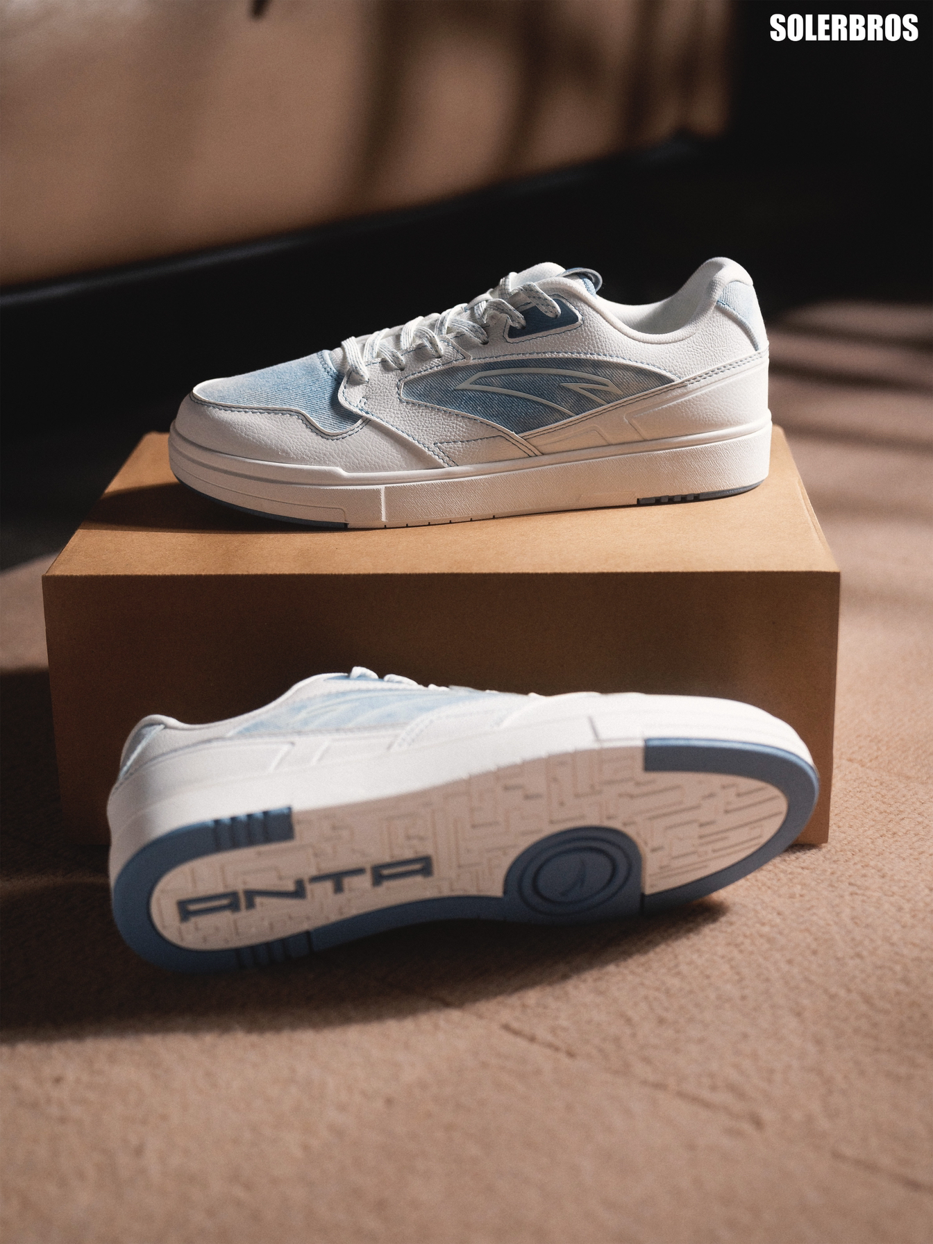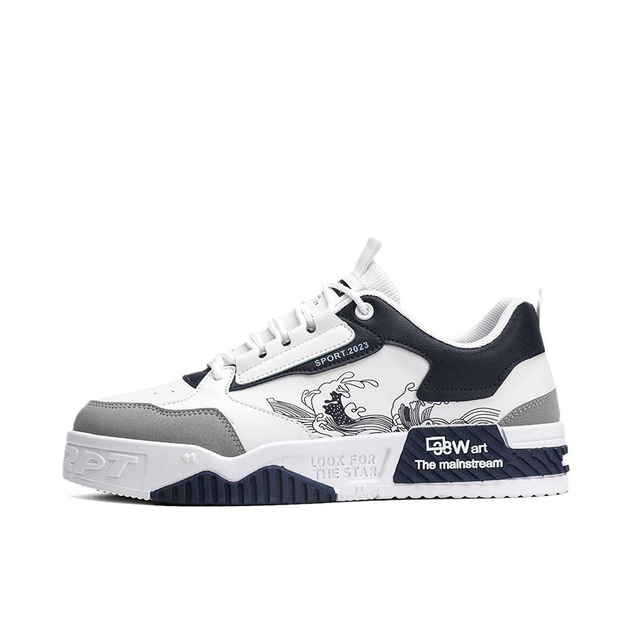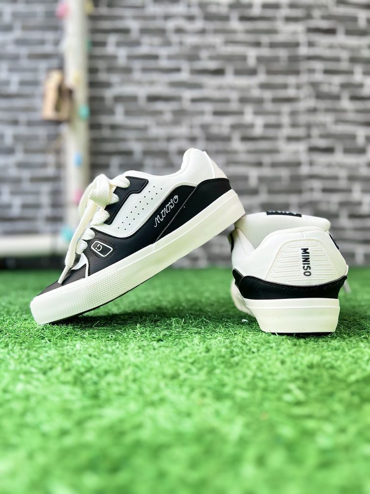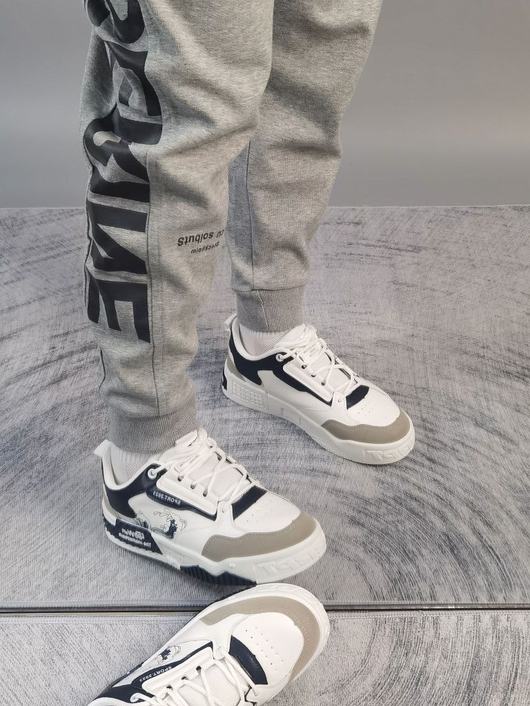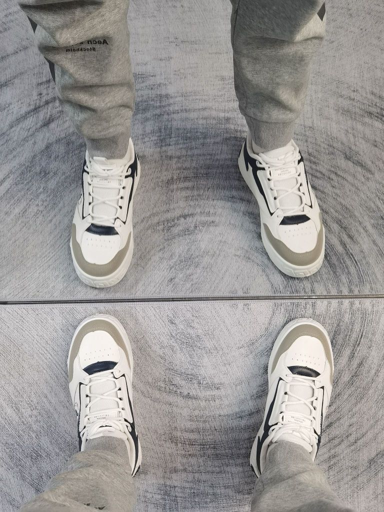 两位数拼接休闲板鞋,学生党无压力 上脚轻质,皮革挺软的 这个配色和校服裤挺搭😂