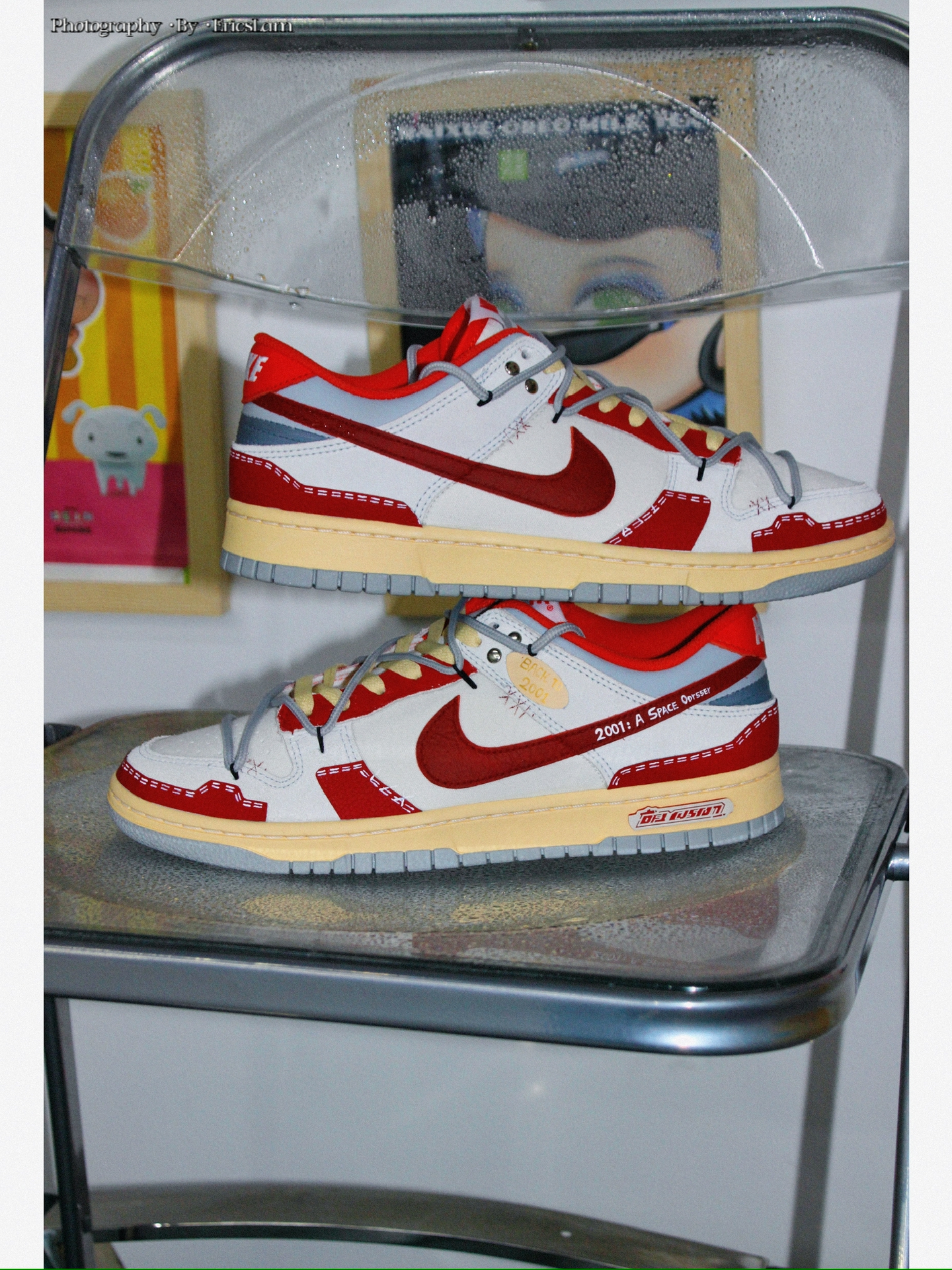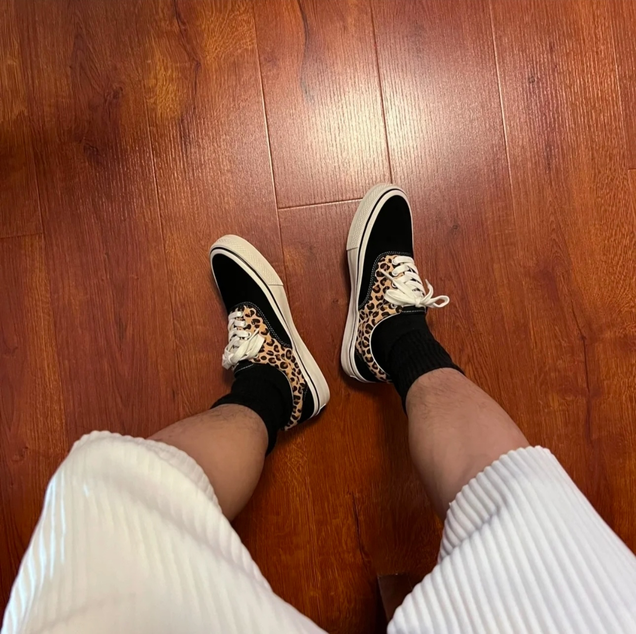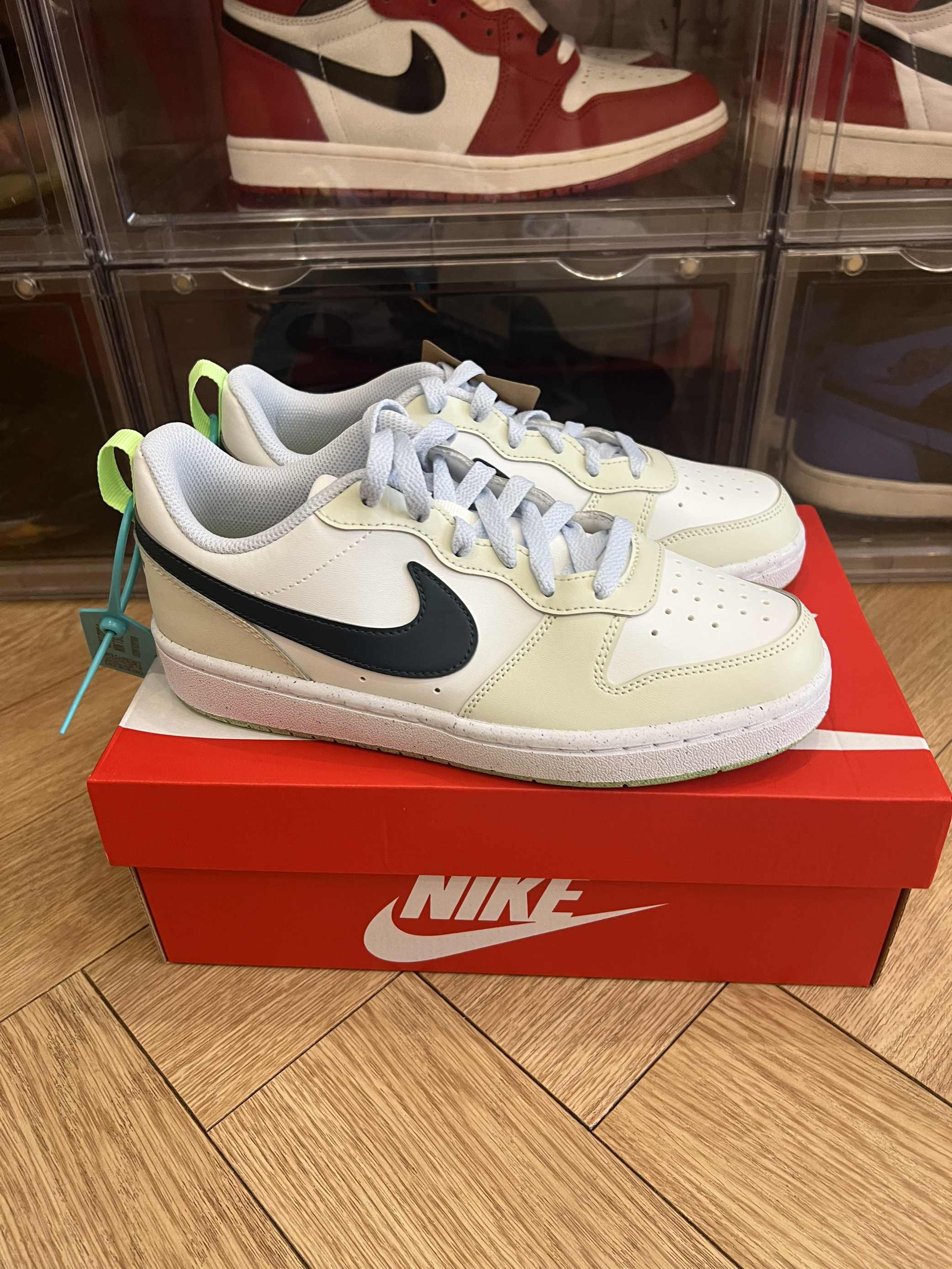 两位数拼接休闲板鞋,学生党无压力 上脚轻质,皮革挺软的 这个配色和校服裤挺搭😂