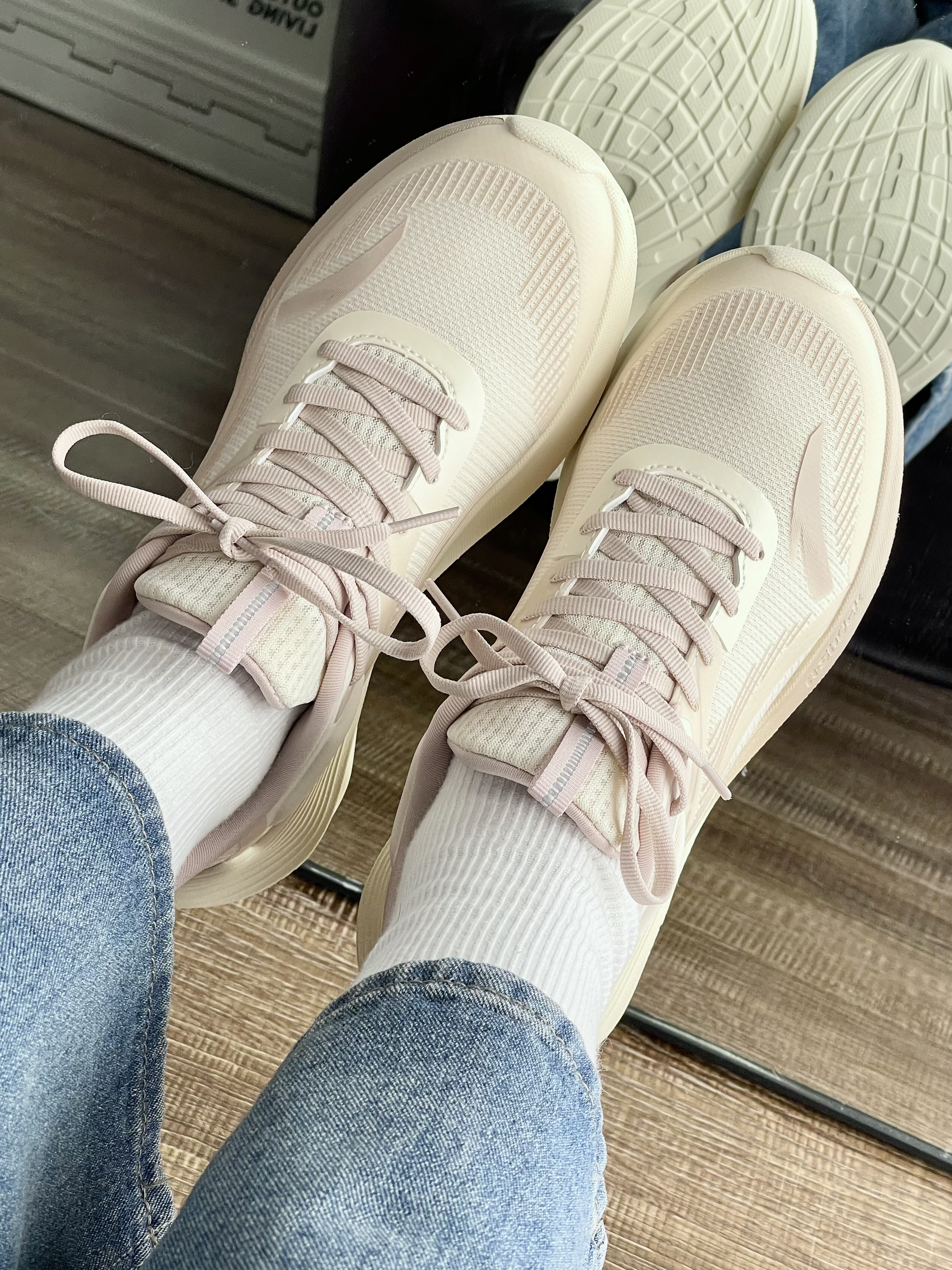 2开的跑鞋买安踏就对了✌🏻️ 奶咖色也比较适合秋冬这个季节 真的很喜欢这双跑鞋的脚感 薄底的又轻又软!透气性也蛮好的 跑起来无负担无压力~ 日常搭配上也不用怎么费心思 怎么搭都不错 码数我个人觉得偏大半码 按照内长买比较准👋🏻