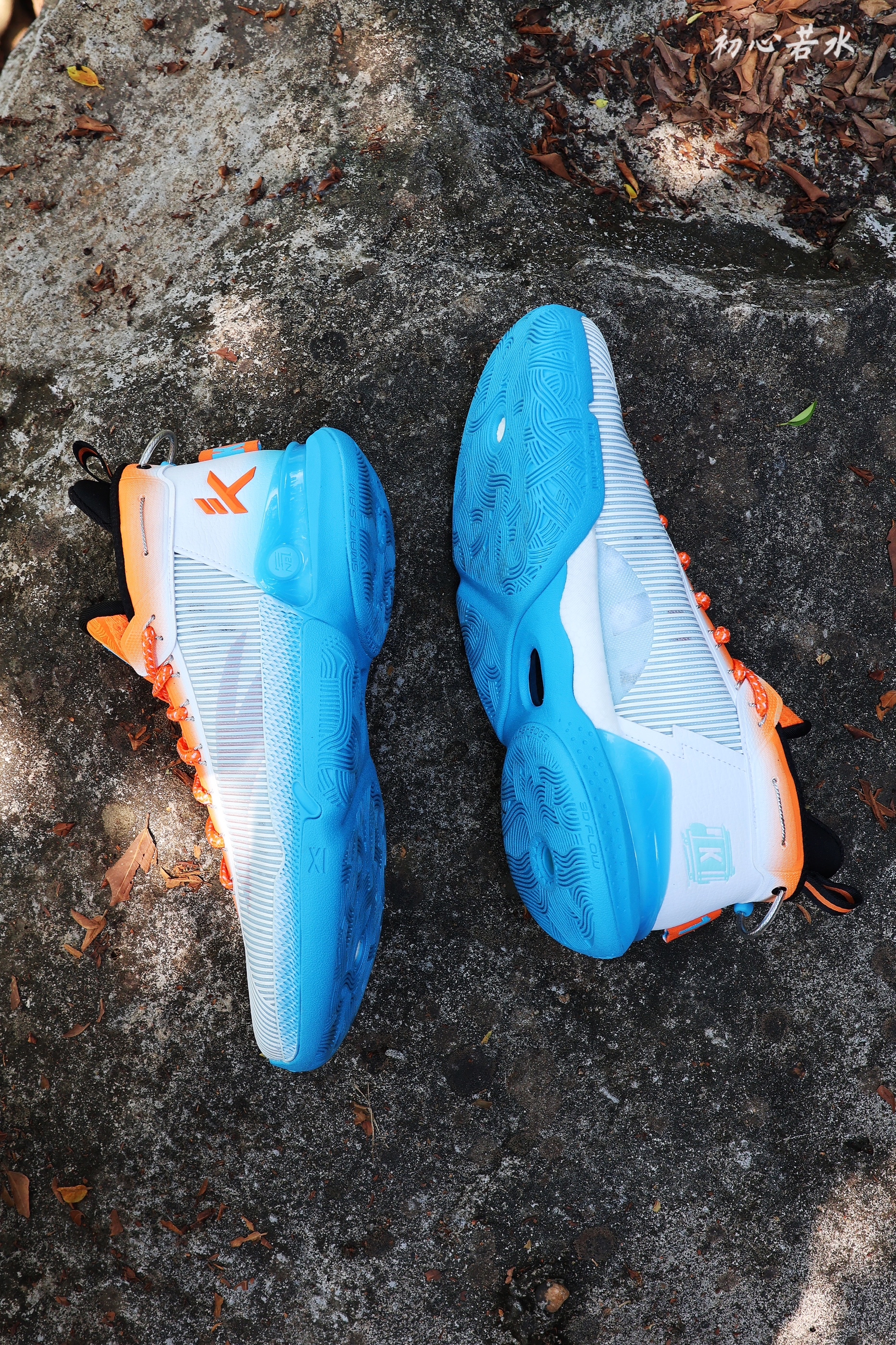 📸KT9湾区迷雾配色 ☁️配色故事:这个配色设计很有亮点啊,白色代表着海面迷雾,橙色则是透过迷雾看到的金门大桥,中底这一块代表蓝色海面,湾区迷雾配色应运而生,鞋面也是借鉴了,桥梁悬索结构设计。 ⚙️买前须知:我按平时的尺码,入手的是42码,鞋子的内长也刚好合适,鞋面虽说是白色的,皮质的鞋面还是很好打理的。