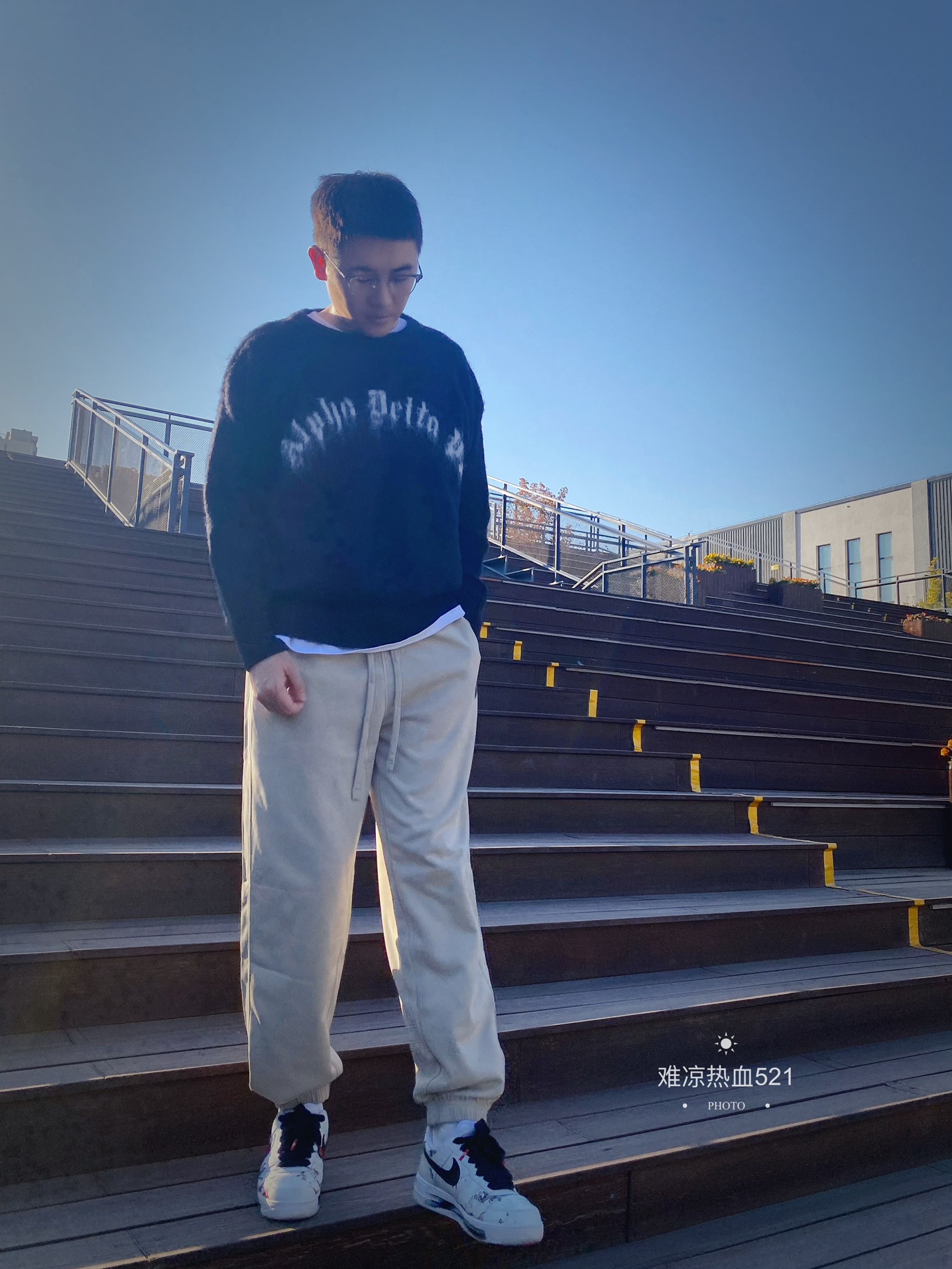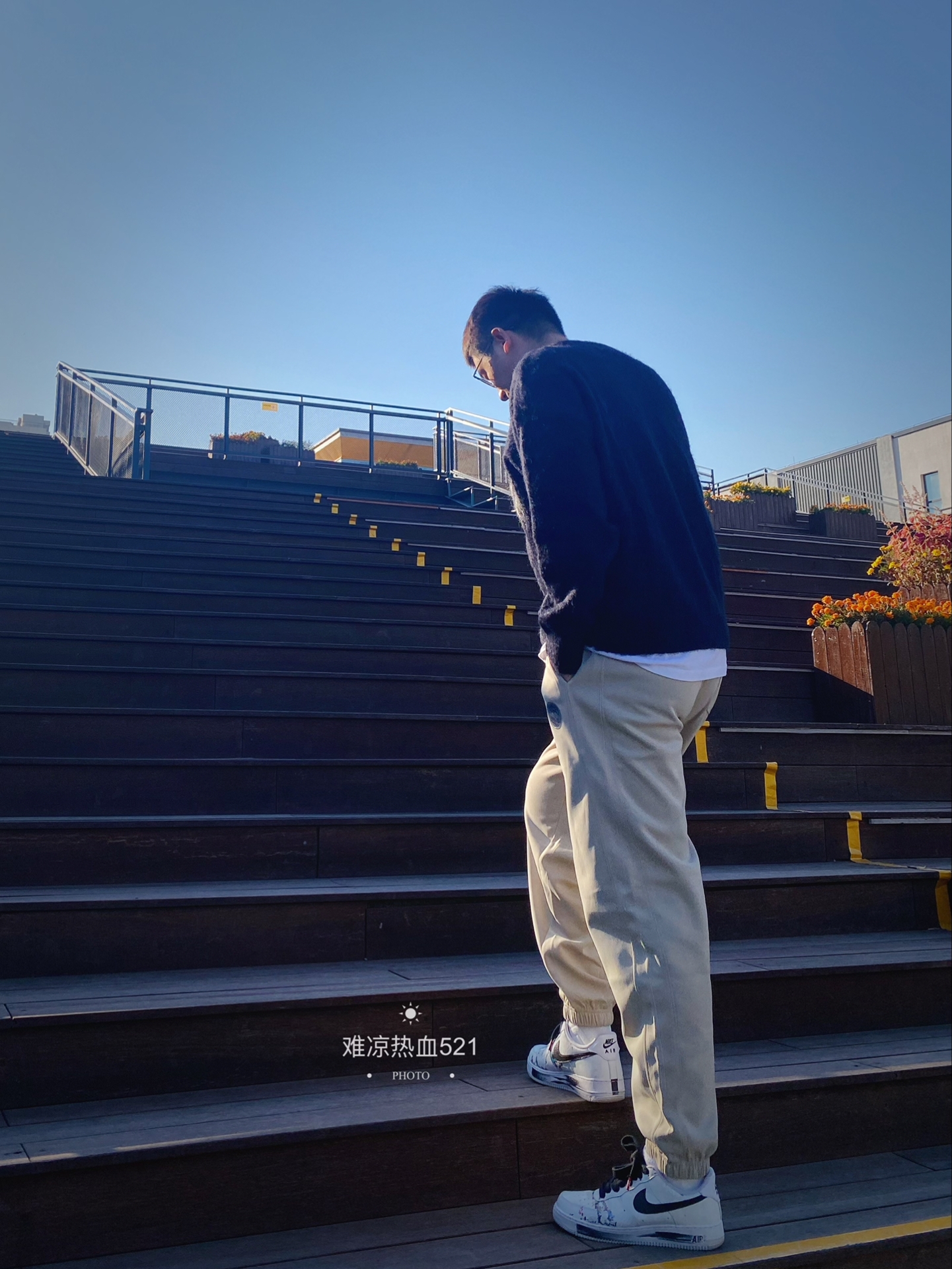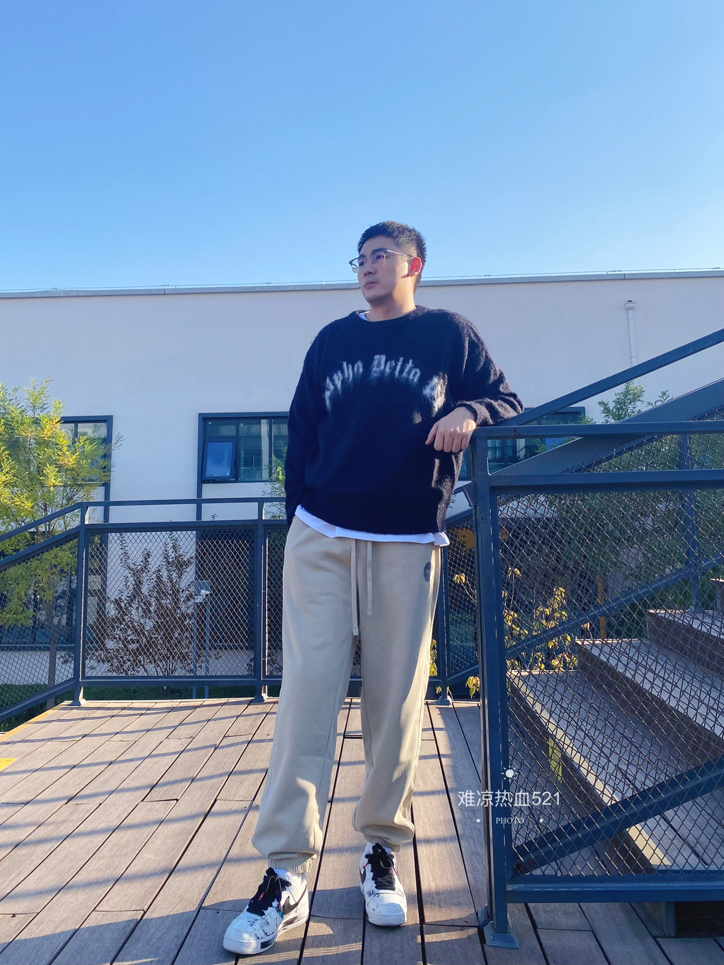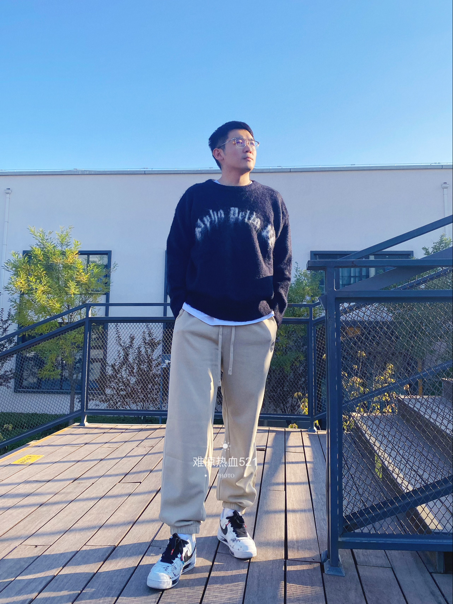 1⃣️裤子:TALKING TOM 垂感束脚裤,3D彩色小logo非常有特色,辨识度很高。裤子的版型非常不错,有加绒款和非加绒款,完美适合现在这个季节,而且也是非常好搭配。 2⃣️毛衣:BABUGGE 字母提花宽松圆领毛衣,高街的风格,胸前的字母高级感十足,黑色完美搭配任何色系,厚度刚刚好,完全可以直接外穿,潮流感觉拉满。 3⃣️球鞋:权志龙Air Force 1 2.0,这双鞋放到现在依然很能打...