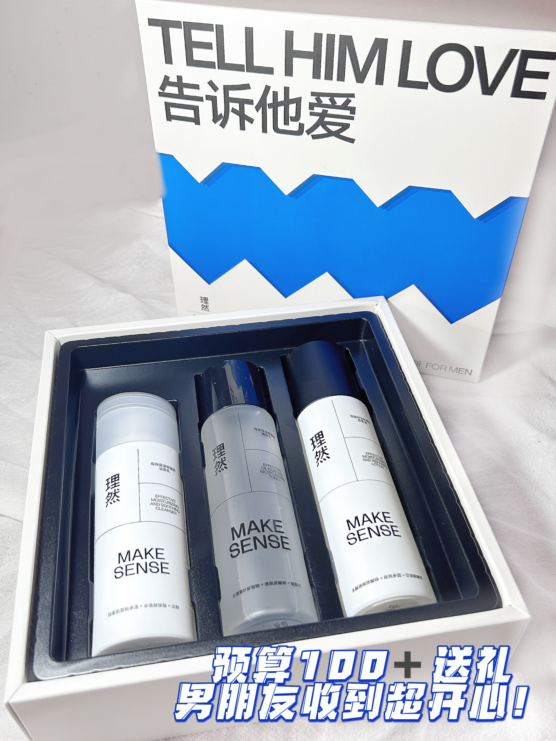 简约的包装简单大气,也很有质感🥰水乳洗面奶一套都有。水乳都是很轻薄的质地,控油能力很不戳,皮肤清清爽爽的。洗面奶的泡泡也很绵密,清洁力度也很不错!油皮的男朋友直接爱上🥳 不管是表白还是送礼都很合适的一套哇🥳