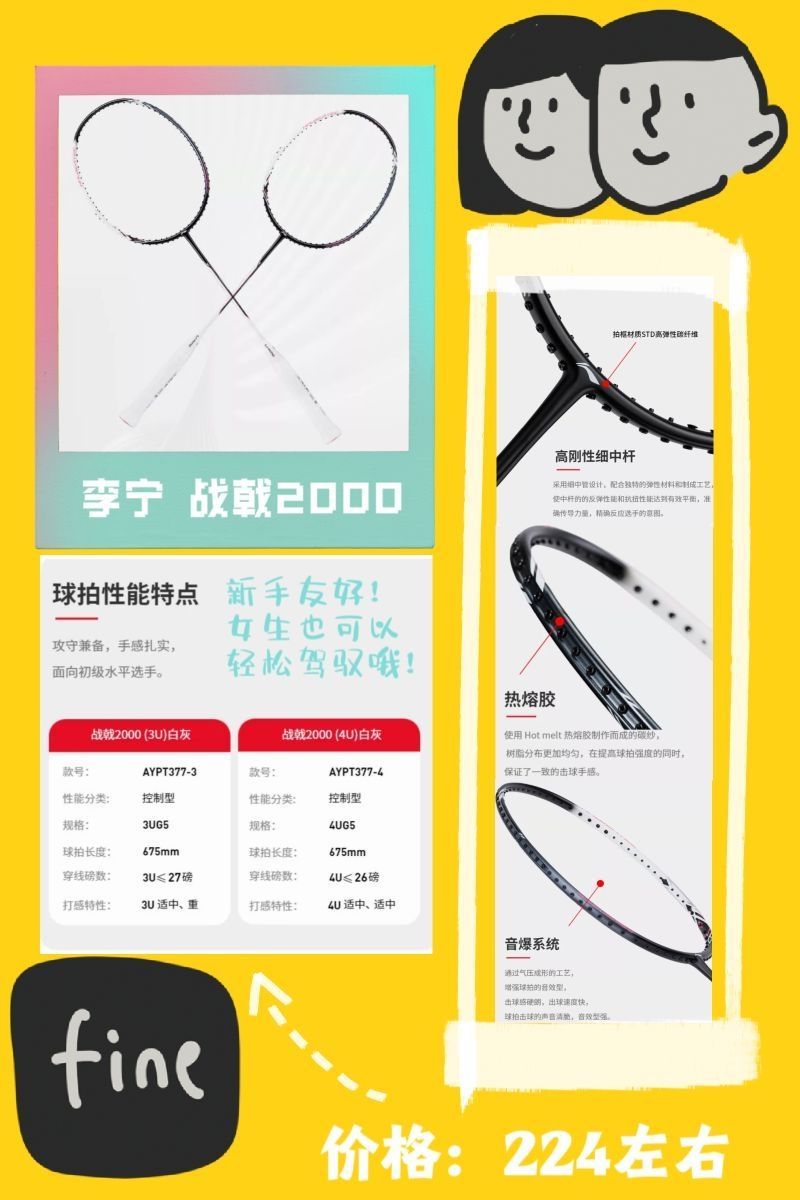 本篇笔记关联了Li Ning/李宁 战戟系列 战戟2000 防守兼备 高弹性 全碳素 入门级 控制型 新手专用 羽毛球拍 白灰、YONEX/尤尼克斯 锐速系列 NR7000i 铝碳一体 碳纤维 高弹性 防守兼备 增加挥速 控球型 速度型 入门级 耐打耐用 易上手 中杆 全碳素 羽毛球拍 白粉、VICTOR/威克多 突击系列 TK-6 进攻型 攻守兼备 速度型 进阶级 入门级 碳素纤维 均衡 杆硬 拍头重 羽毛球拍 灰绿等商品,为用户提供真实的使用体验和购买参考。