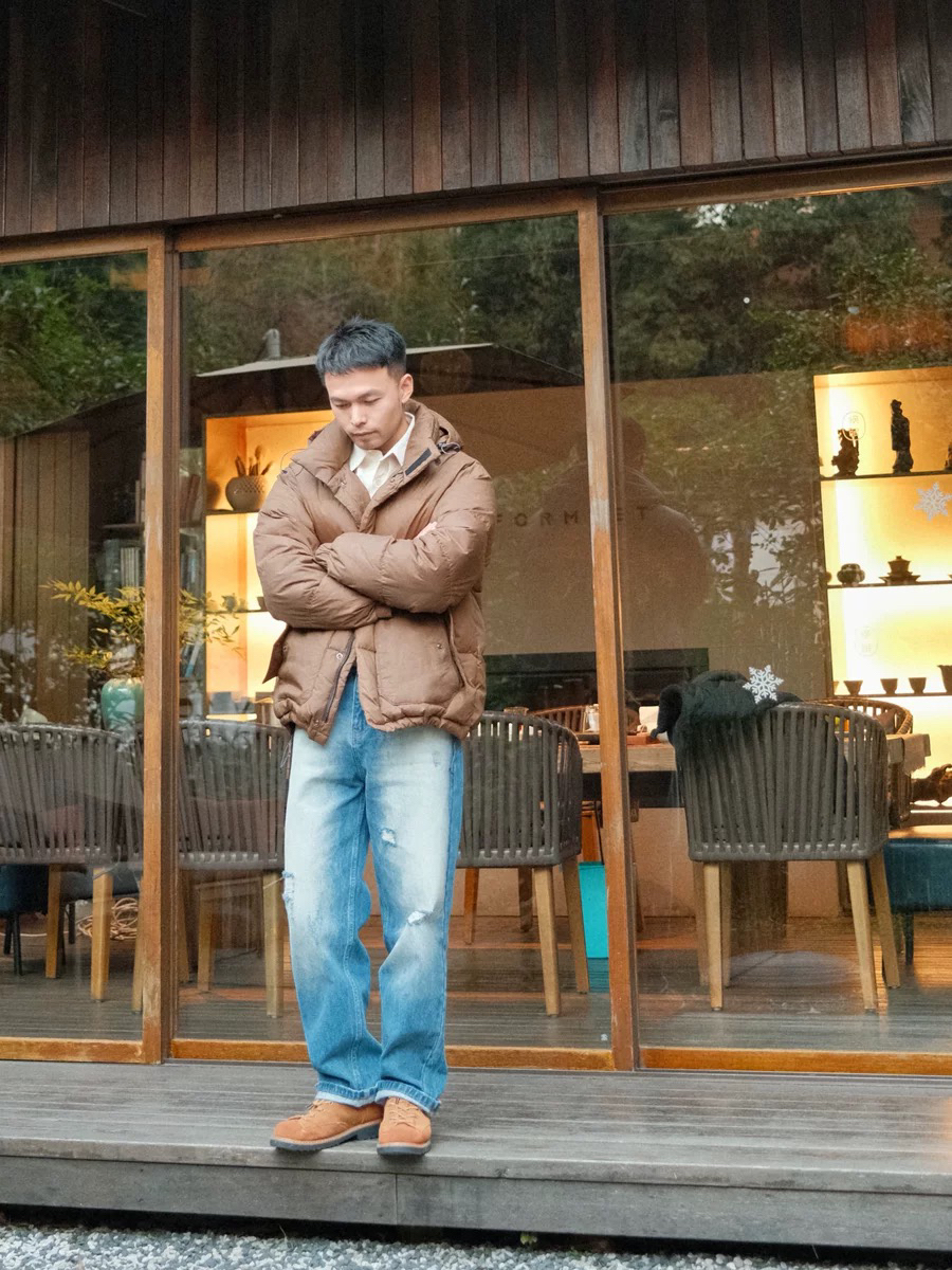 ❄️冷空气进一步来袭 怕冷星人涵哥👾已经穿上羽绒服啦 作为一个艰苦的早八人 羽绒服也可以凹造型噢✨ 米灰色卫衣打底 上身一件波司登羽绒服 连帽设计,防风还很保暖🔥 下身搭配一条浅米灰色机能裤和面包鞋 💯简单干净的配色,低调也不失风度