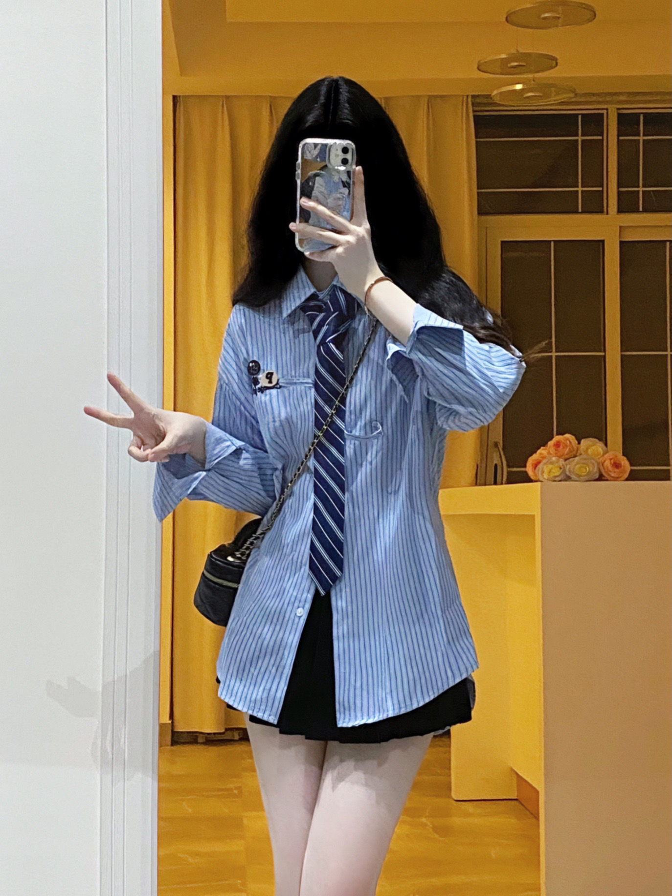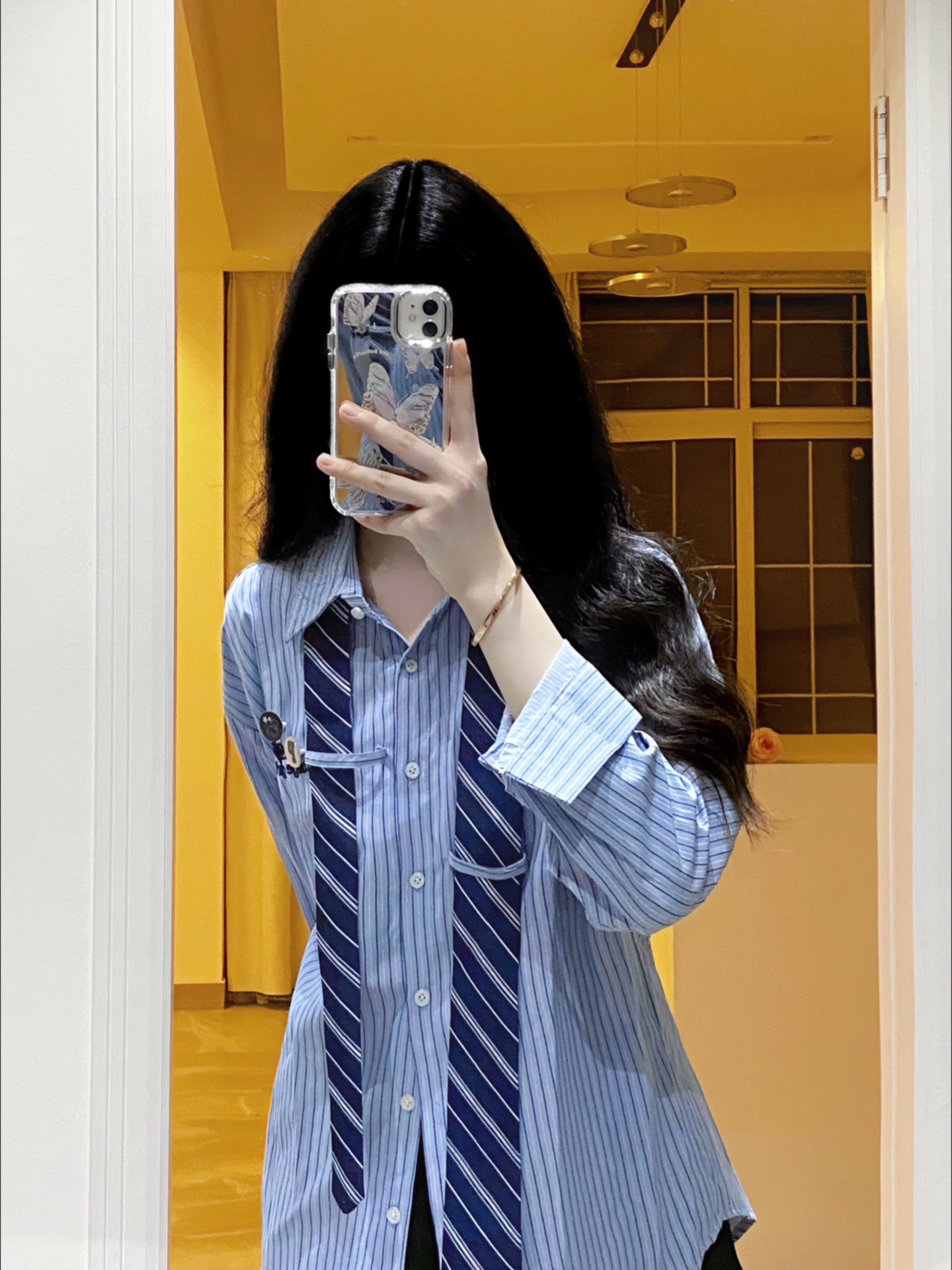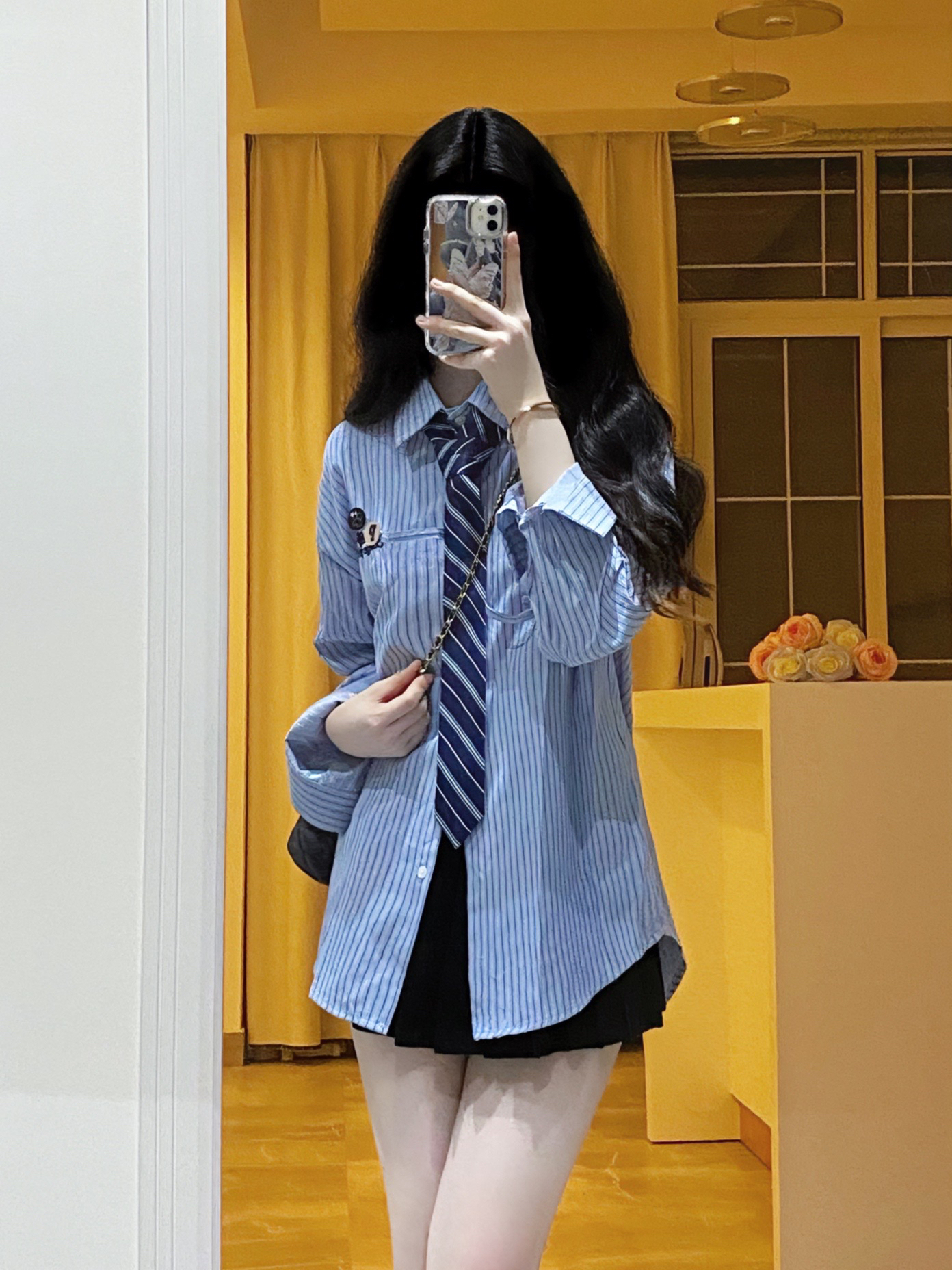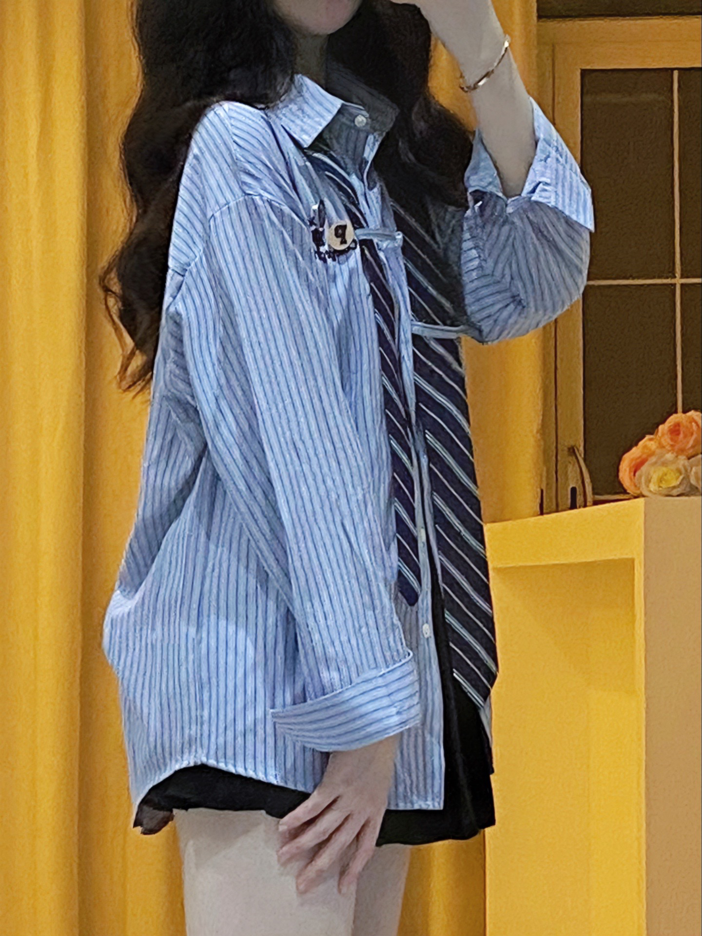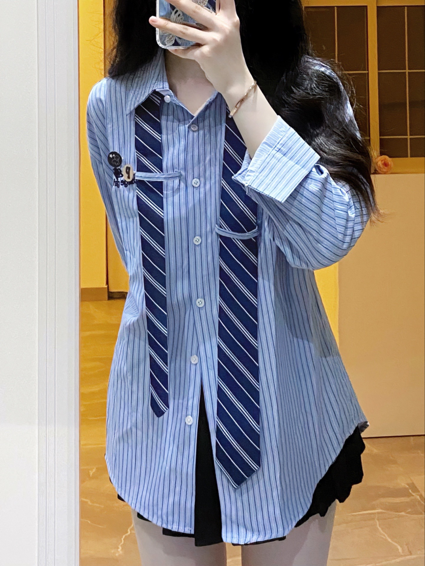 男友风衬衫|||周末出去玩这样穿🫧 浅蓝色条纹衬衫搭配深蓝色领带,自带清新感好喜欢~ 斜挎一个链条⛓️mini包包,经典菱格纹就很百搭!! 露出的手腕有点空荡ya,所以搭配了DW家的玫瑰金手镯✨这款戴上就很显手细,日常穿搭或叠戴都好好看啊~ 这样一身甜酷穿搭就完成啦💕 #初秋衬衫穿搭 #菱格链条包 #高级感宝藏手镯 #情侣送礼,主打浪漫