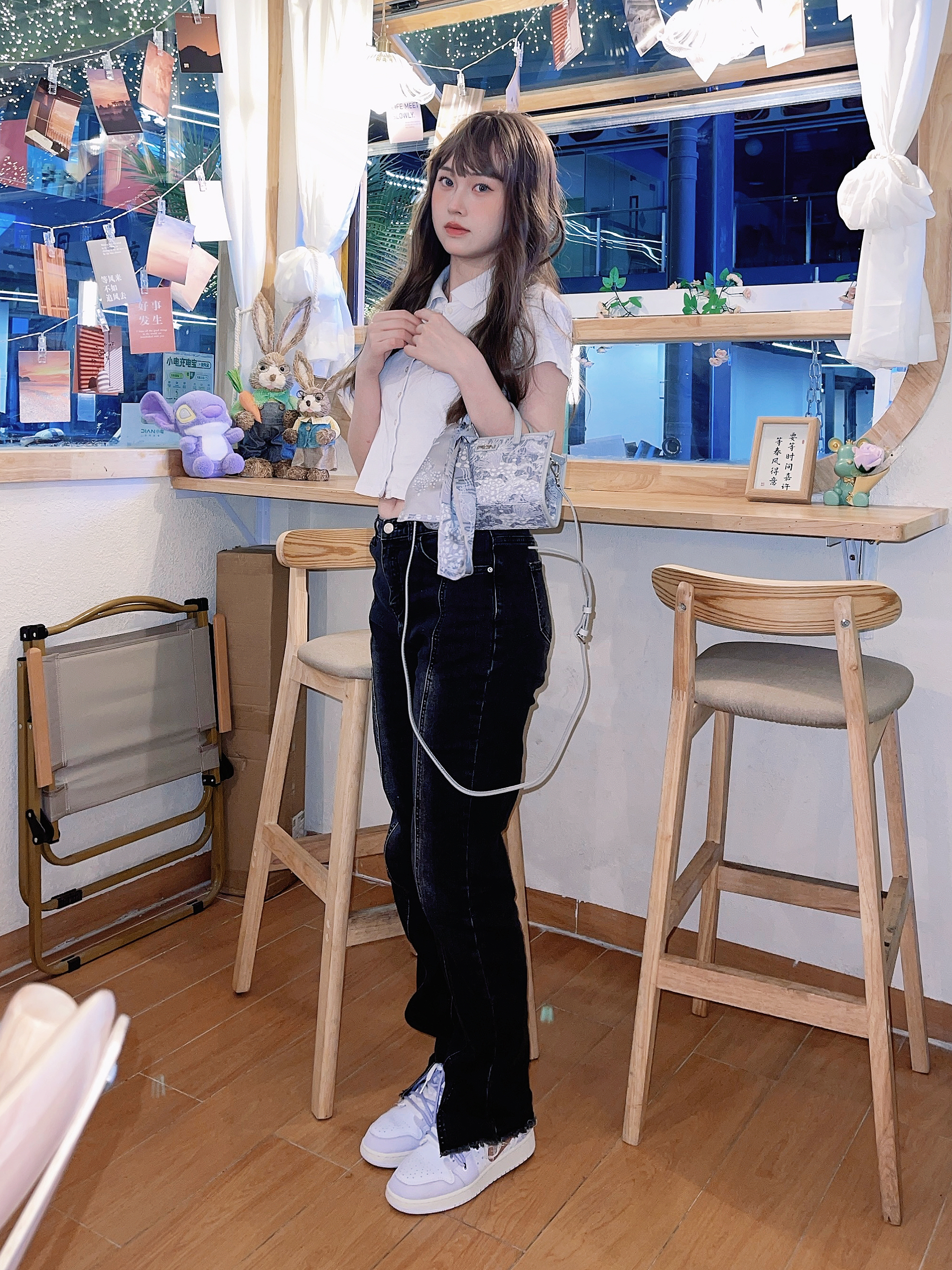 希望生活没烦恼!打扮得美美的也能让自己有个好心情🩷 今天是永远不出错黑白穿搭!🐾 搭配了超美的公主包,整体好精美! 还带了条丝带,看起来更有气质了❕ 日常出门斜挎或者手提都没问题,主打怎么好看怎么来。 日常也搭配了定制球鞋,浅紫配色很适合约会穿!☁️ 双十一也值得入手呢!喜欢的可以考虑。🌷