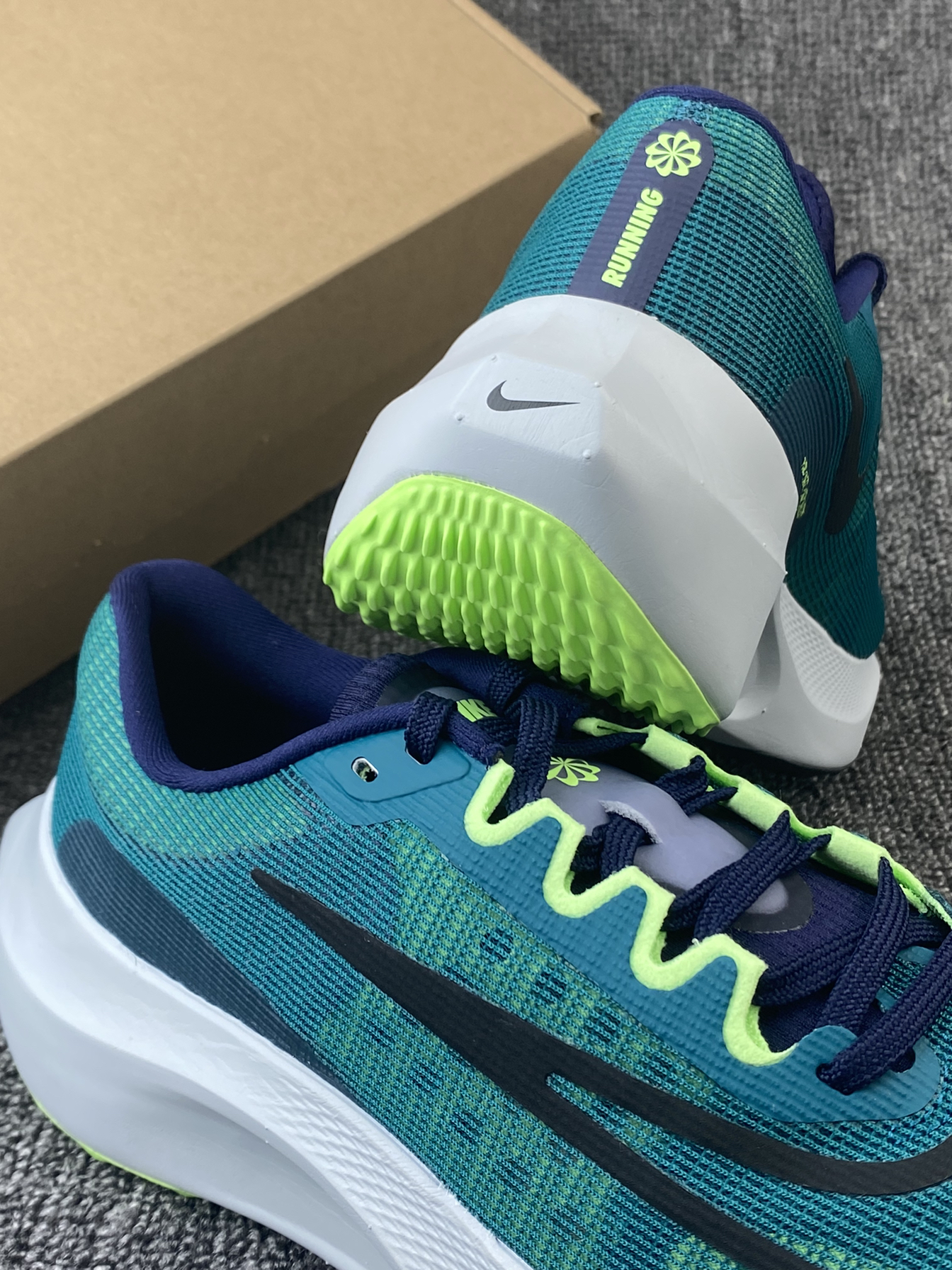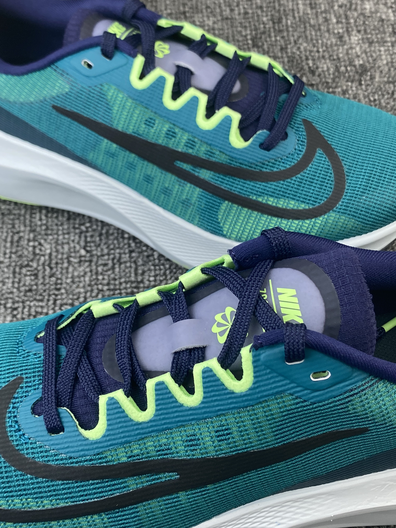 👟Nike Fly 5 跑鞋 ✨Fly 5近期出的配色真的很绝!整体的色调都很好看。这次的新配色很特别,整体以绿色为主,个人感觉更像是青色,荧光绿点缀,很亮眼但又低调沉稳的配色。 🌸鞋面采用的网眼材质,透气性是不错的。Fly 5的脚感一直是不错的,中底是zoomx泡棉材质➕轻量级SRO2泡棉载体,内置的碳板让鞋子更有支撑感。大底耐磨程度也是没问题的,荧光绿搭配也很鲜艳。 🌟尺码方面按平常穿的...