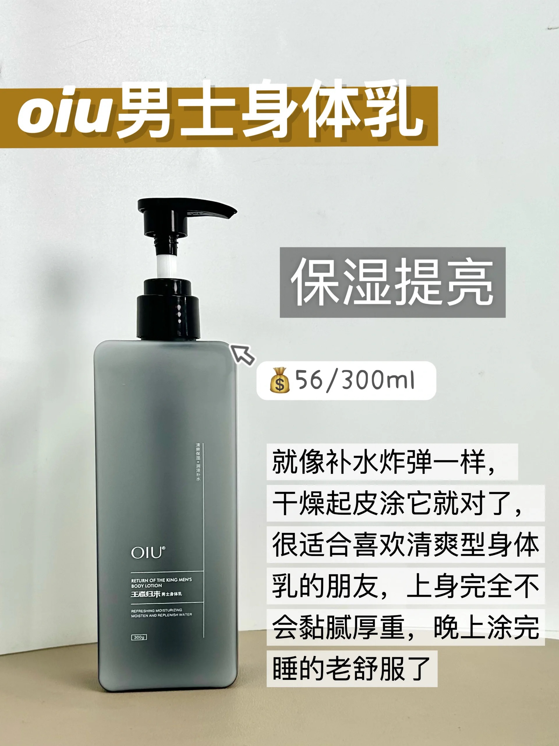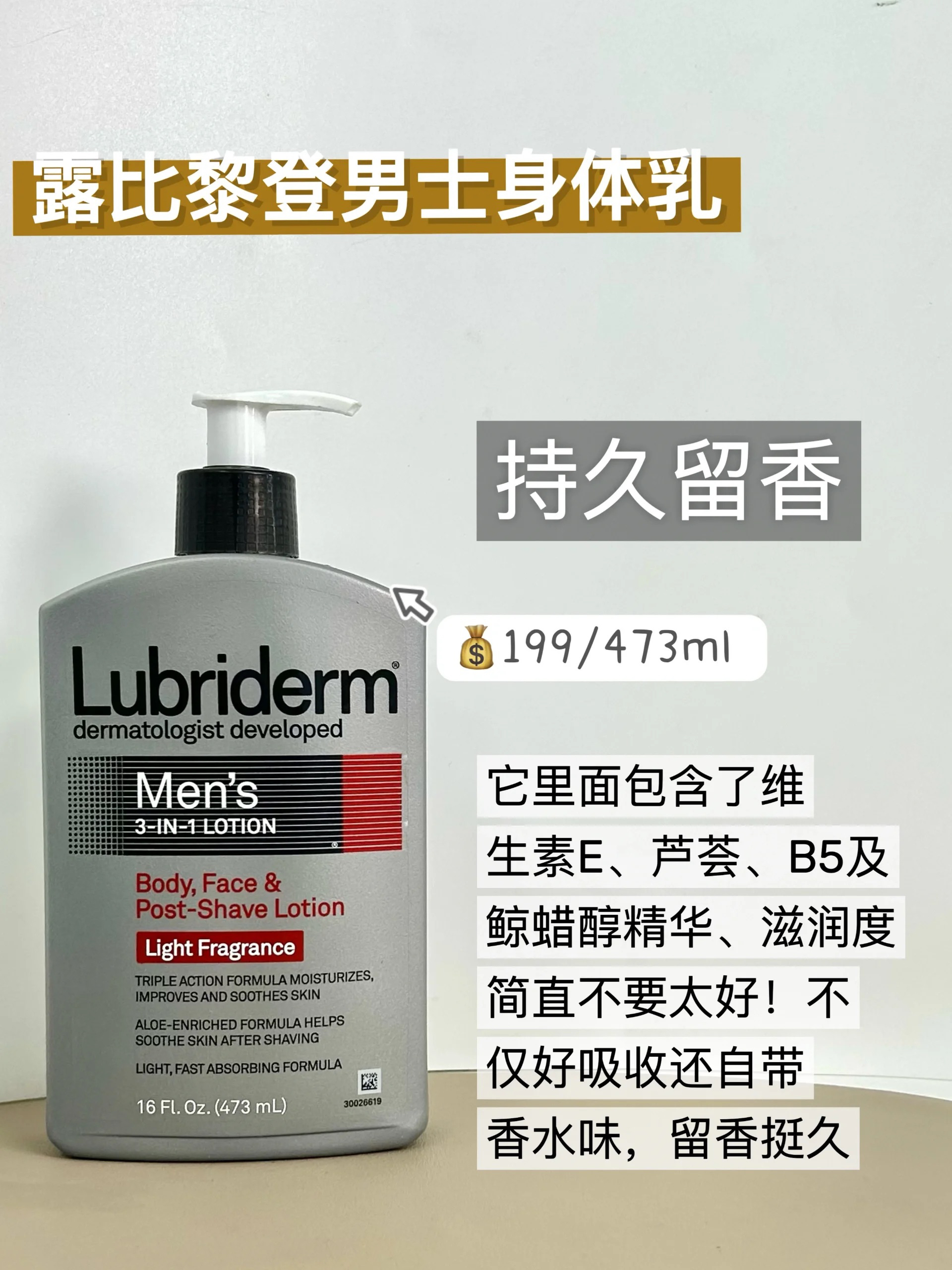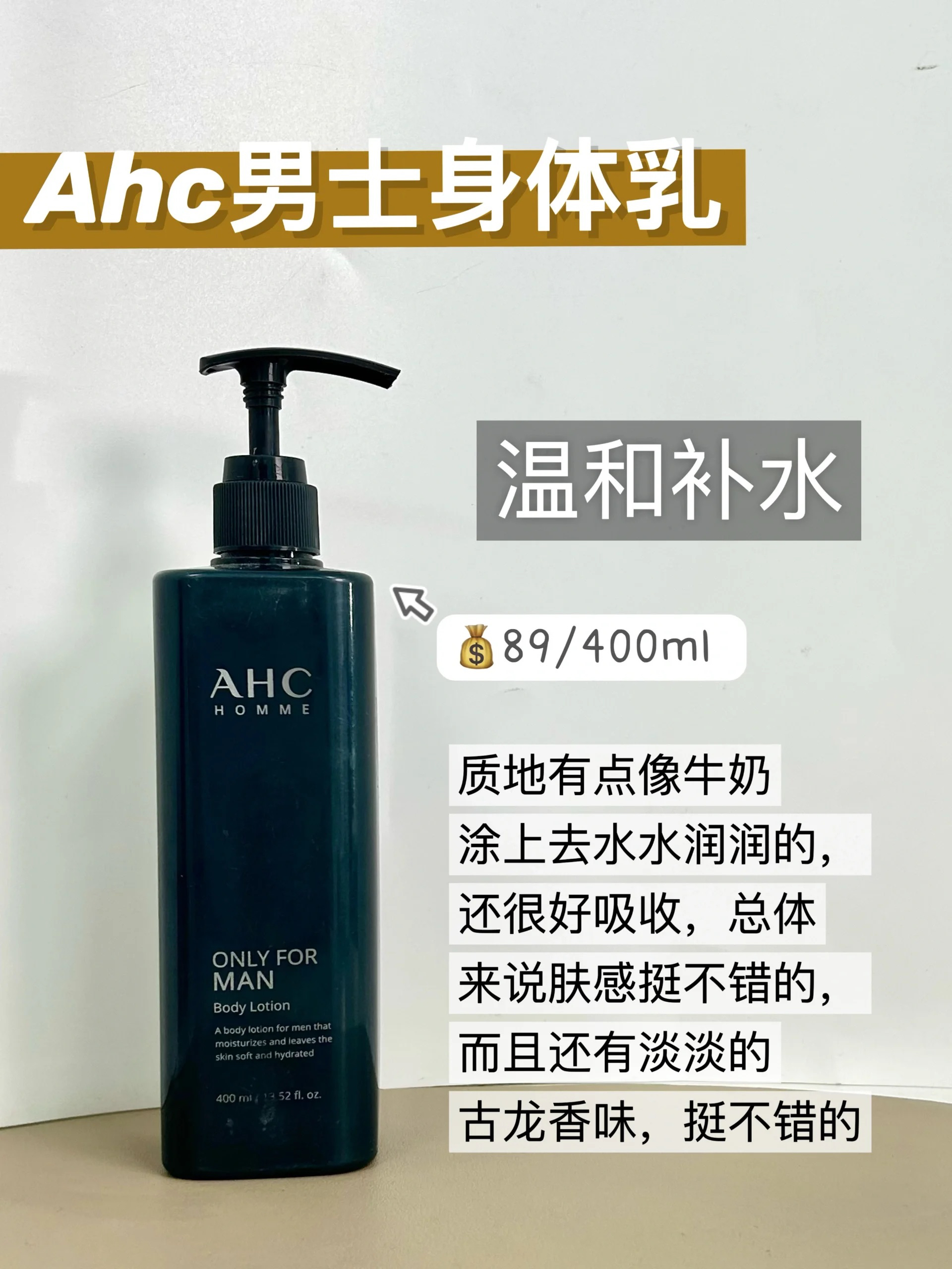 本篇笔记关联了【男士专用】AHC 男士水润身体乳 400ml、【男士专用】lubriderm 露比黎登强生男士三合一清爽身体乳 473ml 无香型、OIU 王者归来 清爽补水男士身体乳 持久留香 滋润修复等商品,为用户提供真实的使用体验和购买参考。