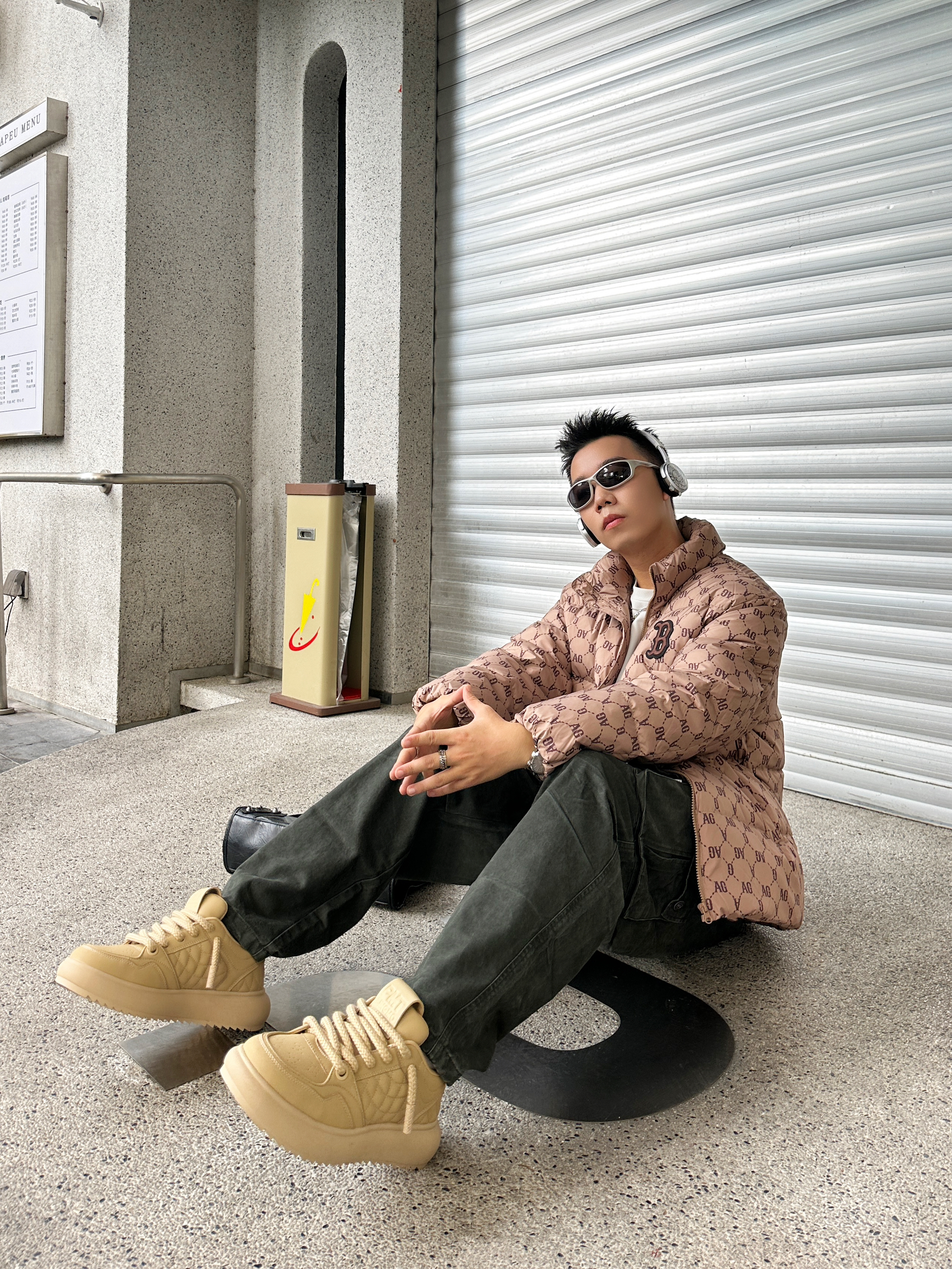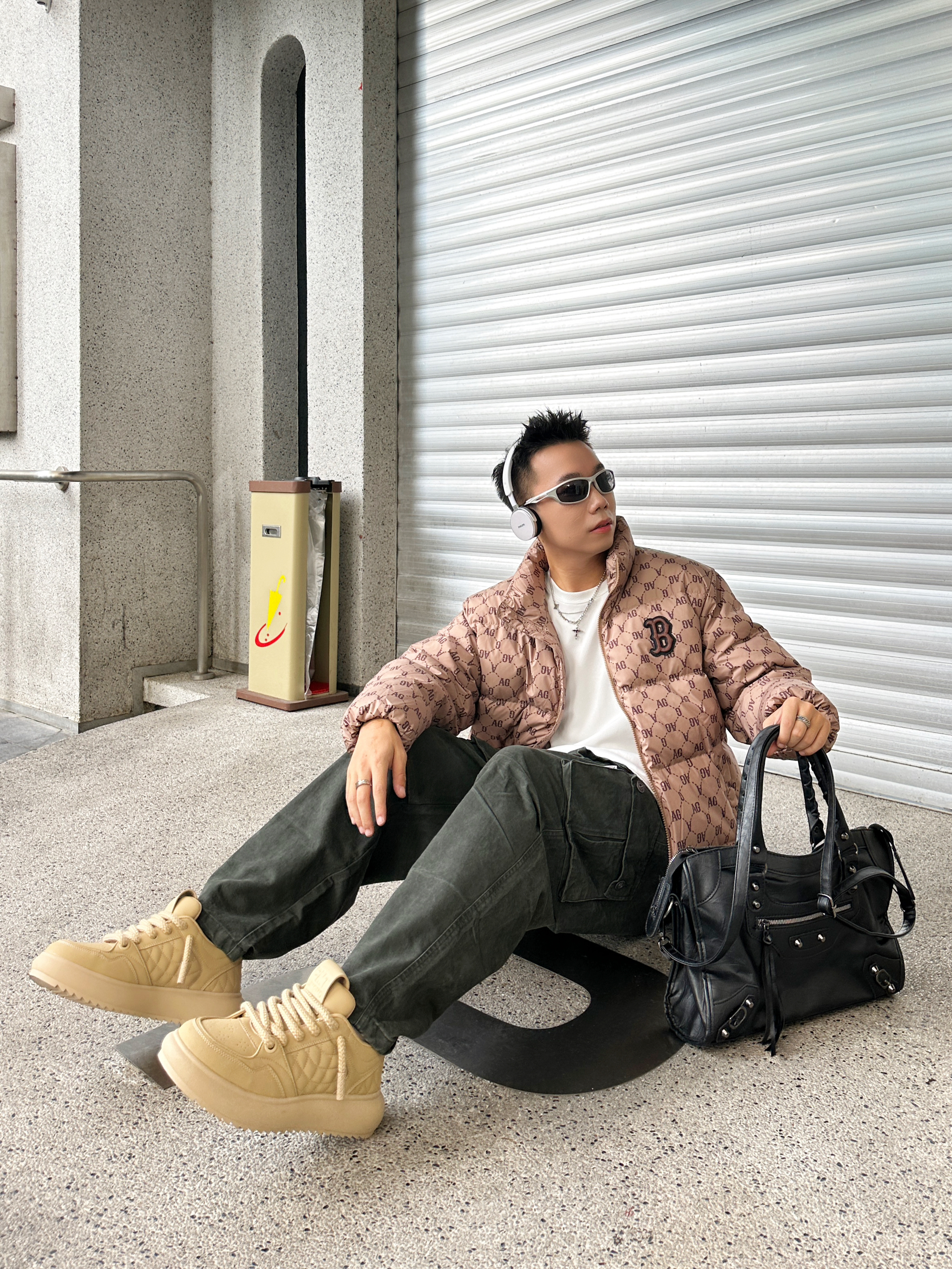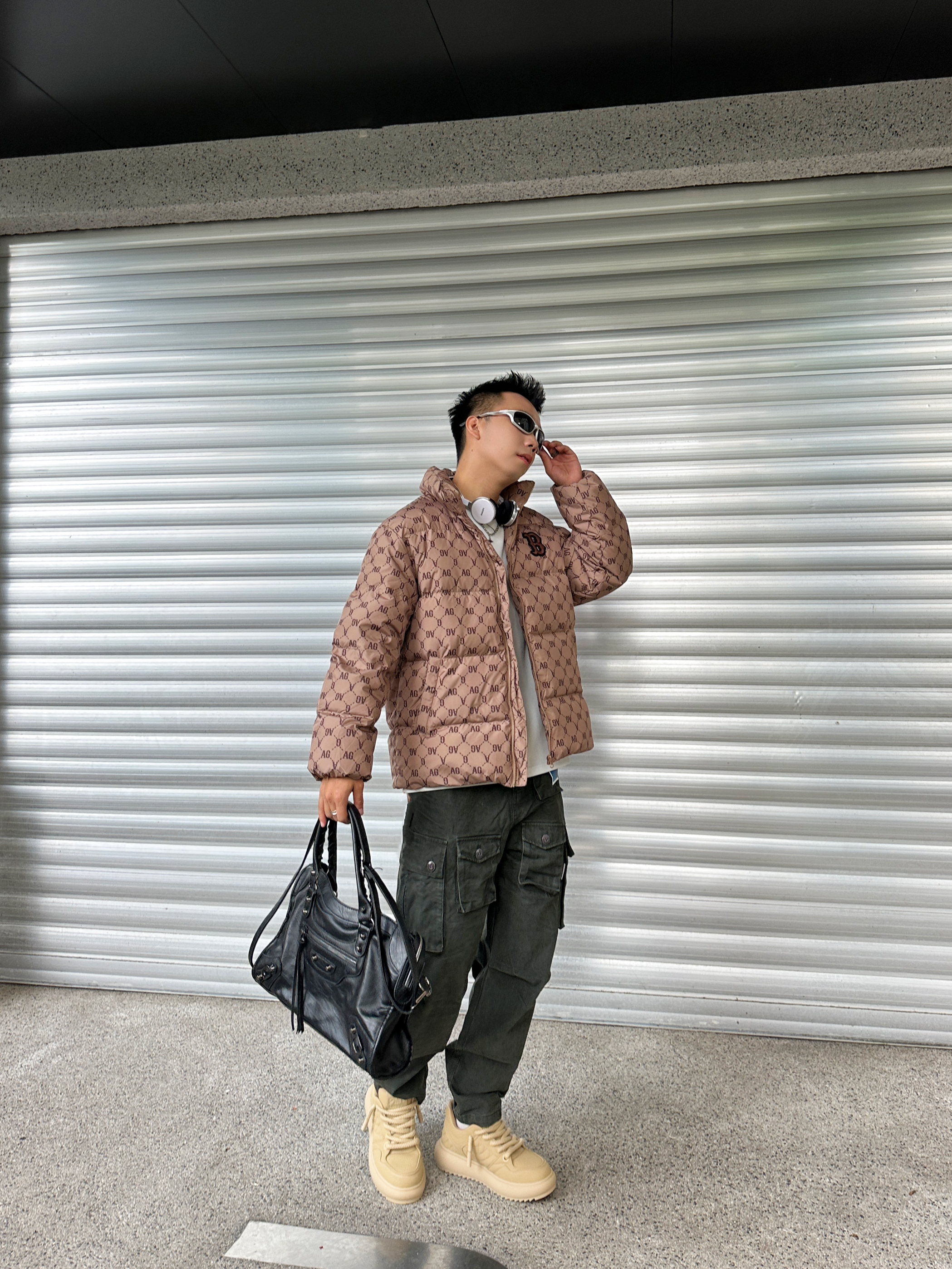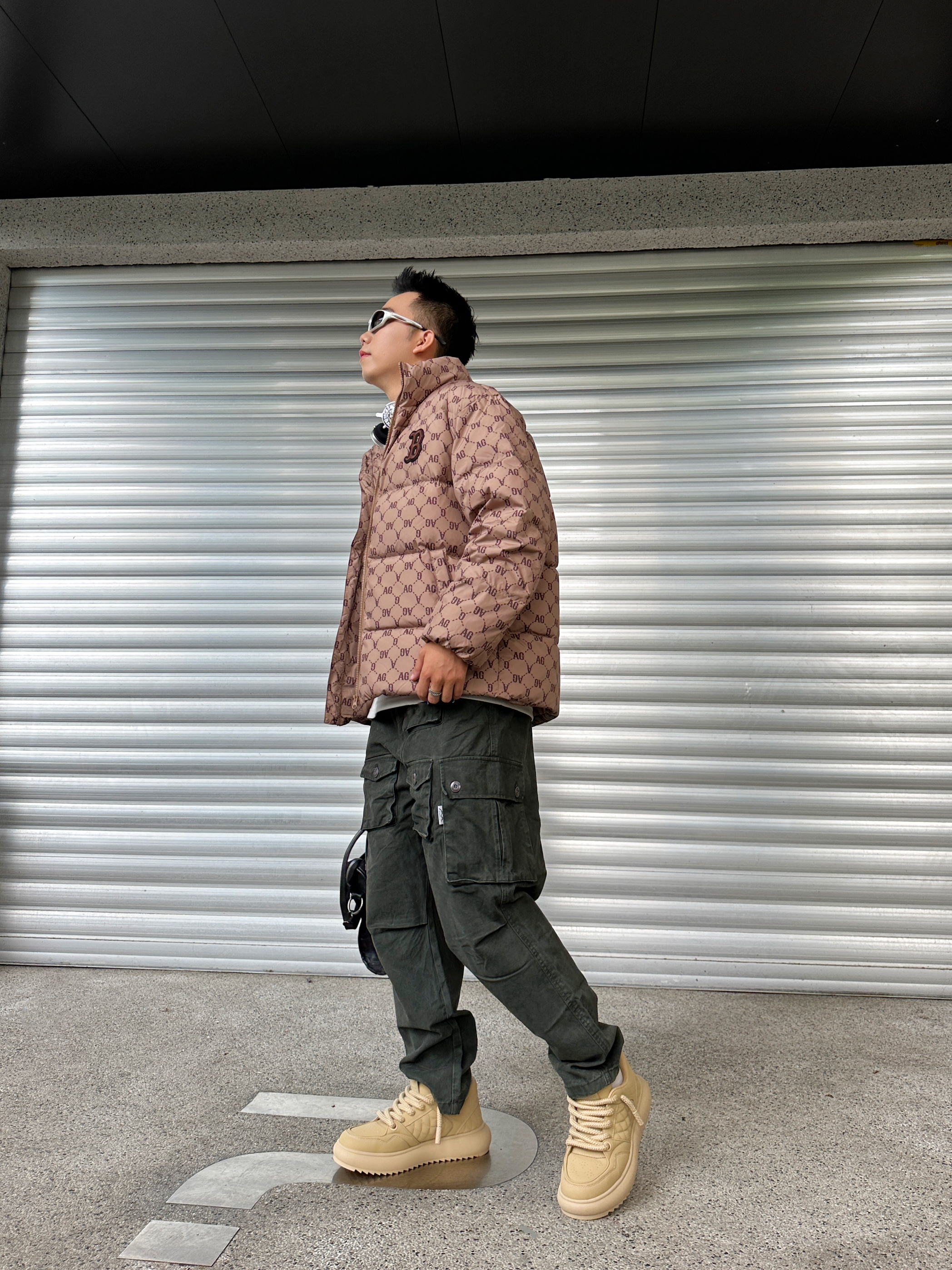 - 今天一觉醒来,降温了❄️ 那么冬装也是时候安排上了~ 我看上这件太平鸟卡其色羽绒服! 满印图案的设计,这不妥妥高级感👍 版型也是没得说,上身效果宽松显瘦~ - 搭配一条绿色工装口袋长裤👖 出门再穿上这双杏色潮流休闲板鞋 不得不说,这样搭配还蛮帅气的嘞✌️