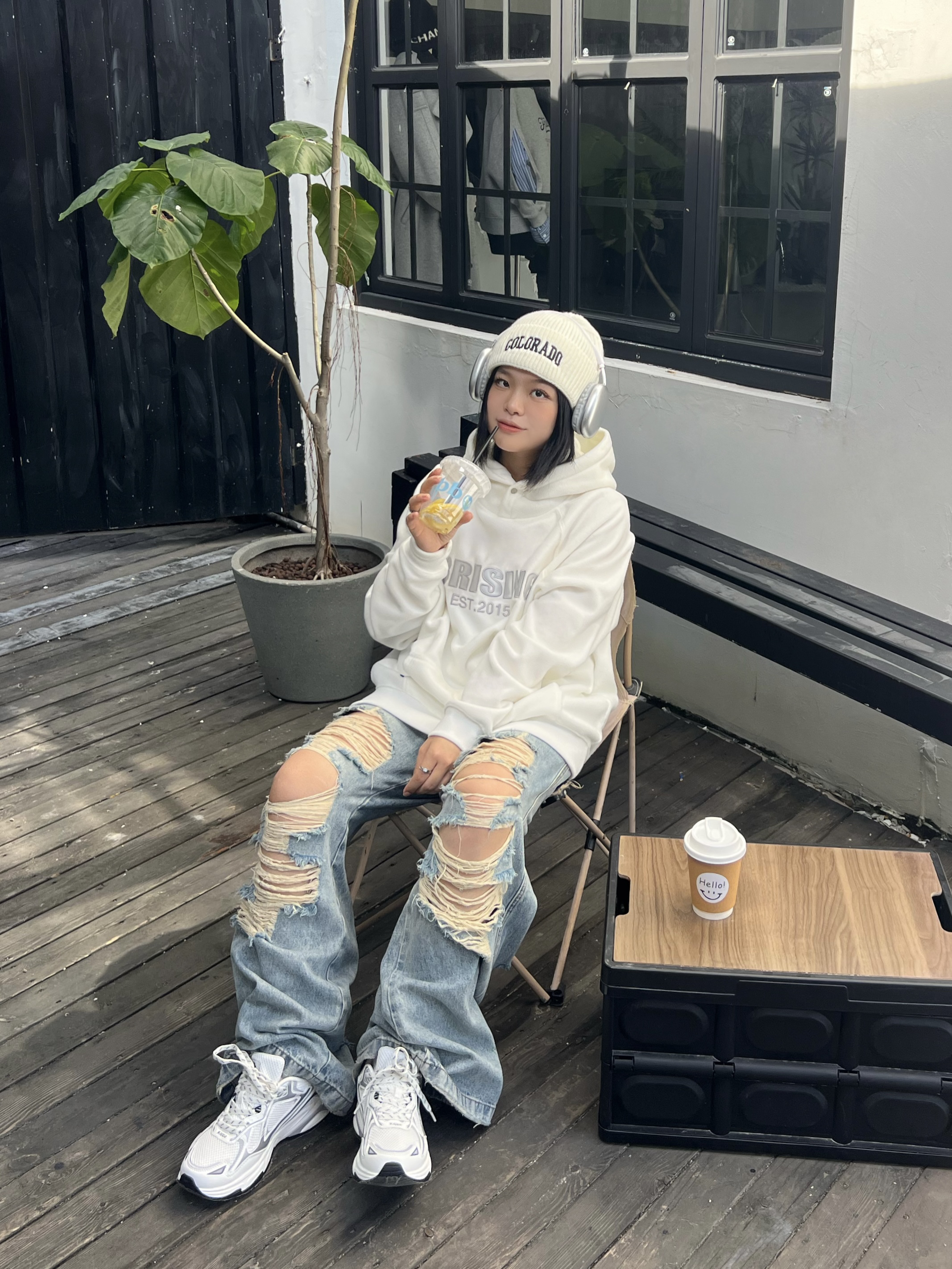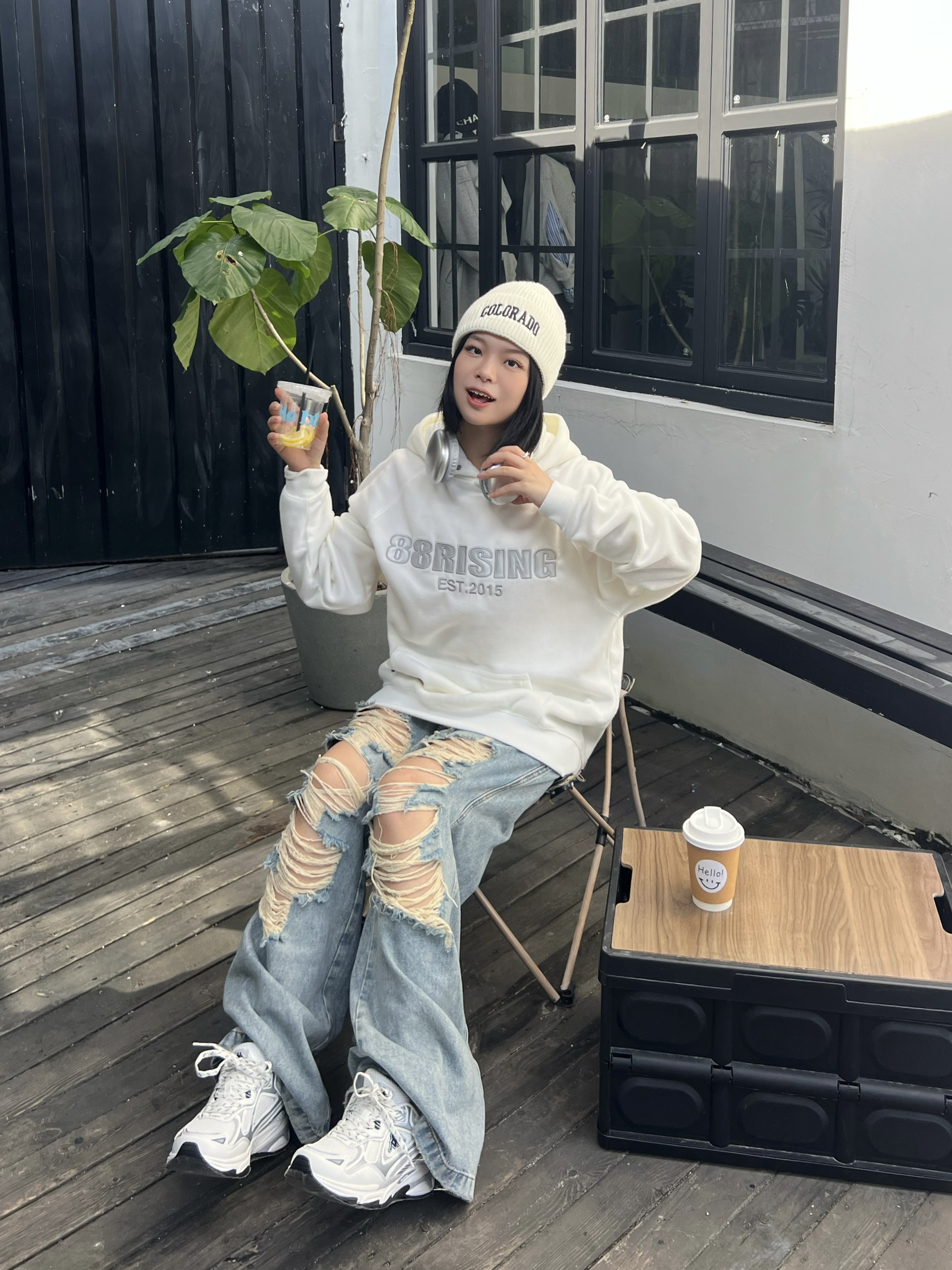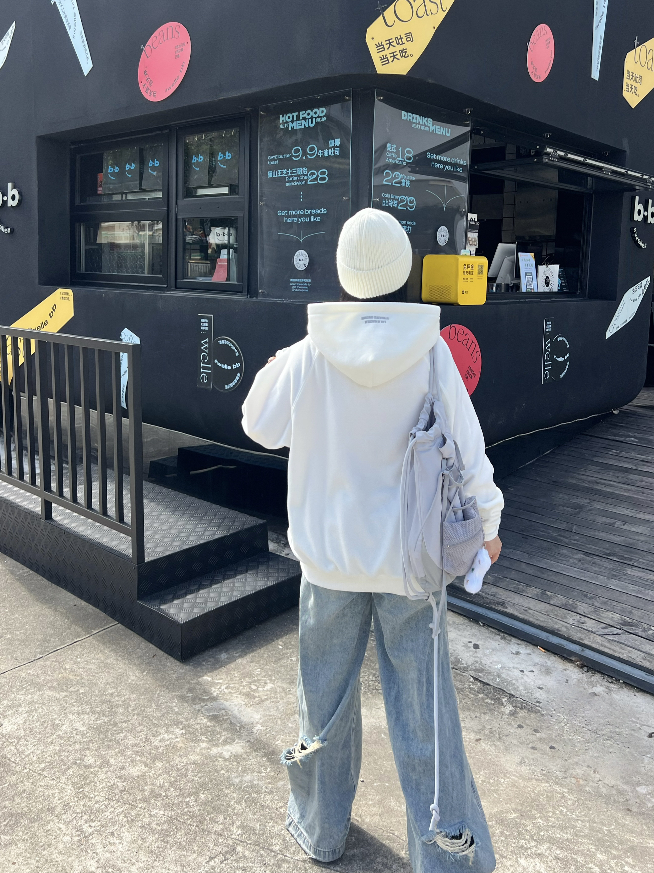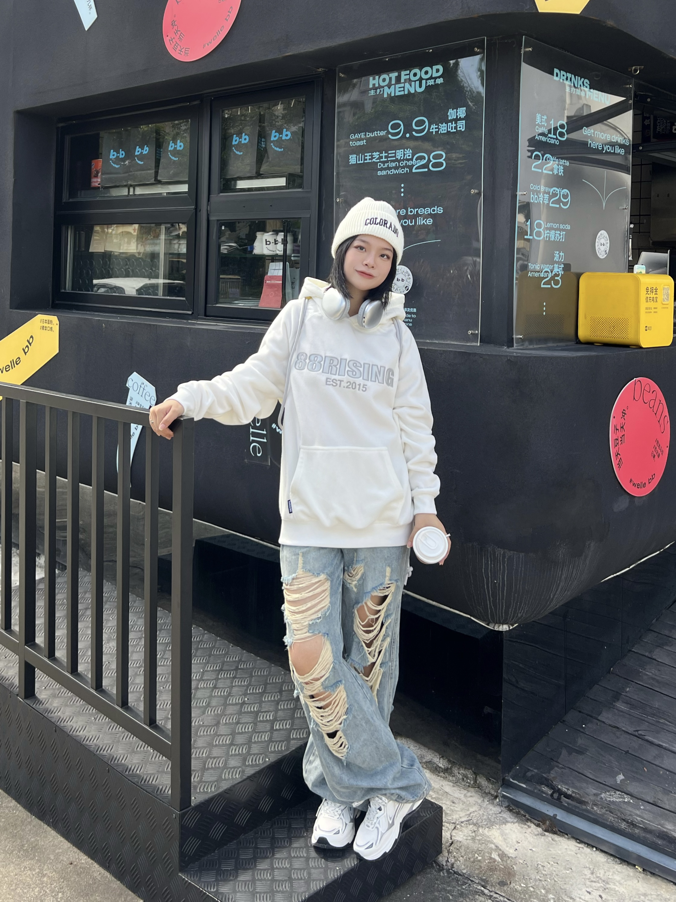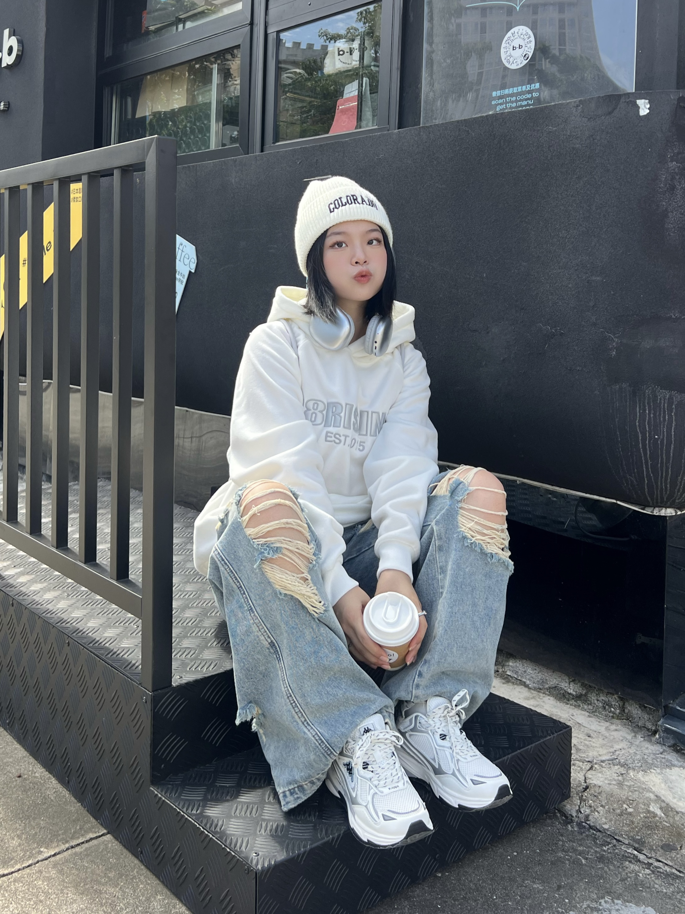 不知不觉穿卫衣的季节到了呢😌 白色卫衣奶呼呼哒😁 慵懒随性的卫衣就很舒服✌️ 搭配破洞牛仔裤街头感拉满了😆 鞋子就选一双白灰色的老爹鞋🤩 潮流感十足🥳 出门直接炸街👀