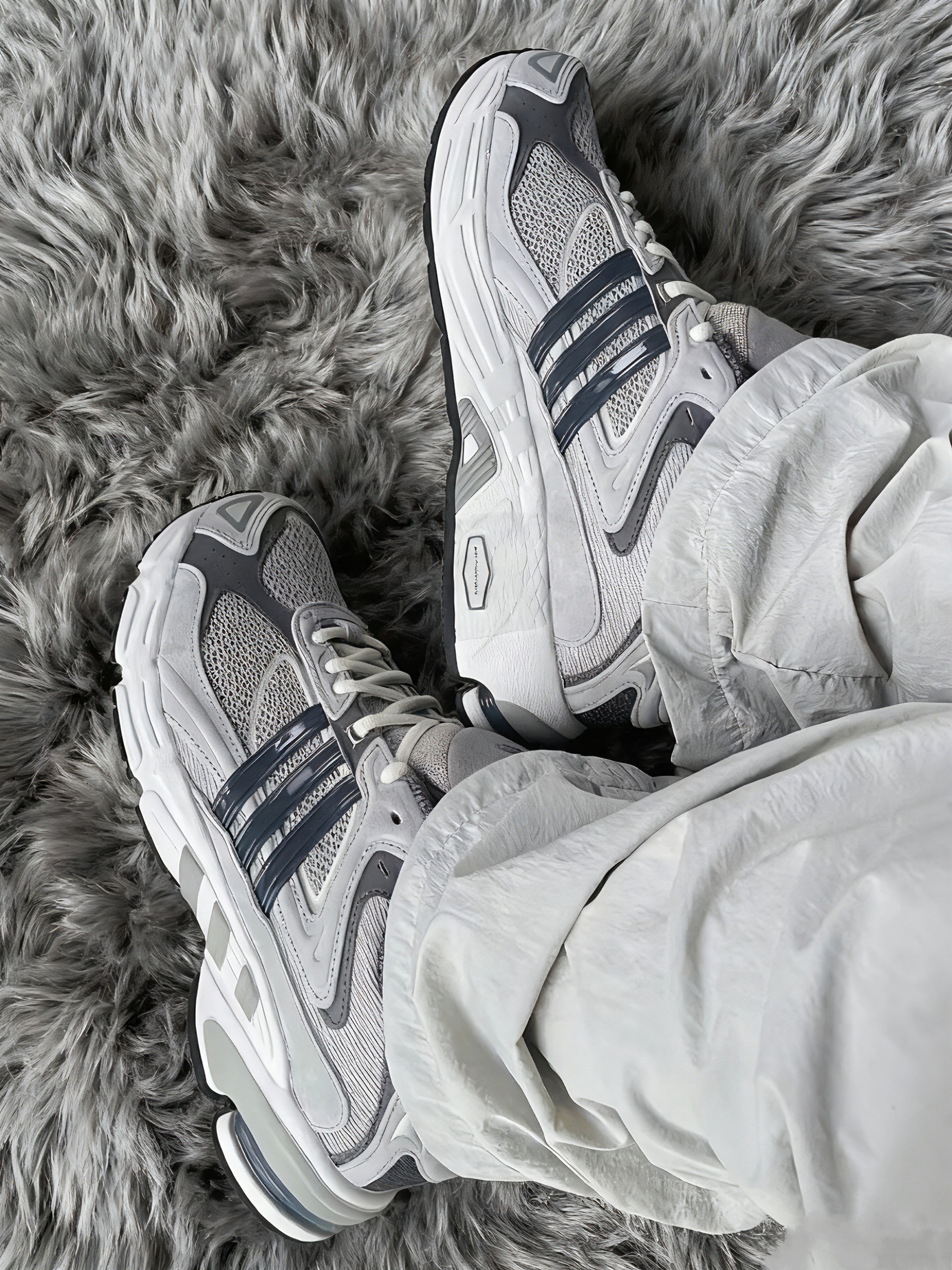 一双非常宝藏的复古跑鞋,灰色系的配 色,搭配了复古蓝点缀,配色百搭耐看又非 常显质感。鞋型也是一直以来都特别受欢迎 的response cl,复古跑鞋鞋型,舒适度特别 好,日常通勤是久穿不累的类型。