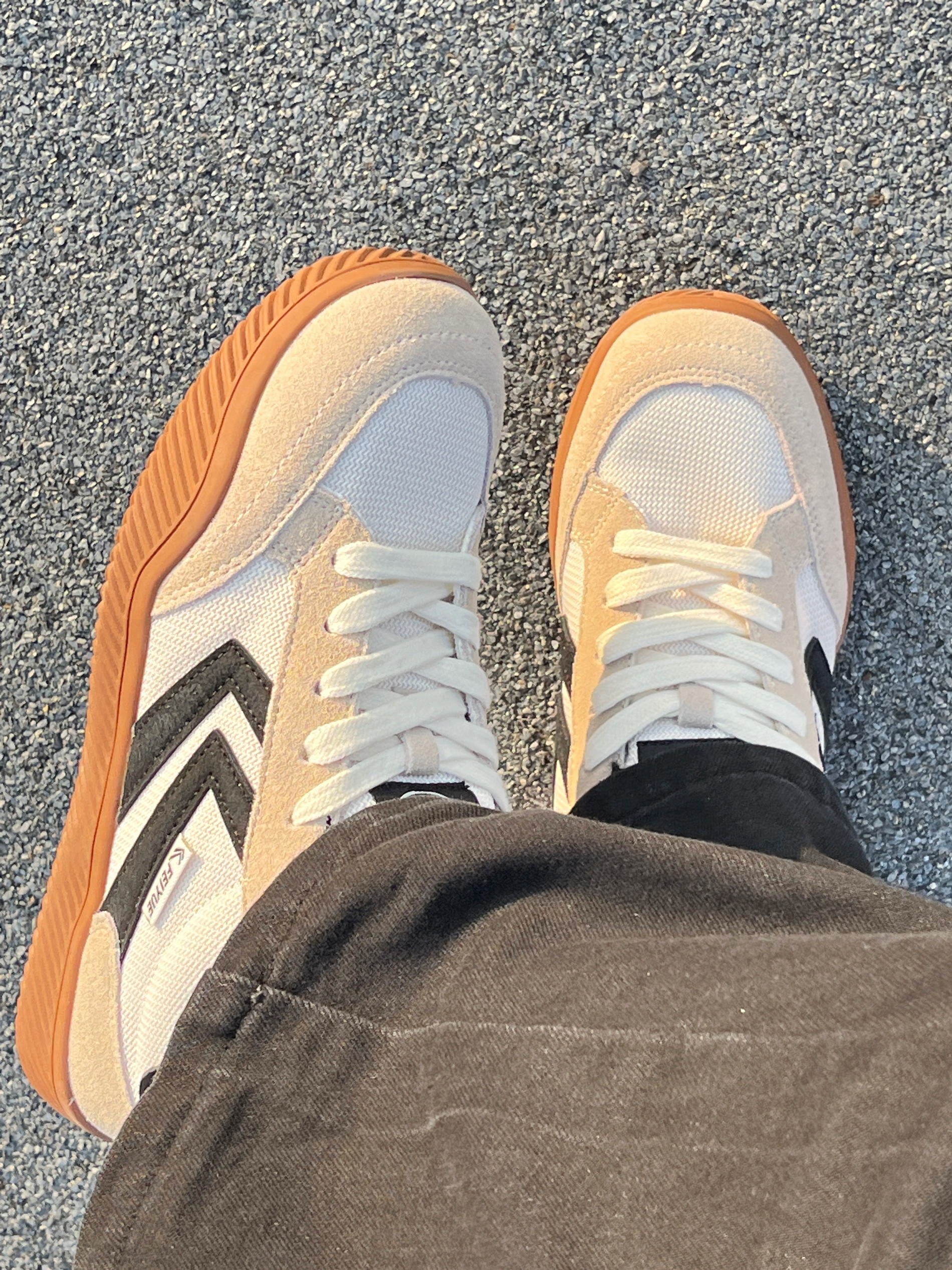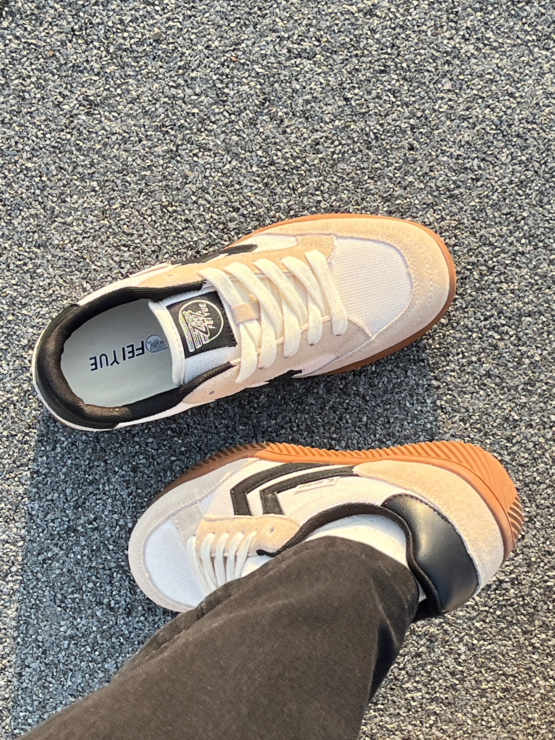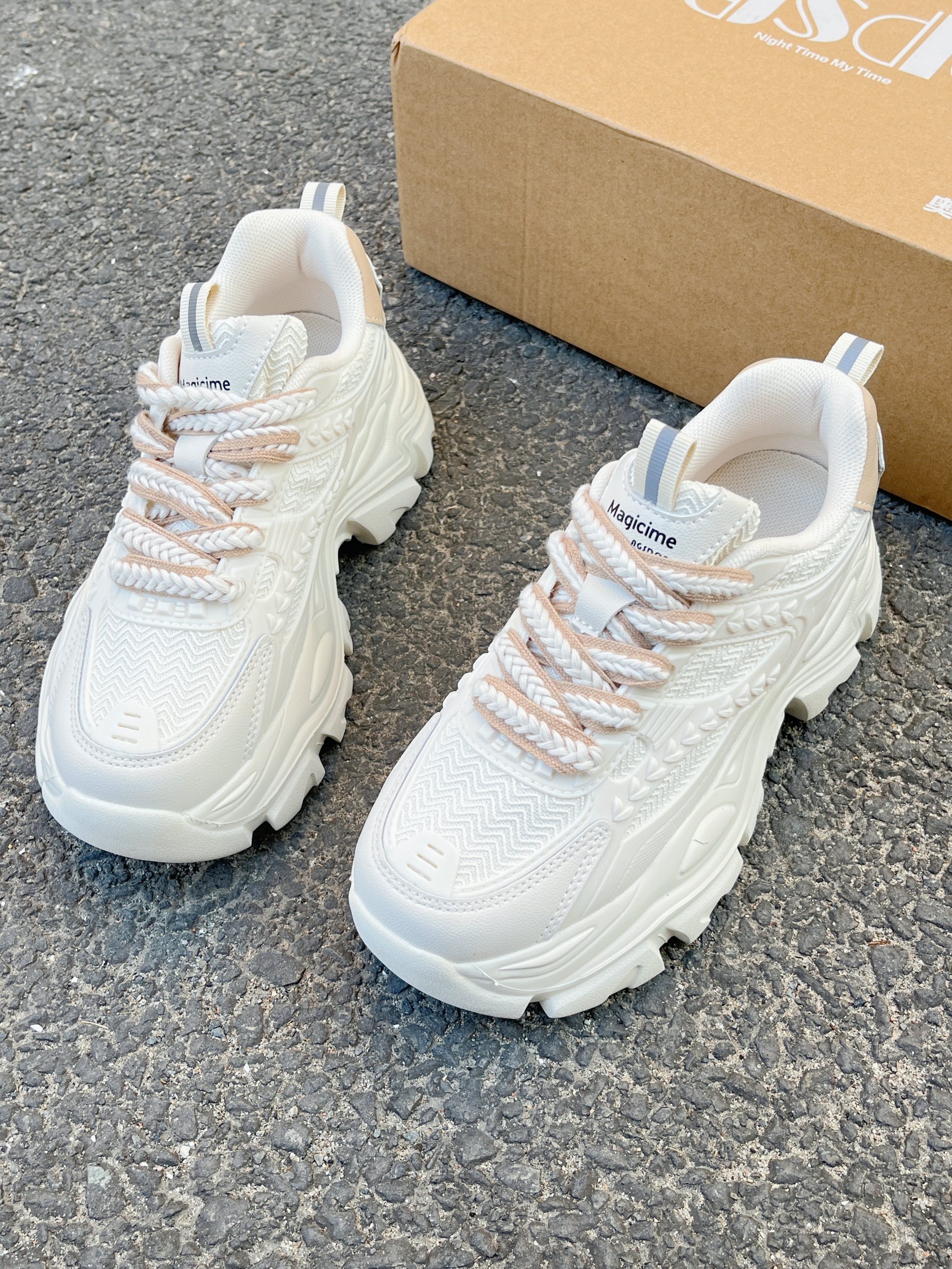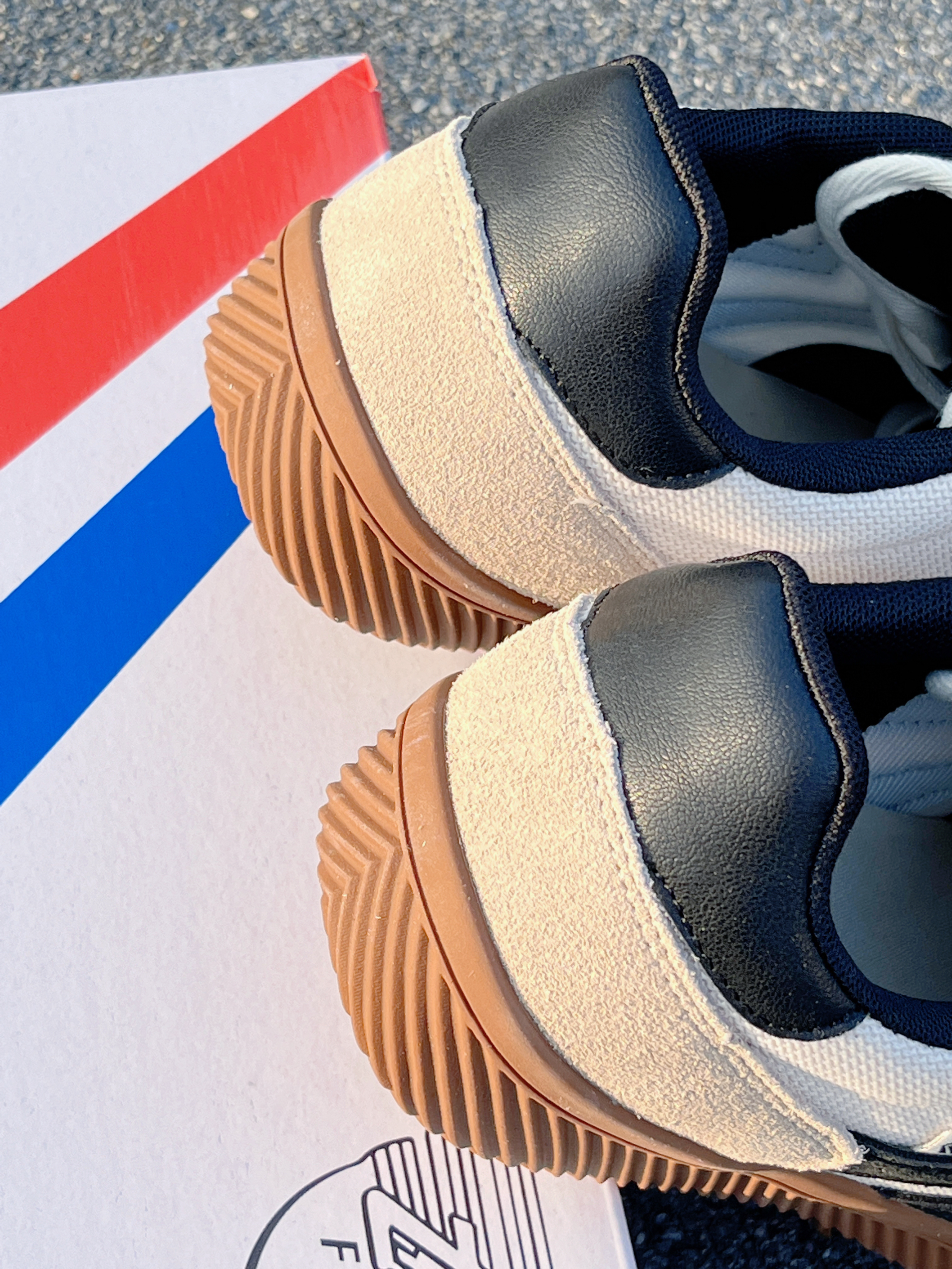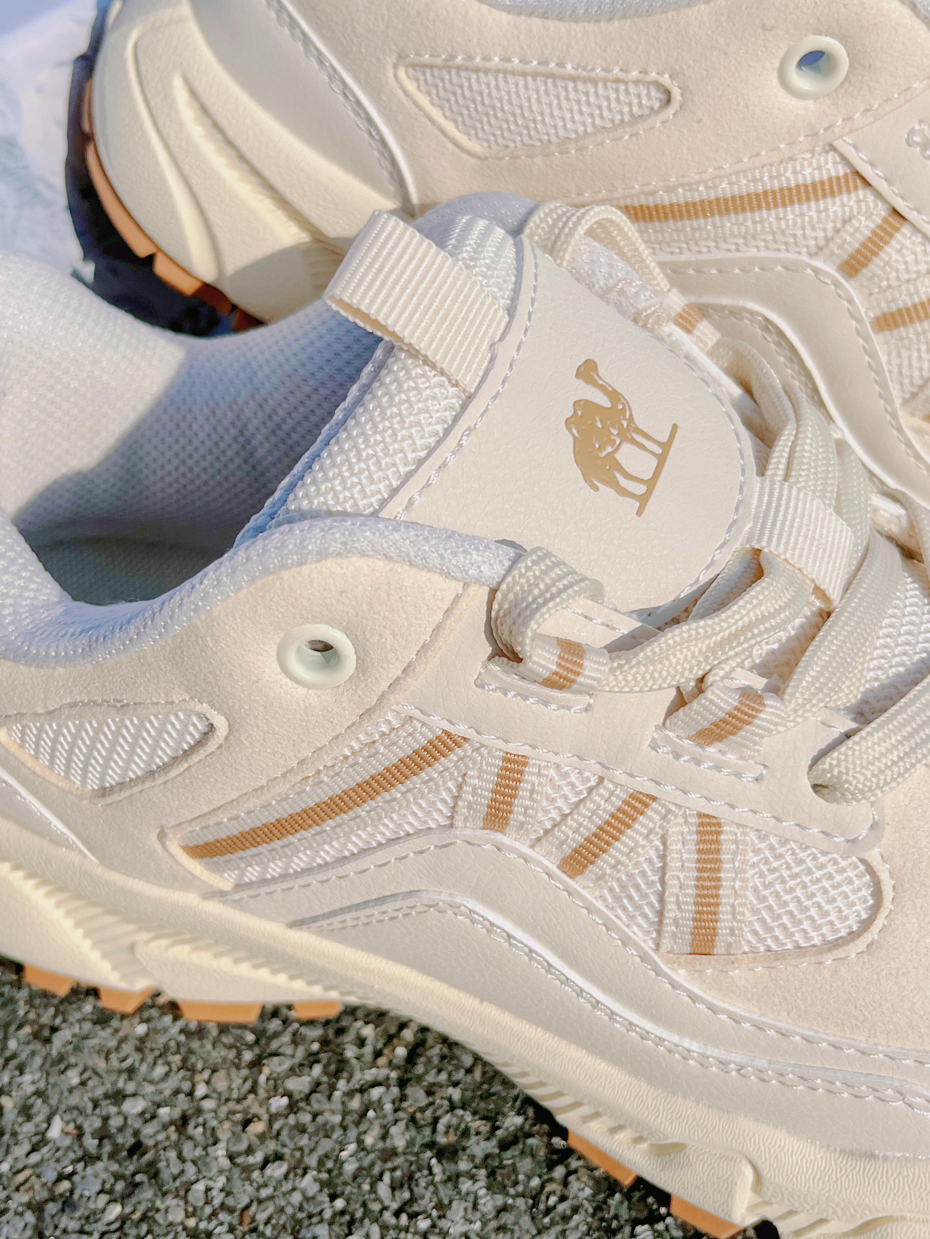 来啦💫这里是小奶冰🧊 今天分享的是一双秋日款板鞋 清爽大男孩🚶同款德训鞋👟上jio很好看~ 米黄白的整体配色➕鞋边的品牌logo设计 鞋面也是用了网状的面料 秋天穿不闷热☀️ 复古配色很适🈴️搭配深色的蓝色牛仔裤👖 尺码正 正码正拍