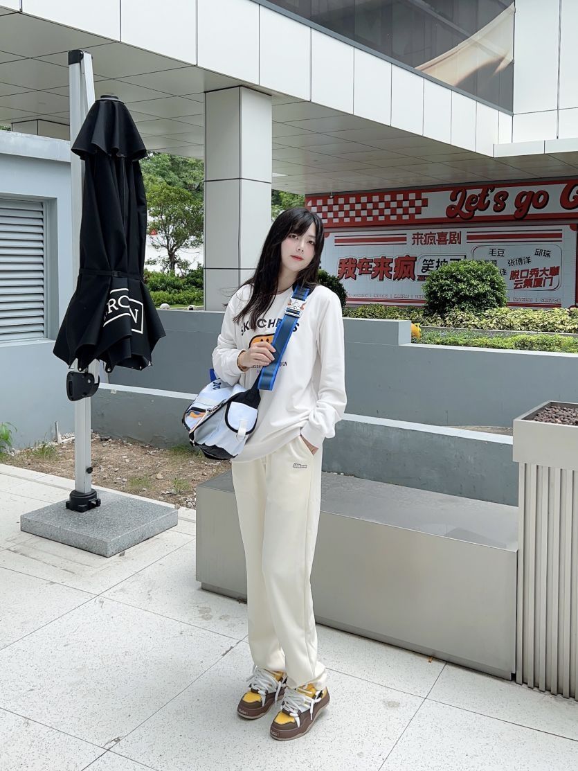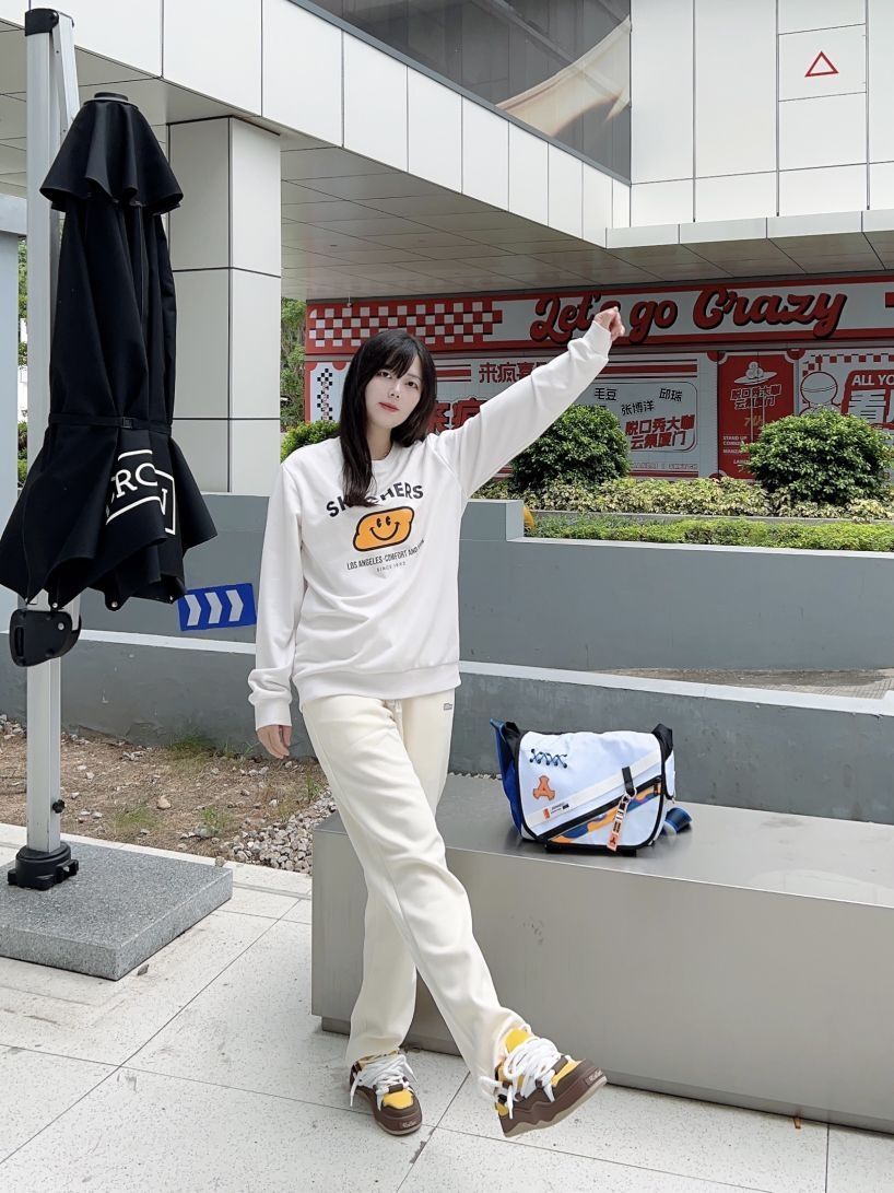 哈喽,又到了小半的穿搭分享时间咯 今天是清爽的秋冬穿搭分享 ! 入秋不应该只有暗色系,清爽的穿搭更抢眼~今天上身白色简约卫衣,版型好看,前襟印花可爱吸睛,刚好是亮眼的黄色,和鞋子搭配作为上下穿搭呼应。白色的卫衣搭配杏色卫裤,卫裤宽松阔腿设计,上身遮肉显瘦,很百搭的一款裤子,日常搭配休闲风的衣服都不会出错的,男生女生都可以轻松驾驭哦~ 今天的鞋子也是特别搭配的是TCELLARS板鞋~黄棕色配色很...