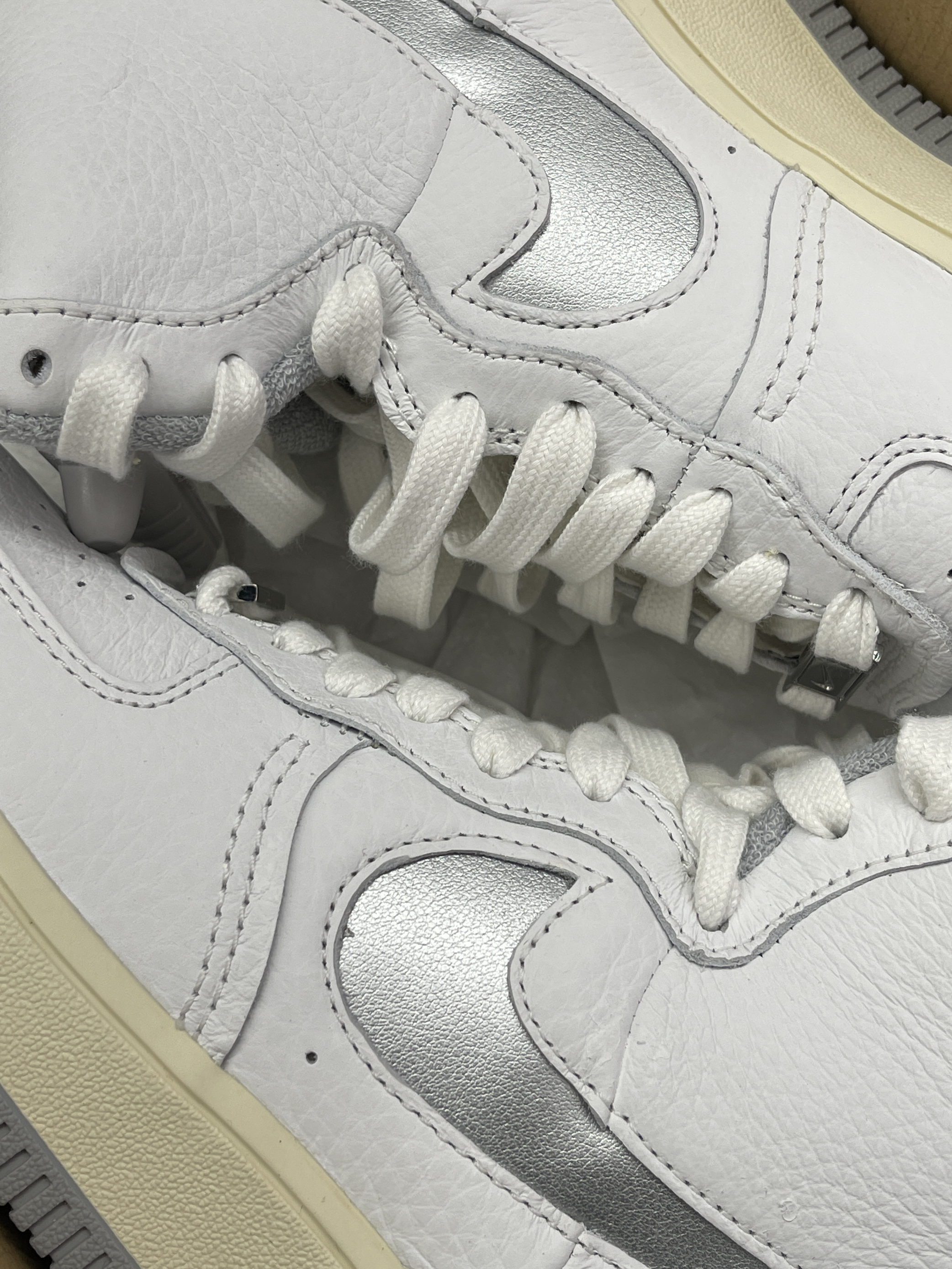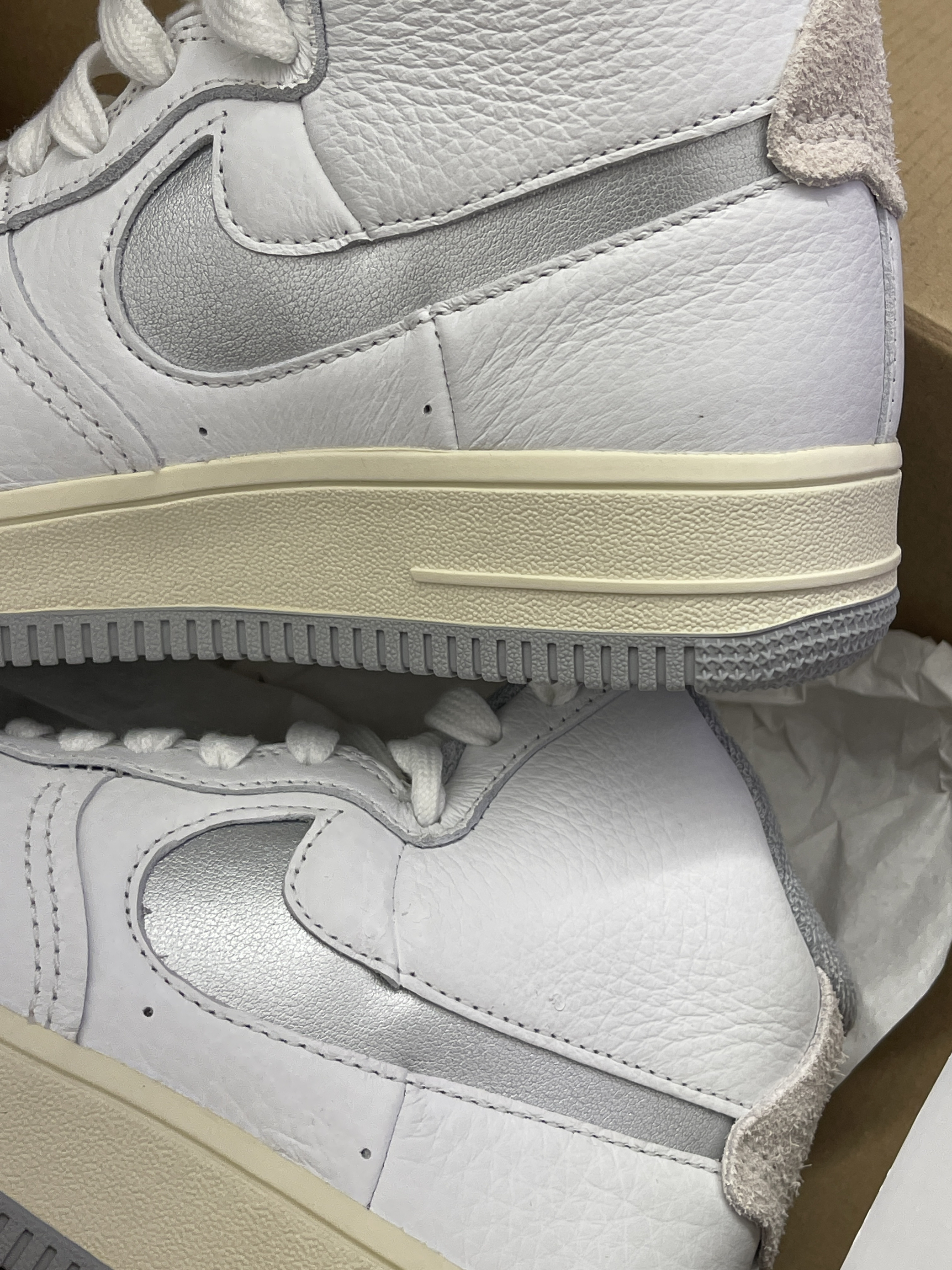 秋冬季节你准备好你的穿搭单品了吗~ Nike|Air Force 1 High Sculpt Silver 潮流高帮板鞋 “白灰色”,经典复古的AF1高帮鞋型,采用白色柔软荔枝皮革与银色Swoosh拼接设计,灰白色大底,整体层次感十足质感在线!上脚舒适且显高级~🔘