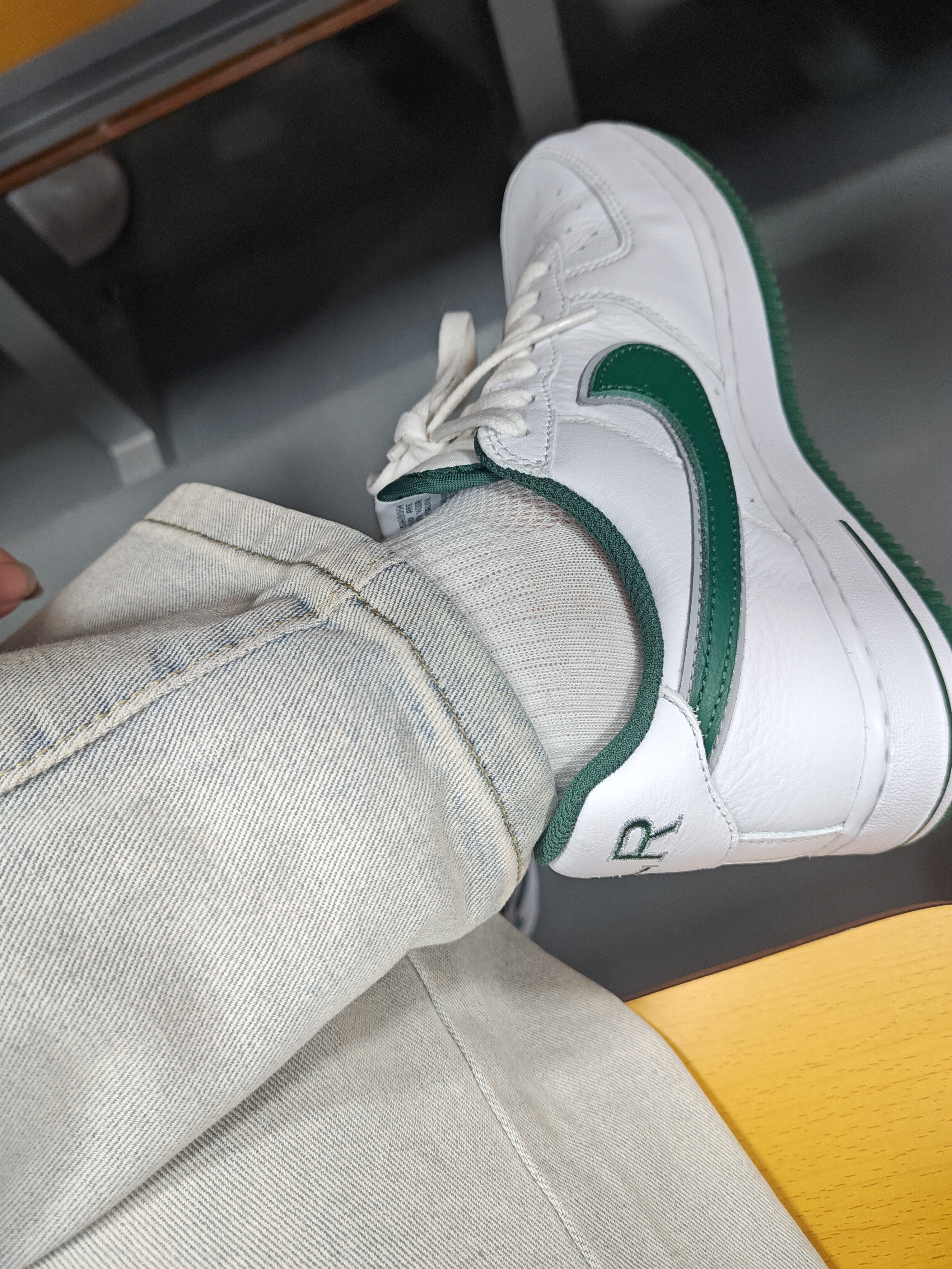 👟球鞋名称:Nike Air Force1Low"Four Horsemen"防滑减震耐磨低帮板鞋男女同款绿白色 🔍设计亮点:整双鞋以白色为主,绿色为点缀,鞋后跟刺绣代表着四位骑士的开头大写。 📃总结评价:白绿经典,柔软荔枝纹,刺绣加成,超帅!