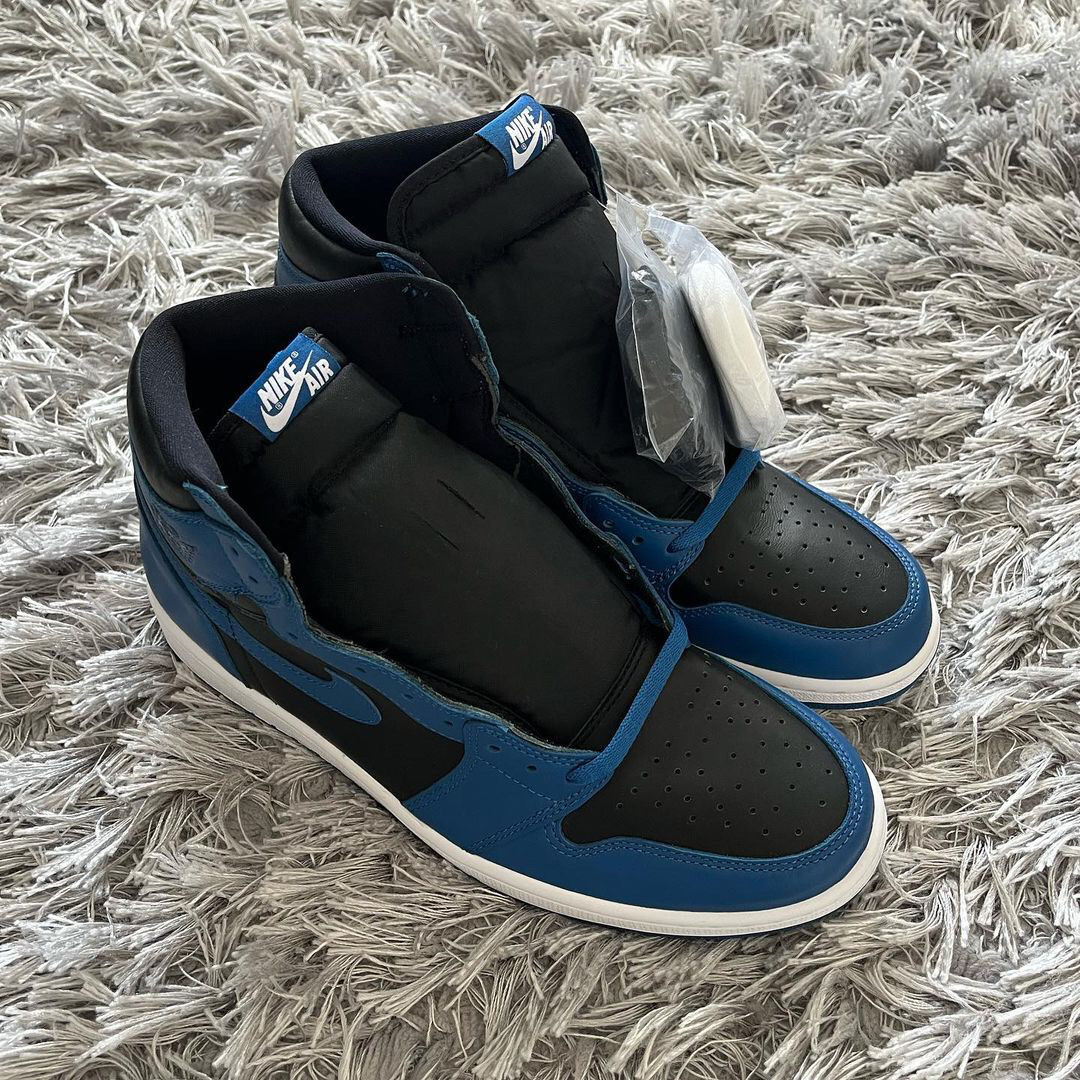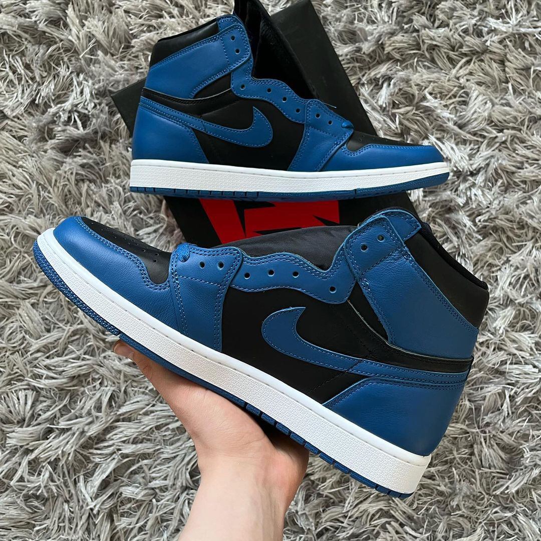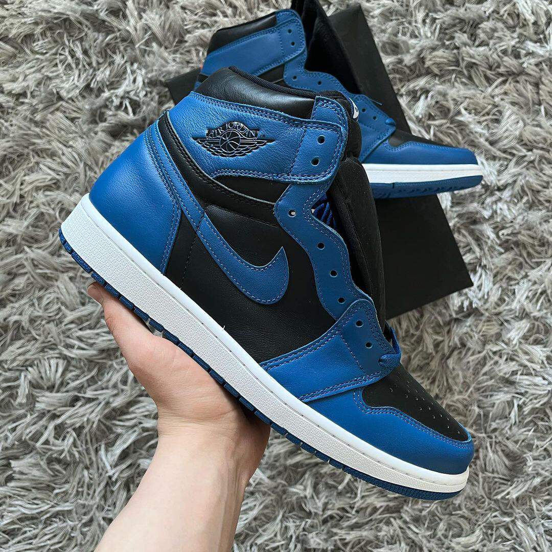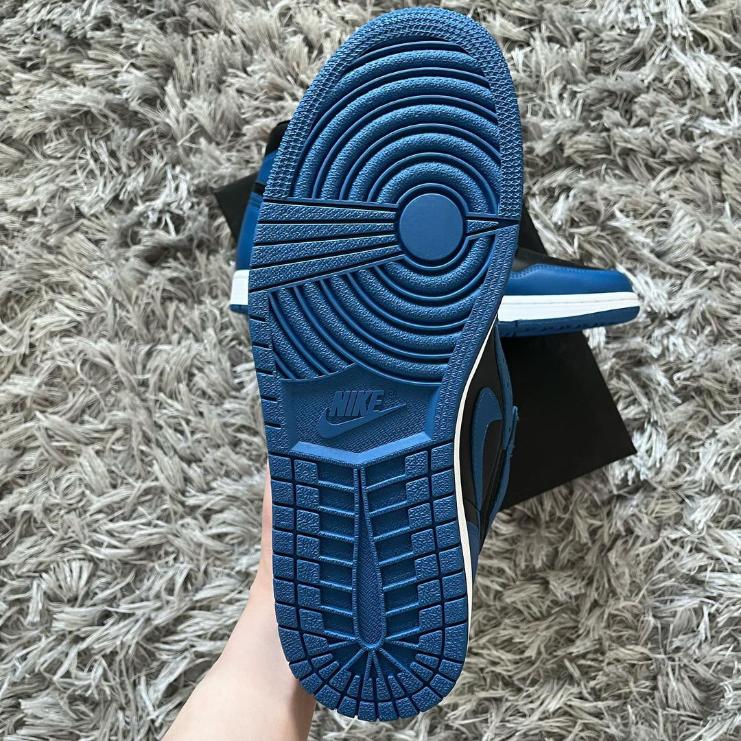 鞋名:Air Jordan 1 Retro High OG "Dark Marina Blue" 黑蓝色 外观及细节: 外观上这双AJ1与其他并没有区别,只是配色不一样,这双鞋子使用了黑色与蓝色的皮革拼接,不能说很亮眼,但也是很具有辨识度,选的皮革质地还算柔软,穿起来并没有什么不适感,鞋帮外侧压印了黑色的飞翼标志作为装饰,黑色的织物鞋舌,确保了基本的透气性,白色中底与蓝色大底的组合,增加了...