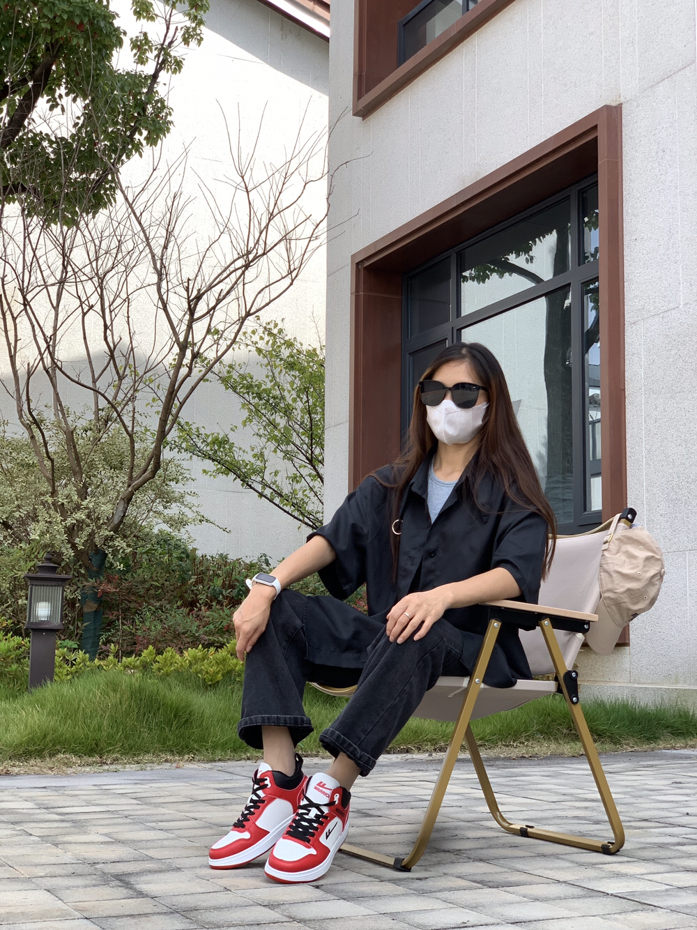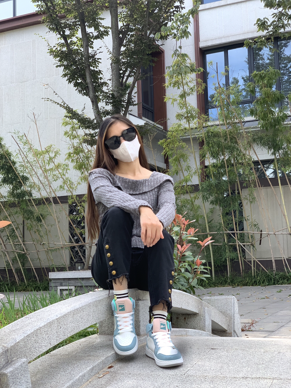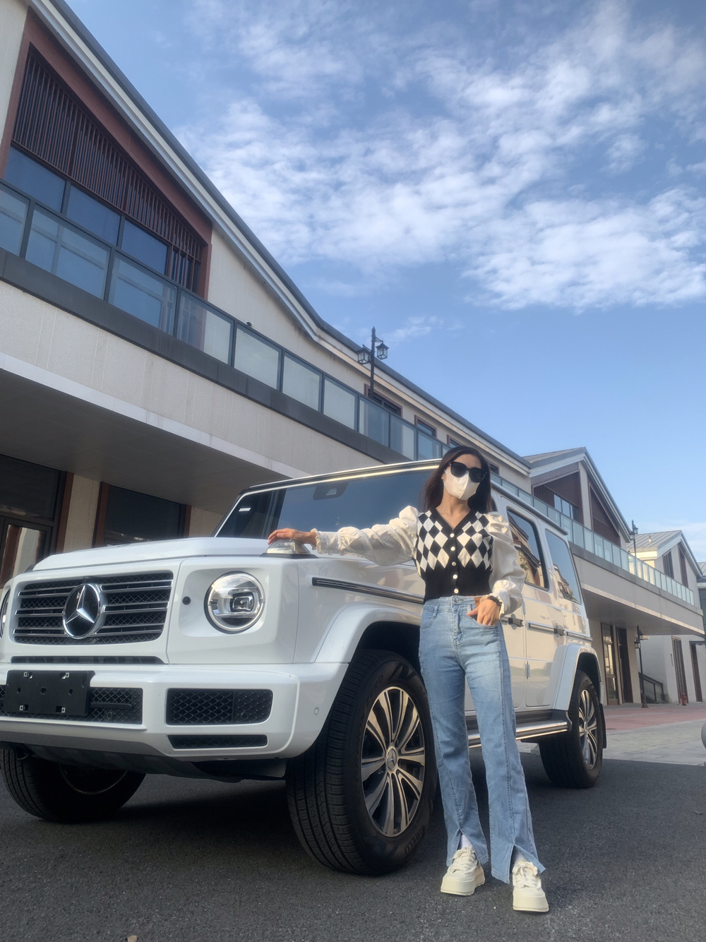 这样穿着出门就很淑女哇 菱形针织毛衣搭配浅蓝色牛仔裤,温柔又清新 再穿一双白色的厚底增高鞋,瞬间增高5公分~鞋子是我喜欢的厚底板鞋,轻便又显腿长,鞋面还是磨毛款式,更是时尚💯。
