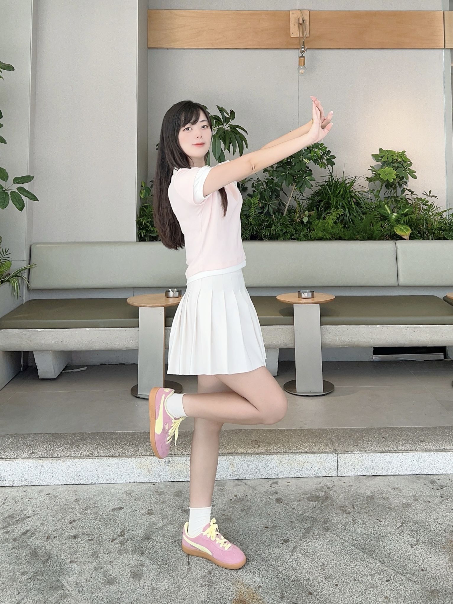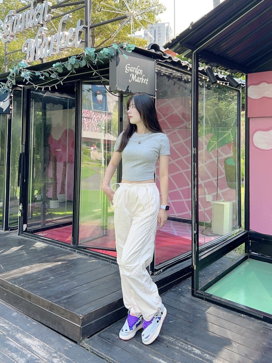哈喽,又到了小半的好鞋推荐时间啦 今天是个性又百搭的小众好鞋推荐~ 今天和朋友出门,简单的灰色正肩短款T恤搭配白色宽松长裤,长裤长绳绑带设计,很个性好看,面料轻薄舒适,上身显瘦又舒适,上短下长的搭配很身材比例,这种穿搭法则很显高哦! 最近一直在找小众不容易撞款的鞋子,让我找到啦!就是今天上脚的这款小众球鞋,性价比很高哦! 今日穿搭的亮点在板鞋的搭配,提升整体穿搭的潮流感和色彩感。鞋子梦幻火山灰...
