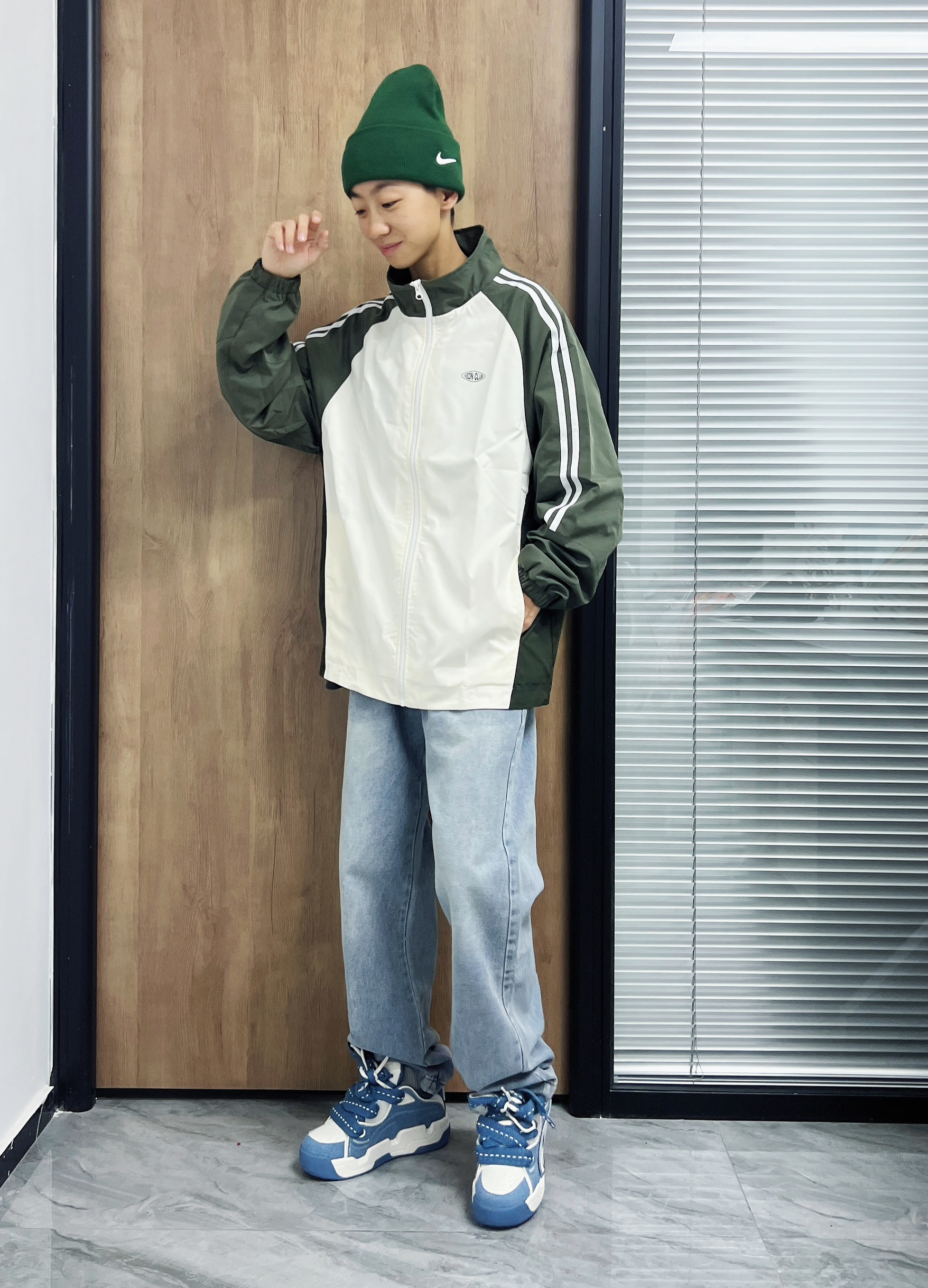 168CM|45KG|👔:M 👖:M 凹造型的宝藏针织帽,coolGirl直接冲! 山系穿搭夹克外套申请出战! 衣服Logo小细节设计太惊喜啦~ oversize 风格满满,配上浅色系🏻牛仔裤👖➕板鞋,太酷啦~