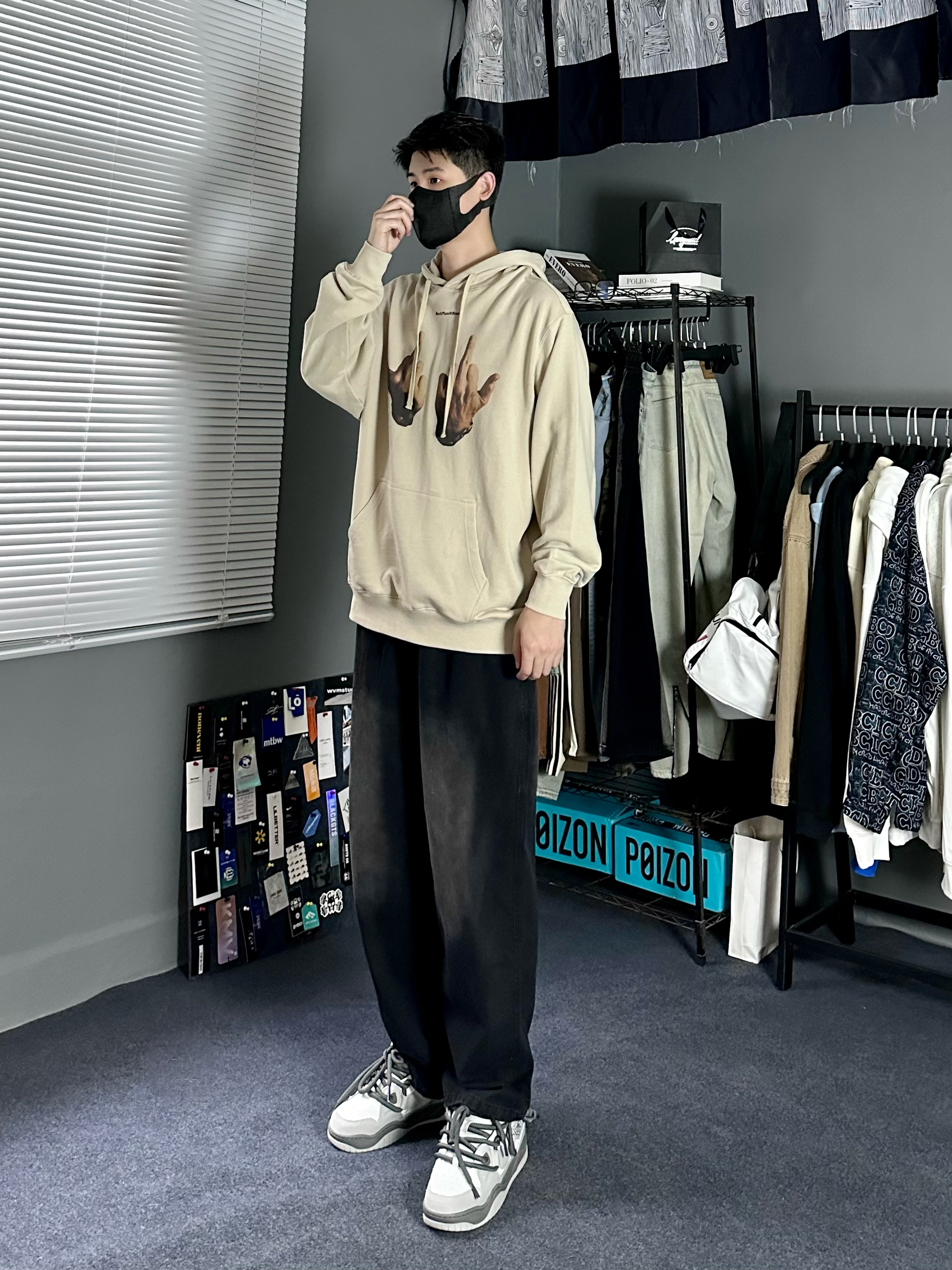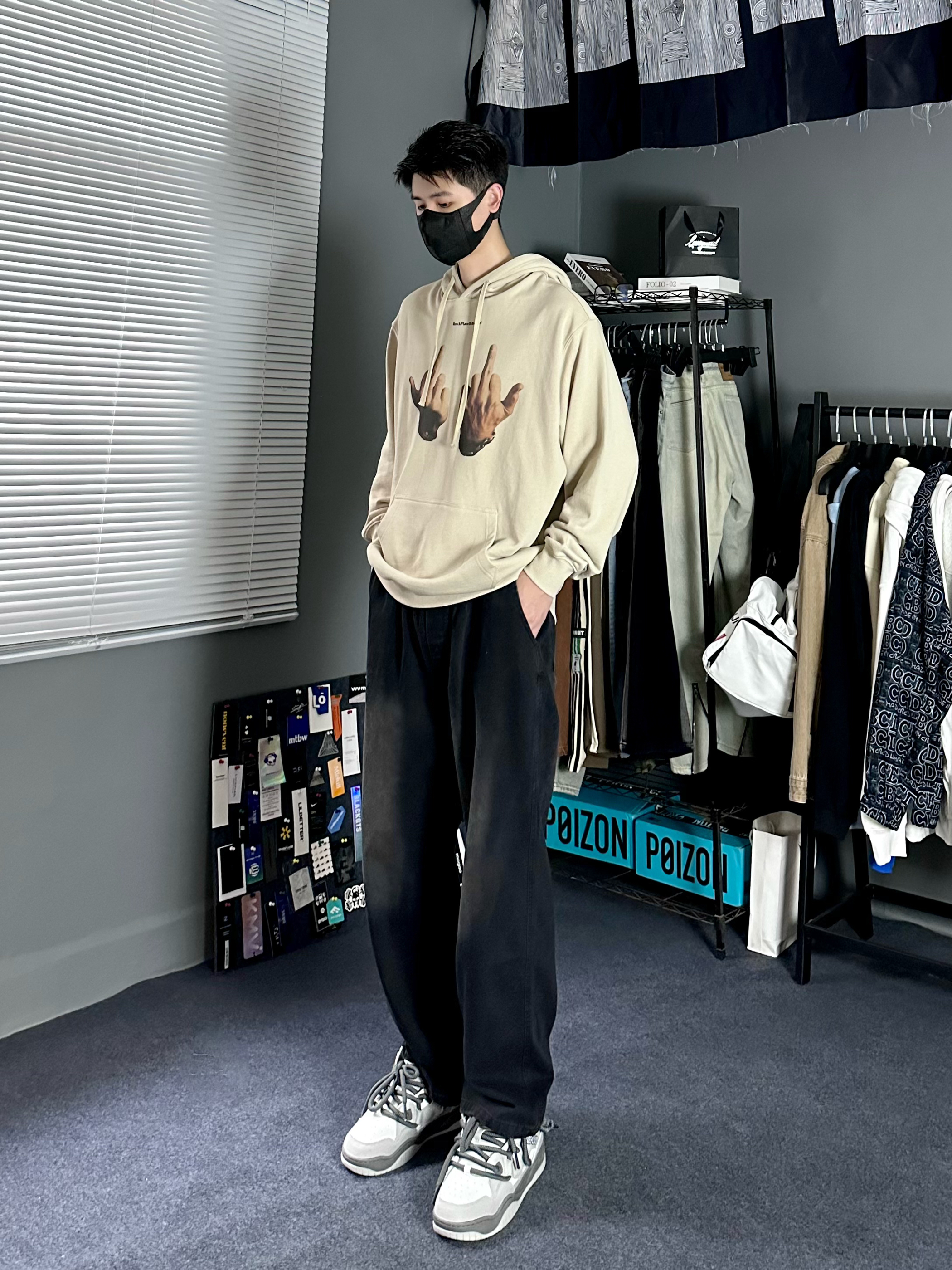 今日穿搭分享 👔摇滚计划 卡其色摇滚计划阿姆国际手势中指印花街头连帽。 卡其色卫衣,颜值真的很在线,美式感十足。 印花图案真的很帅,设计风格也很吸睛。 面料舒适柔软,干净简单。 弹性也很不错,也很厚实。 搭配牛仔裤运动裤都可以轻松驾驭。 不论是街头户外还是运动,都是不二之选。