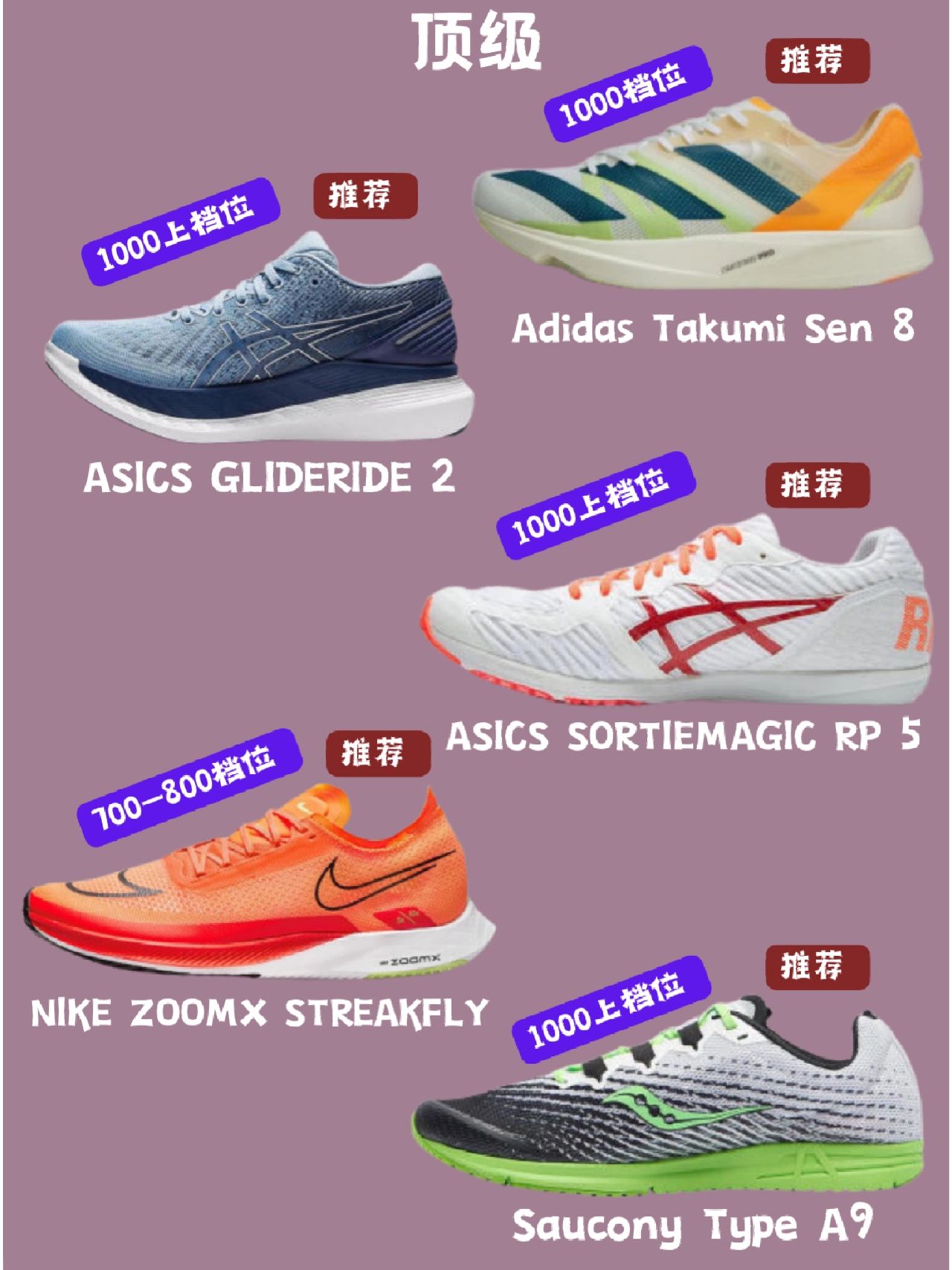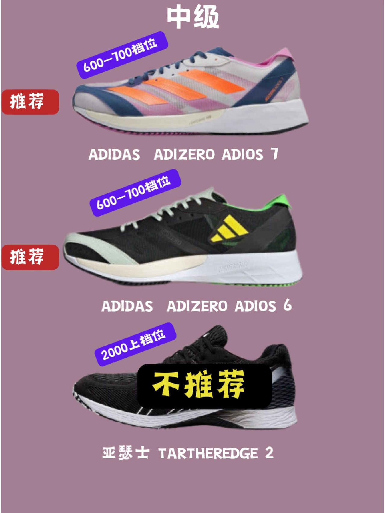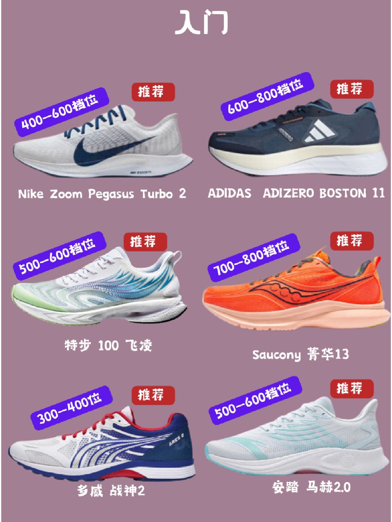 包含百元到千元价位的体考跑鞋,从入门到高级供新手小白选择。 (图源@幸运叶子跑步装备 侵权删)