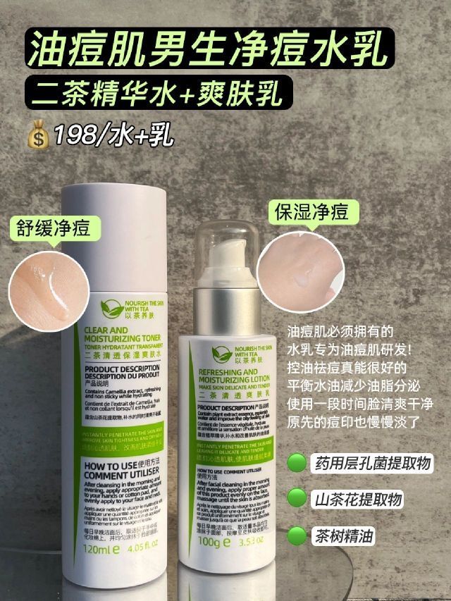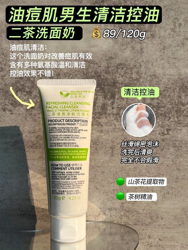 之前的我也不注重自己的脸部护肤 导致出油多!痘痘痘印满脸都是❌ 开始学习护肤,坚持下来整个脸蛋干净清爽了! - 👉🏻我一直在用的精简护肤套装 专门针对男生油腻和痘痘痘印 简直就是为油痘肌量身打造 - 🔴护肤需求:日常清洁/减少出油 🟢护肤品:二茶洗面奶 🟡使用感受:这个洗面奶含10种氨基酸,清洁力较好能清理多余油脂,洗完脸上很清爽不会紧绷拔干,洗完长时间不怎么出油! - 🔴护肤需求:调节水油/控油...