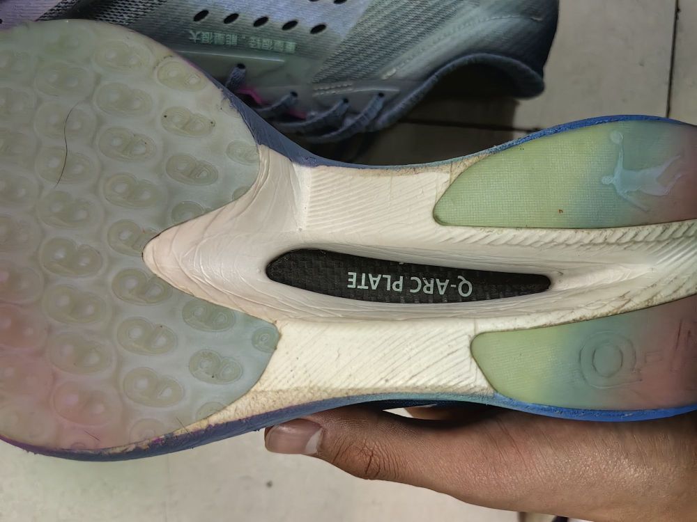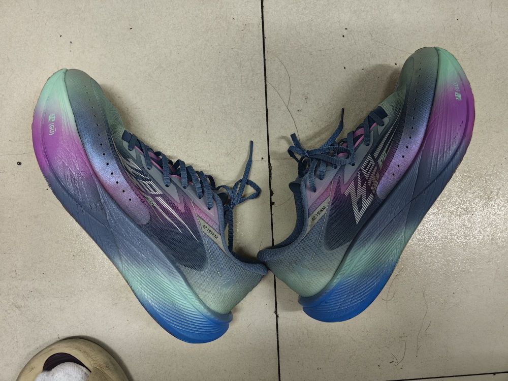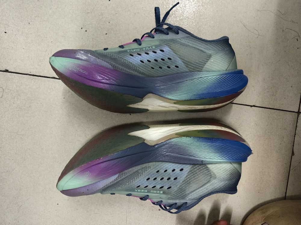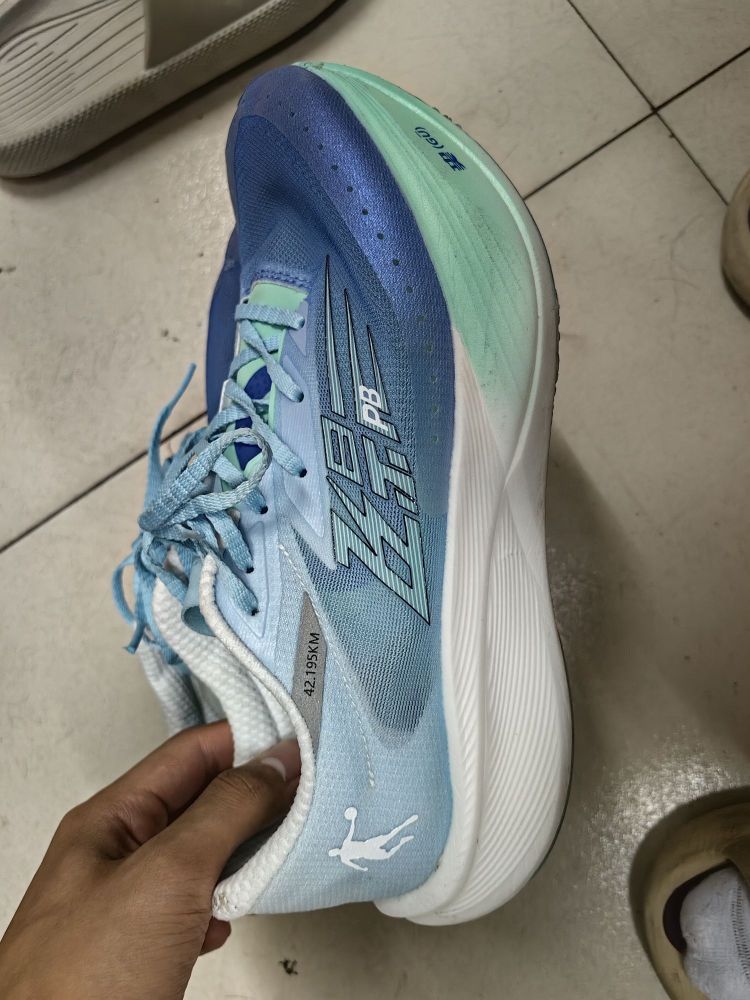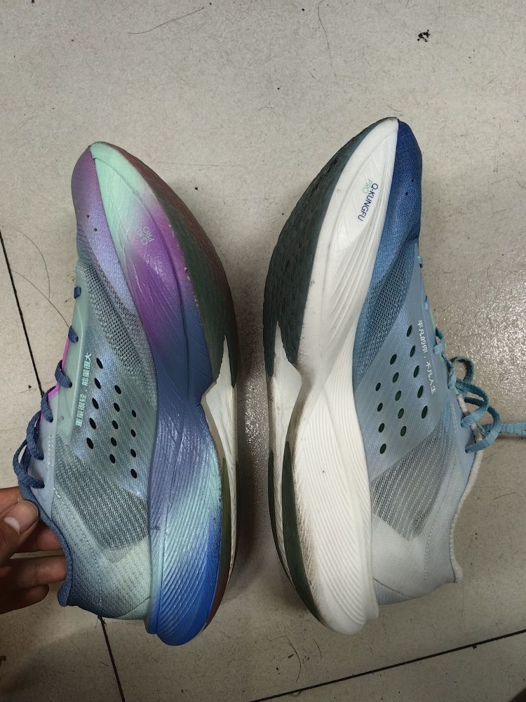 穿进去并不是特别紧致的包裹 前脚掌非常舒服而且跑起来也非常轻盈 整个鞋非常轻盈比我其他碳板鞋穿起来都轻 全掌碳板推进力很强,配色也很帅,性能很能打 3分配速不拖沓4分半非常舒适,适合进阶跑者 第一双跑了100公里左右了,趁着双十一优惠又复购了一双蓝色换着穿。本来想搞双飞影plaid,还是感觉还是这双适合我