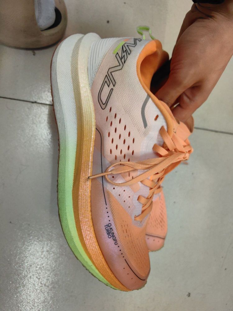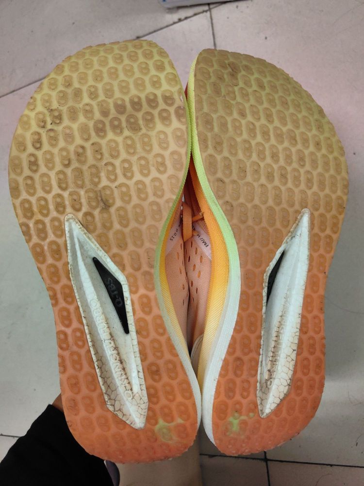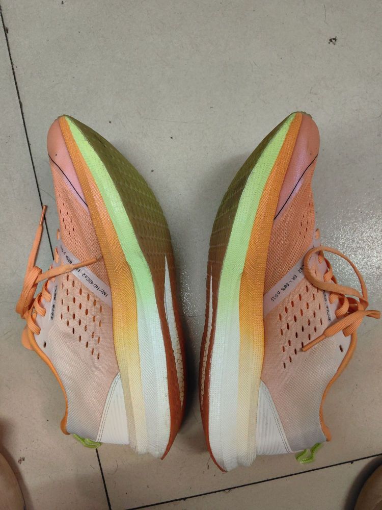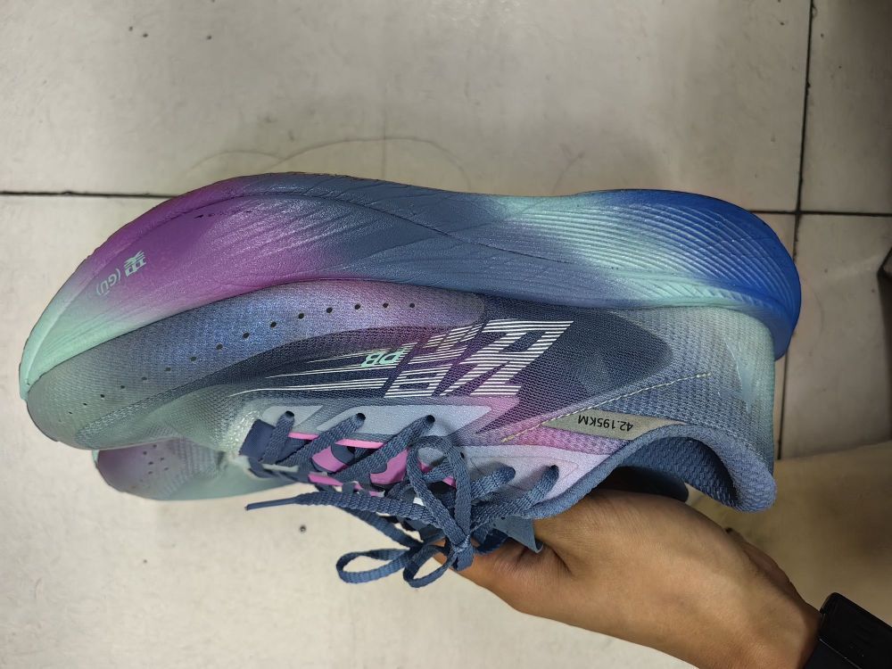 首先尼龙板是真硬,比碳板都难掰 穿上软弹,跑操场跑道是真的舒服至极 脚掌也很贴鞋底,脚感很好 鞋面透气有孔,强度也很不错,颜值很高 这双鞋正码就可以,我是没出现顶脚趾的现象 这双穿了30公里左右基本没磨损 总的来说是双优秀的场地跑鞋,跑马拉松的话也可以