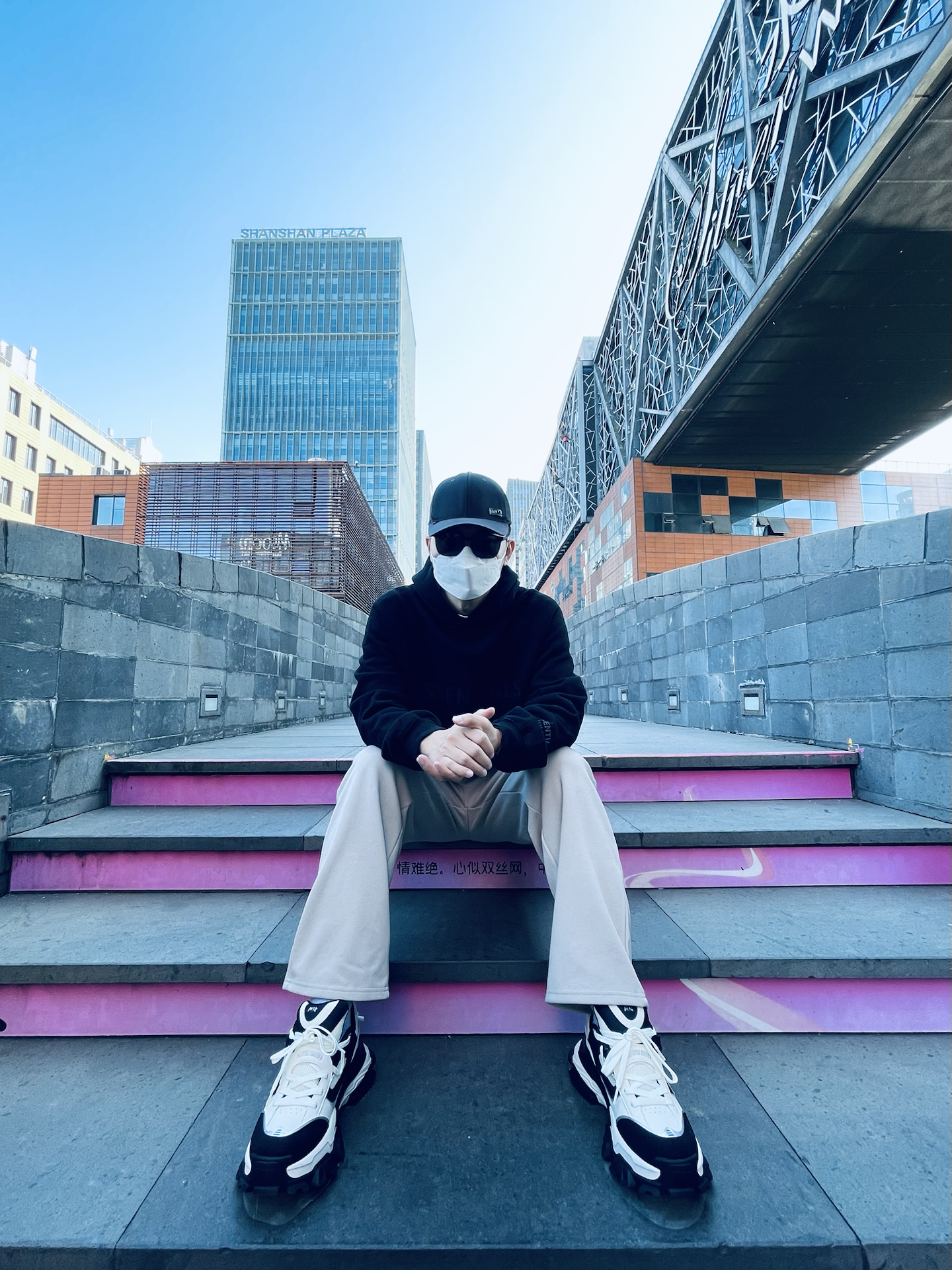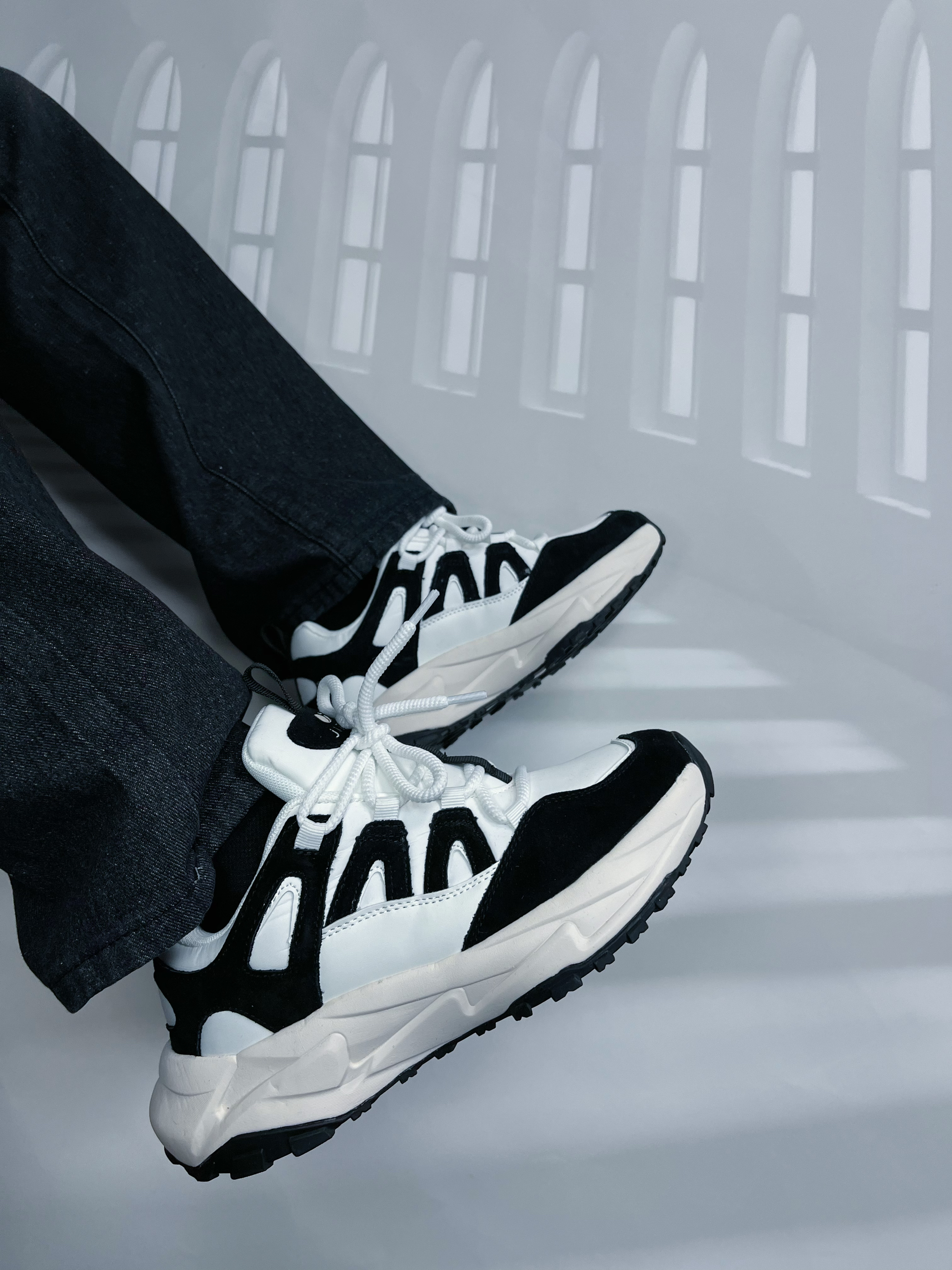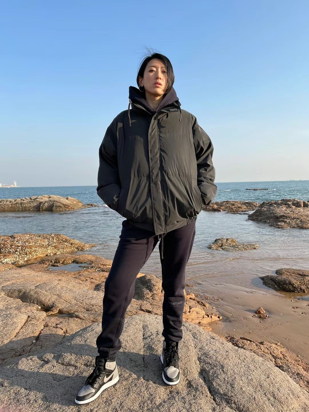 梅紫色的圆领卫衣😉 黑色系宽松阔腿牛仔裤😋 山系户外防滑厚底休闲鞋🤫 从头往下,深色系包装,适合秋季跟你去爬山🤫