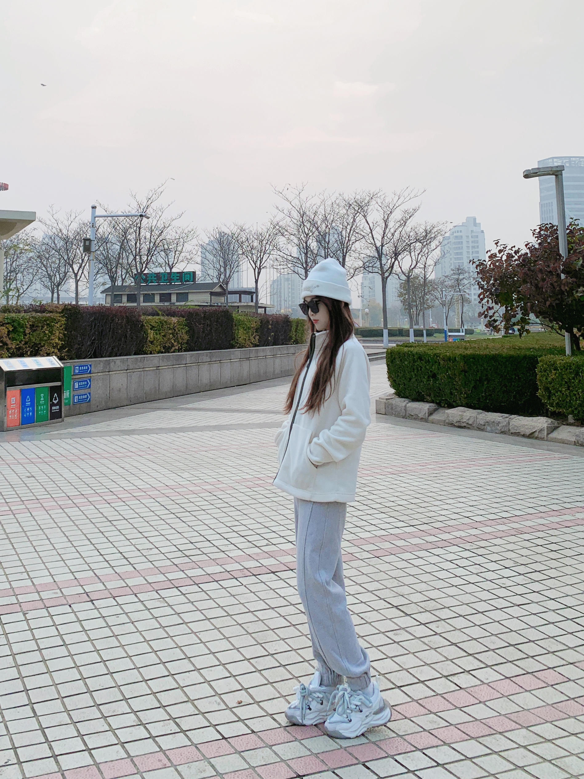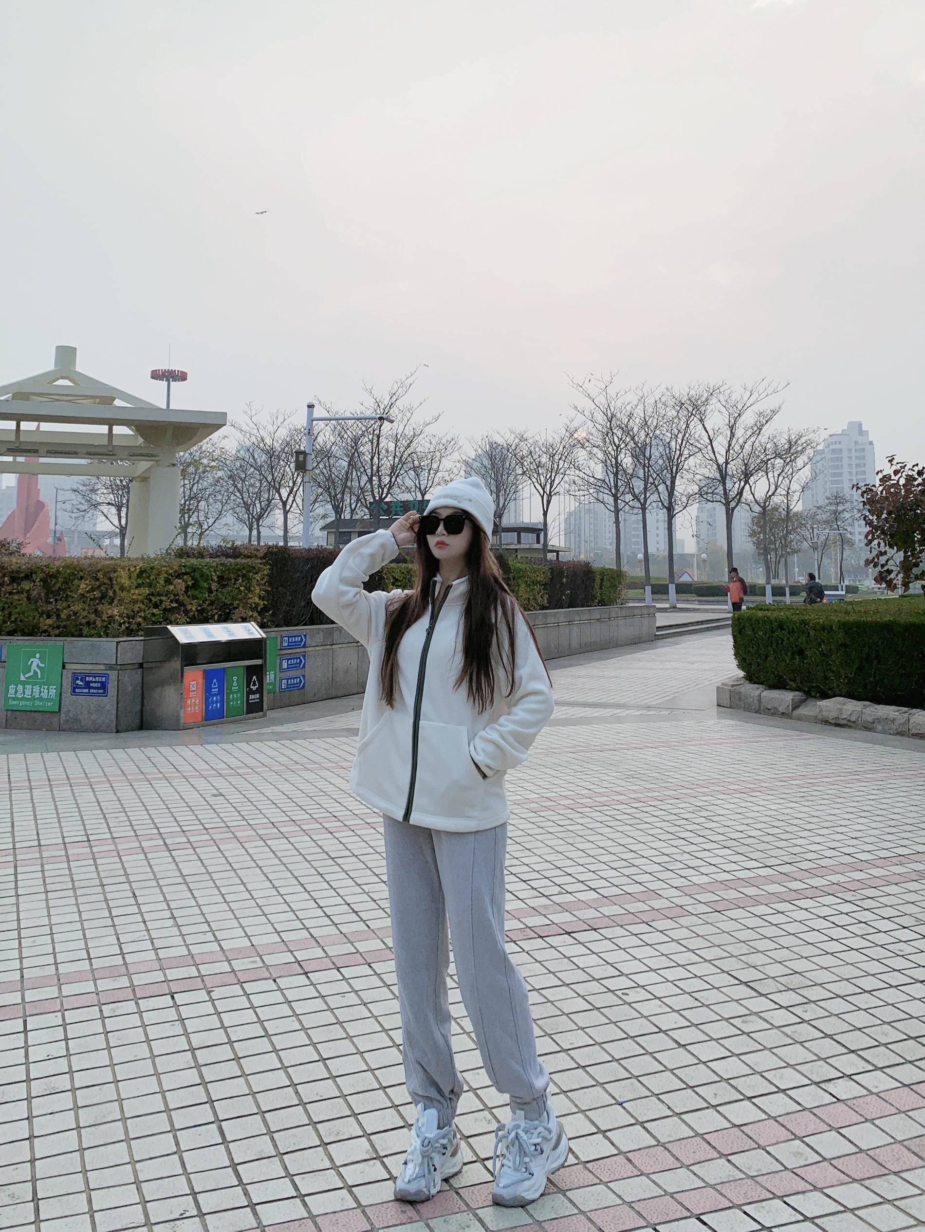 嗨喽嗨喽,这里是是亦小木的日常穿搭~ - 这件外里摇粒绒软fufu外套有点特别, 用光热保温的面料, 手感亲肤柔软细腻🥰 版型是宽松遮肉, 做工挺阔有型酷飒风~ 搭配了灰色卫裤,运动风少女风🈵️🈵️。 米白色在秋冬就是显眼温暖的颜色。 身高156体重40上身尺码s 🧥MOLYVIVI 👖LI NING 🕶️PULAIS