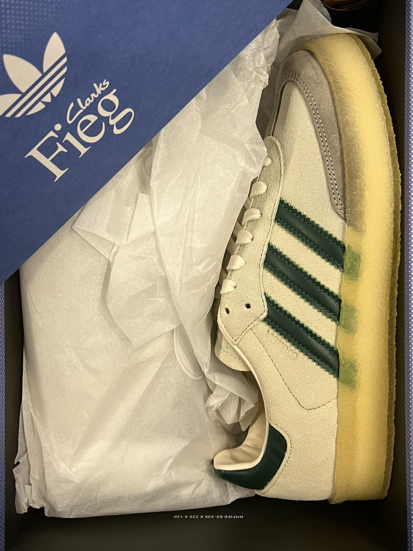 Roonie此次操刀的鞋面,内衬及鞋盒的规格都算上乘。但联动Clarks,将生胶底融入最近重新爆火的Samba还是大家喜爱的样子吗?#samba联名 #爆款Samba #秋冬户外穿搭公式
