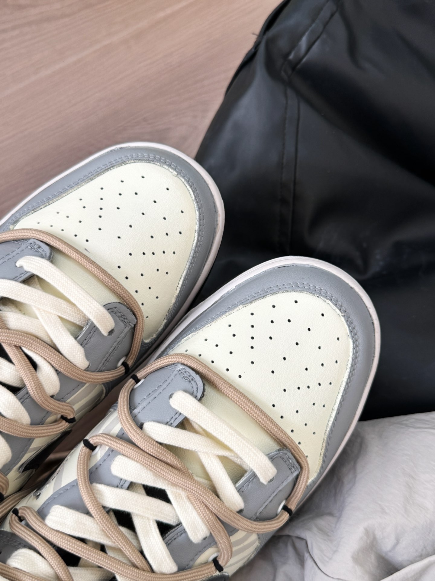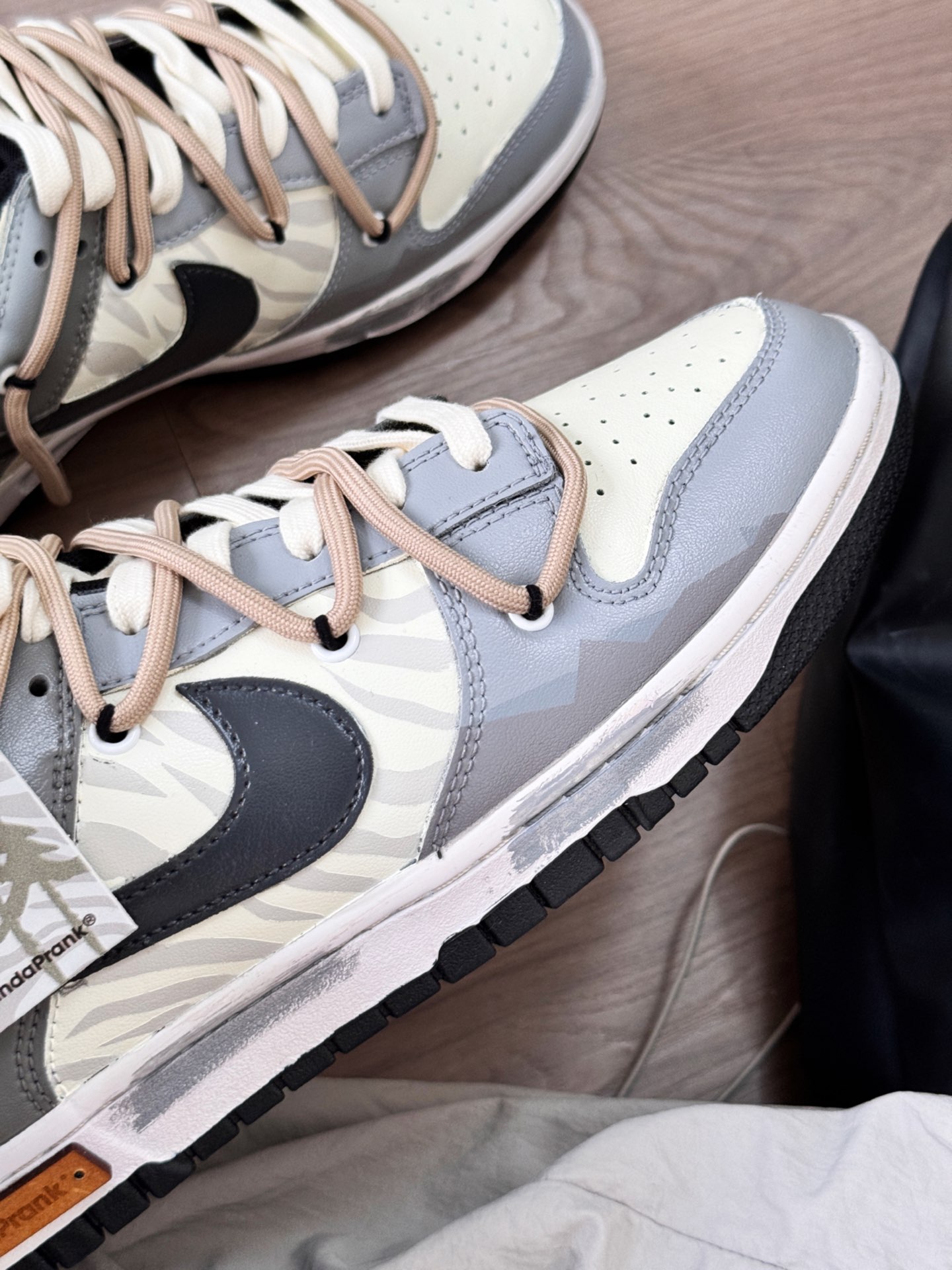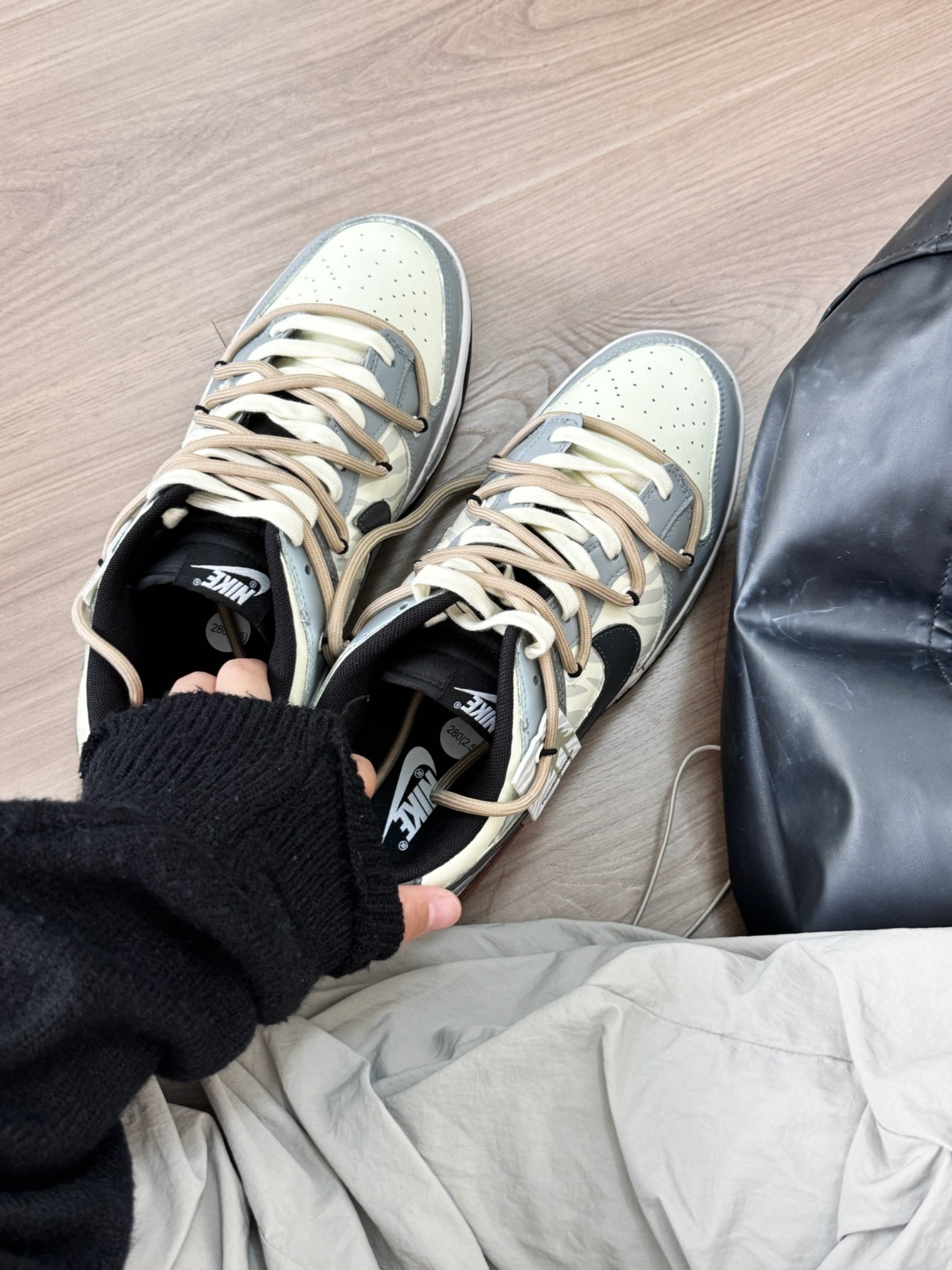 熊猫恶作剧家的dunk真的好会设计! 这双黑灰色配色很耐看 秋冬就搭配黑色系和灰色系衣服 巨好看的!! 在学校穿这双回头率还蛮高的☺️ 码数也是正常哦 这双是真的酷呀~