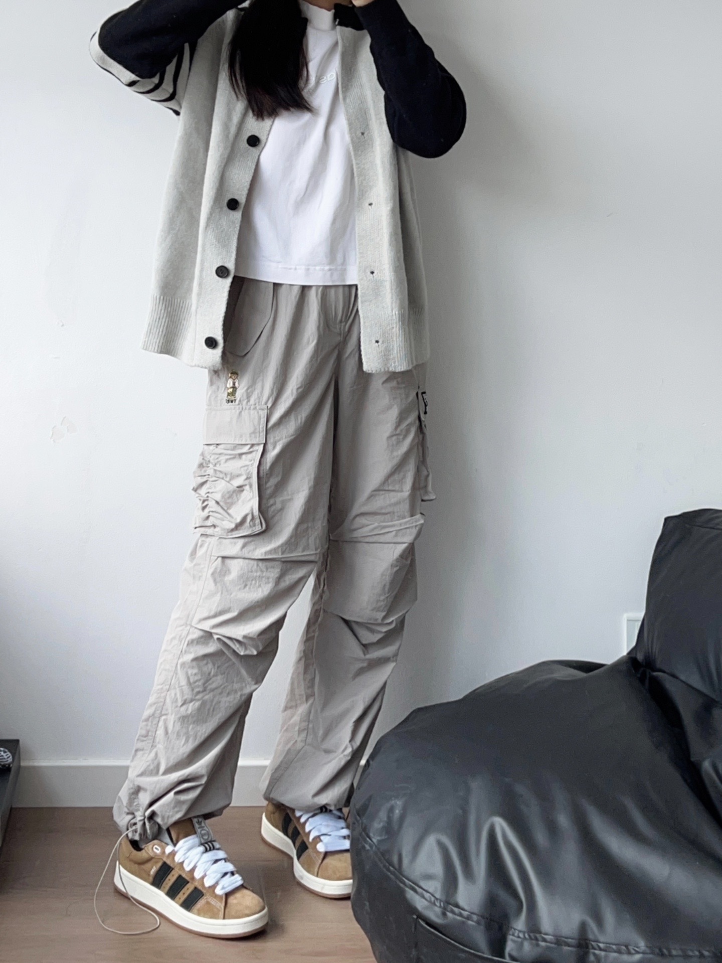 今天的ootd非常的温柔 色系都很温柔 上衣是毛茸茸的 裤子是薄款啦,超级轻薄! 它有很多个口袋,哈哈哈 我很喜欢这个设计,可以放很多东西! 面料可以防水防晒滴,上身很舒服~ 鞋子也是和今天的衣服超级搭配 很温柔的一身喔~! 身高160穿的M码哦