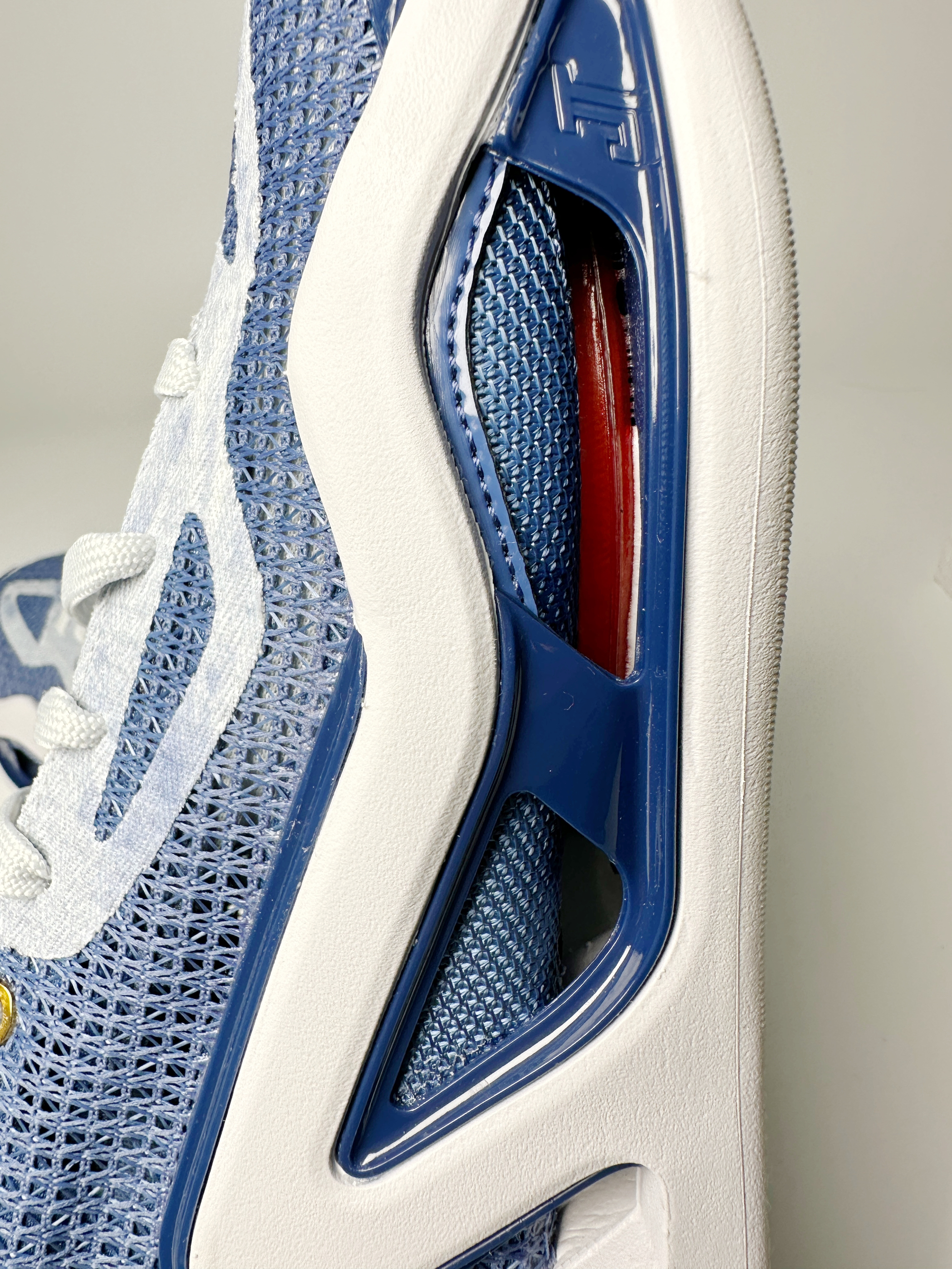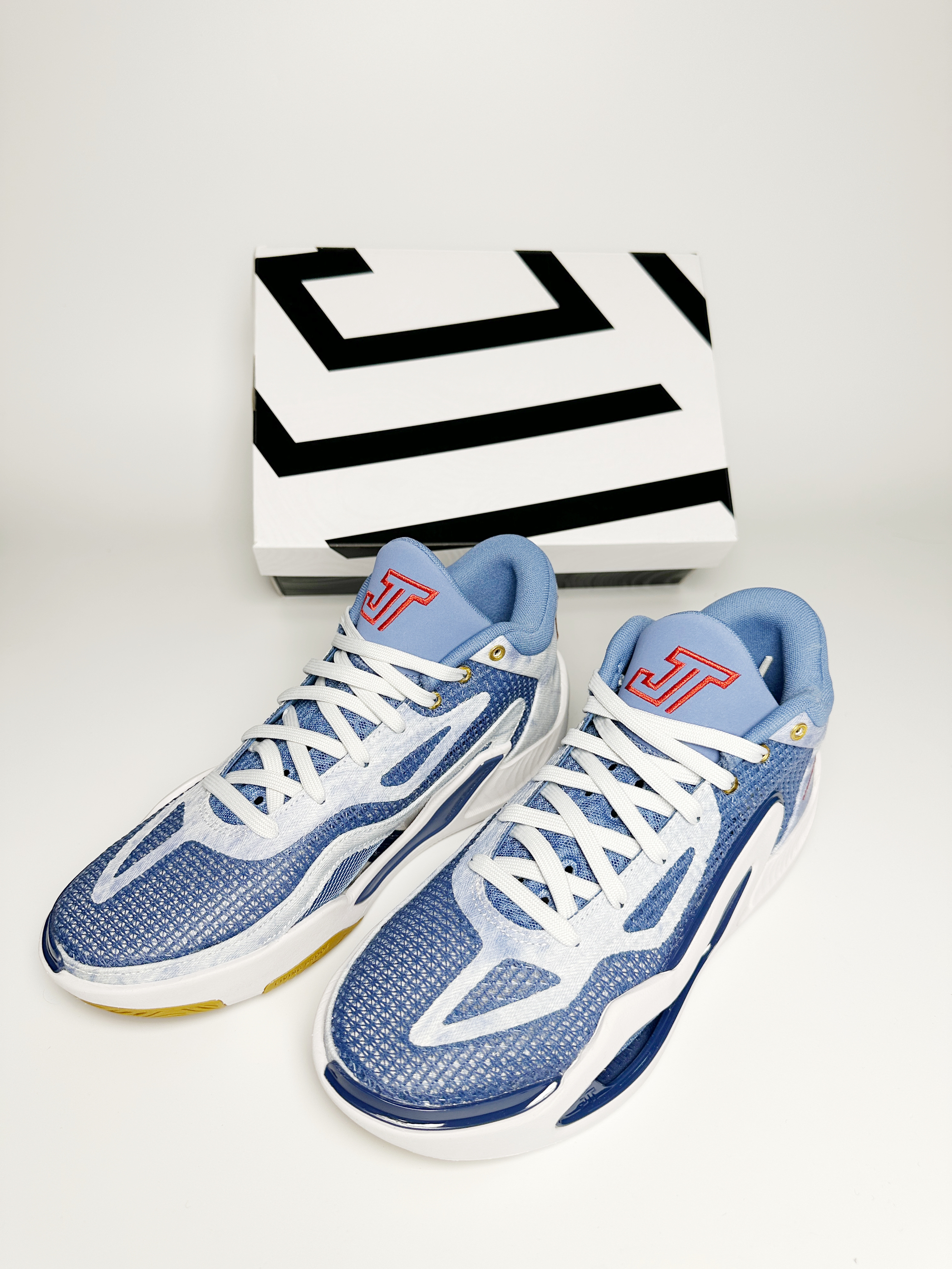 今天开箱这双单宁配色的塔图姆一代,比较少有的牛仔蓝配色,是我选它的主要原因。这款鞋整体鞋面的颜值对于日常穿搭也很合适,下面说下我试穿下来的感受: 感觉不太适合大体重高爆发球员,足底外露的气垫比较容易出问题; 足底前掌的气垫踩上去比较舒适,外底是XDR材质比较耐磨,在外场无压力,但是就入手的这款清新配色,我还是选择在内场实战; 鞋底脚心位置的镂空设计比较新颖,减轻了鞋身的重量,但是较好的结构设...
