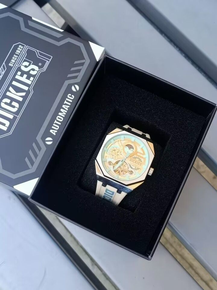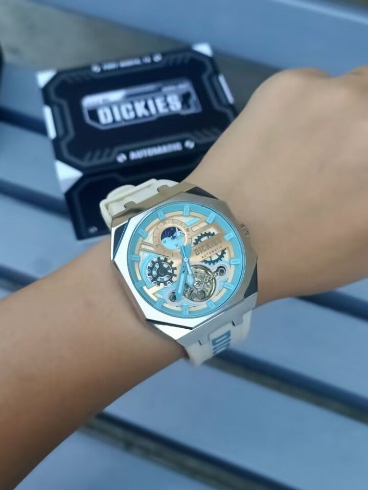 本篇笔记关联了Dickies/帝客 日月星象 大表盘背透镂空学生多功能防水酒桶形氚气自动机械男士手表 白色 220M60LYXCL-485P9-93JX等商品,为用户提供真实的使用体验和购买参考。