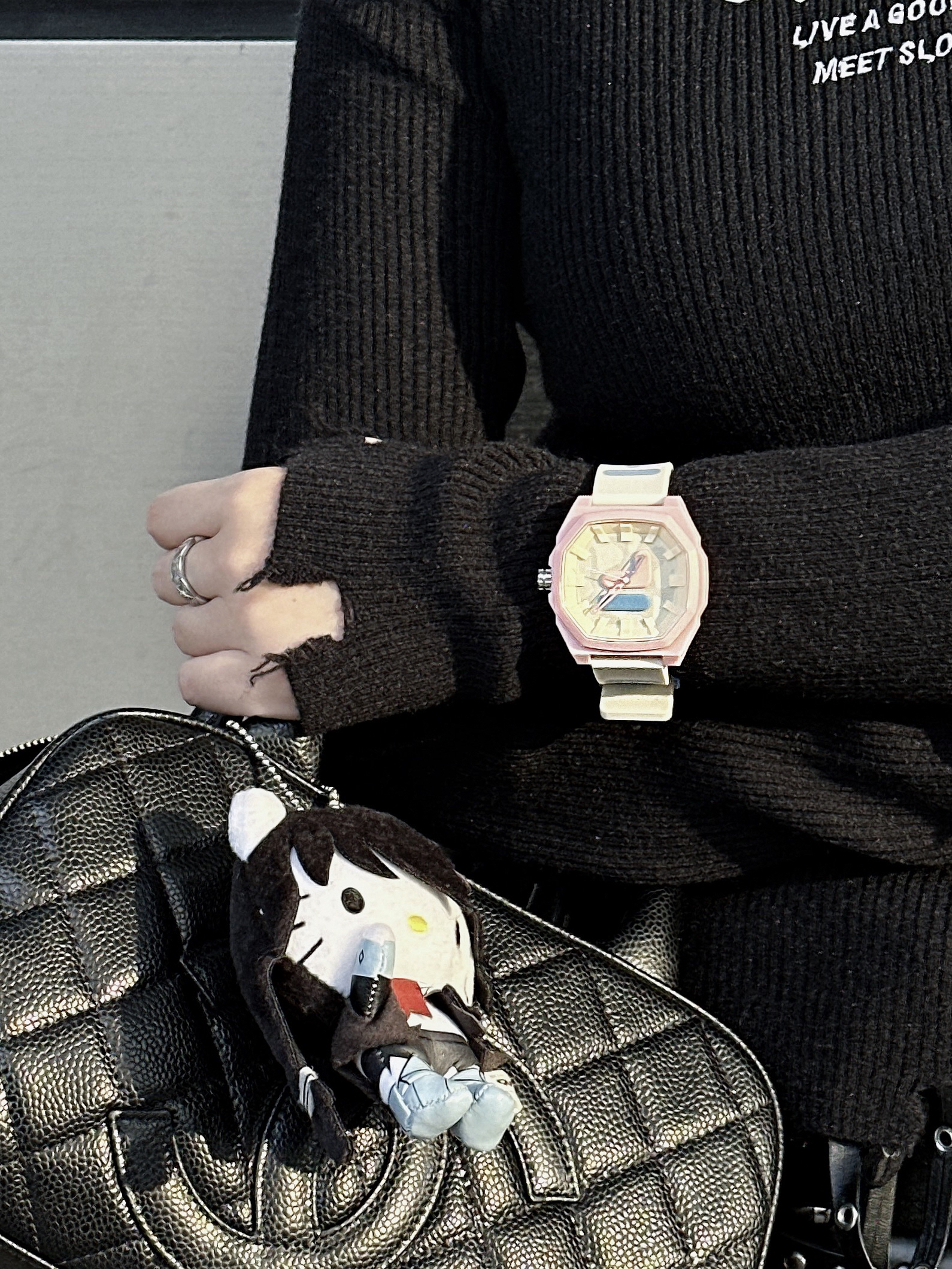 今天是一套all black 家人们谁懂啊 秋冬穿针织太温柔啦 搭配宽松的阔腿裤显得上身贼瘦 还有早八上课党必备小手表 粉蓝配色奶呼呼的 太适合女孩子啦 双十一想要送女朋友礼物的可以看过来咯
