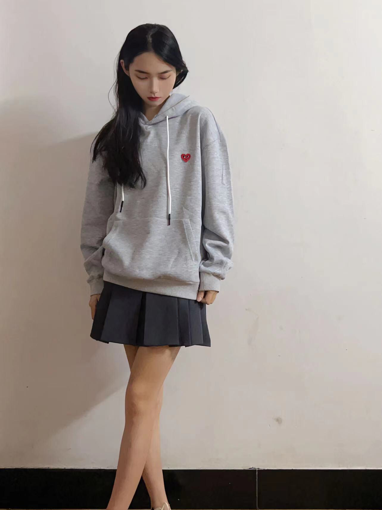 韩式休闲连帽卫衣搭配百褶裙真是yyds!这种休闲卫衣百搭藏肉,休闲慵懒风拉满~