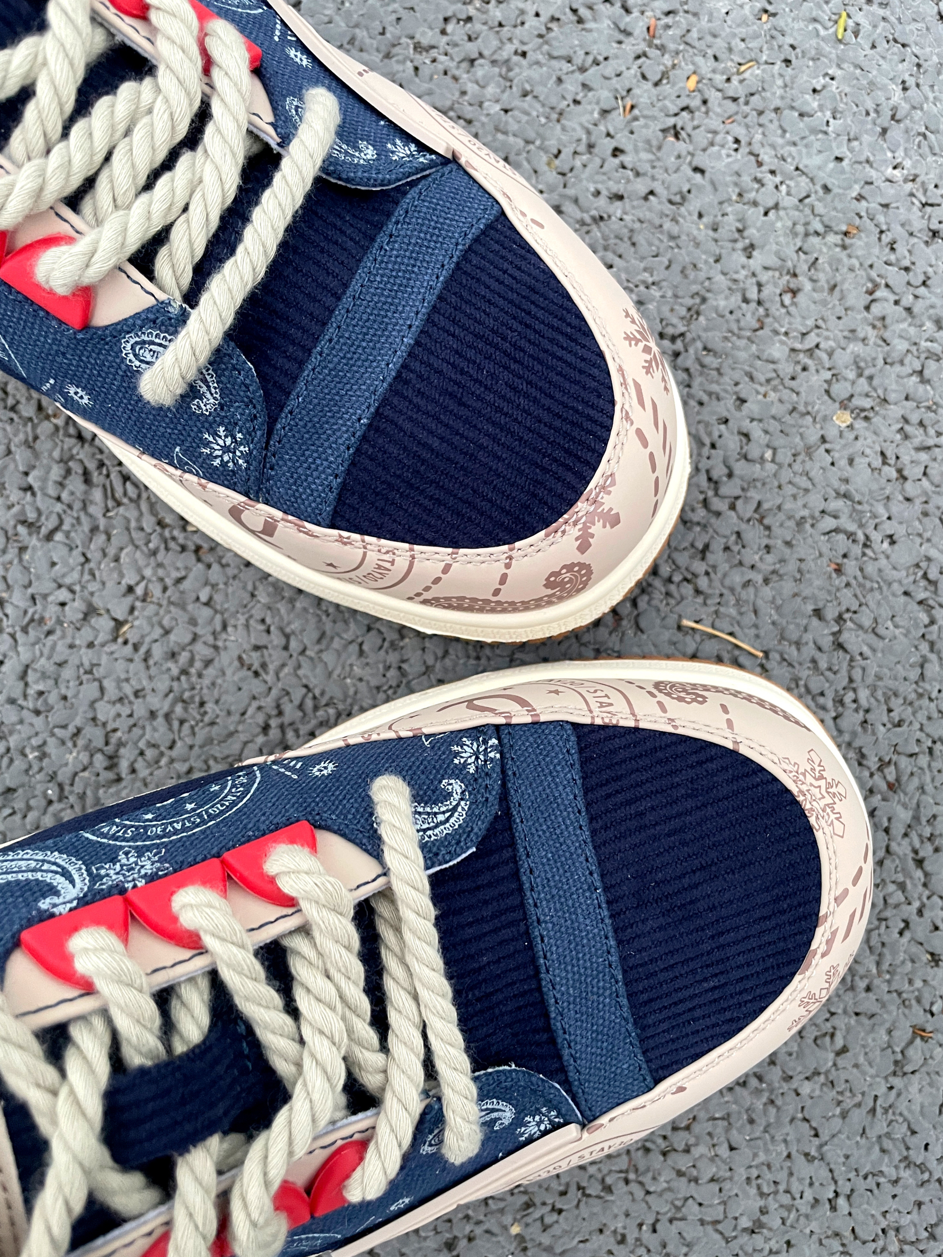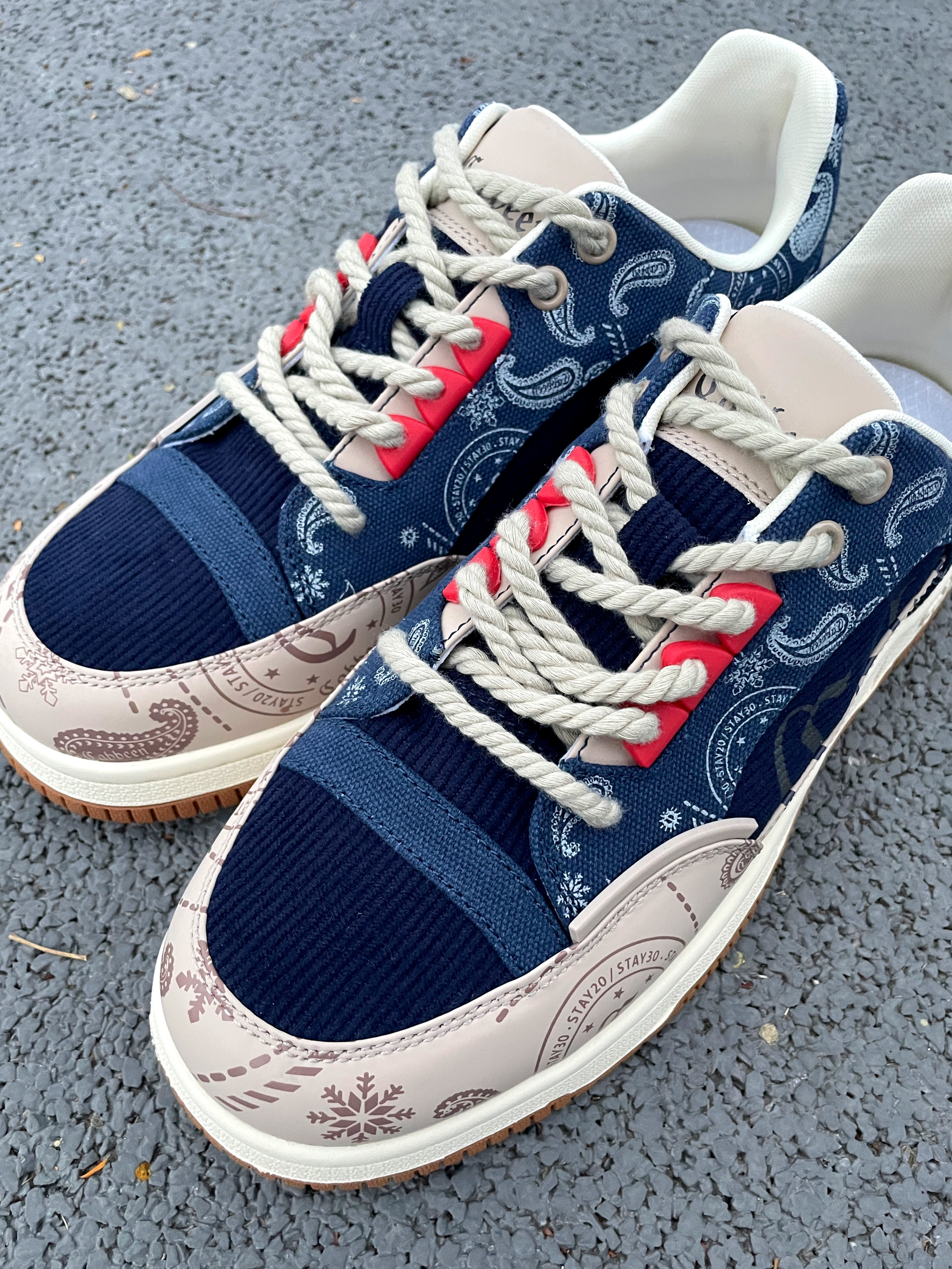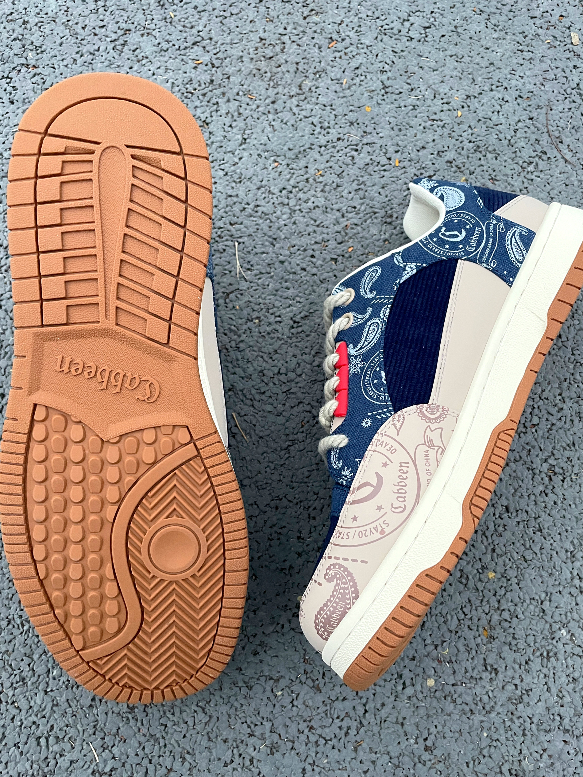 卡宾 潮流拼接复古板鞋真的太百搭啦~ 👖牛仔裤、工装裤、休闲裤等都完全拿捏! 主色调以浅卡其和深蓝色拼接为主 鞋带的加粗设计让鞋子看上去更具复古感🥸 ✨设计感满满!超适合日常生活或者校园穿搭!! 上脚时尚感拉满!传出去就被问链接 🤩🤩🤩复古色万能百搭?!今年秋冬穿搭的神器就是它!!