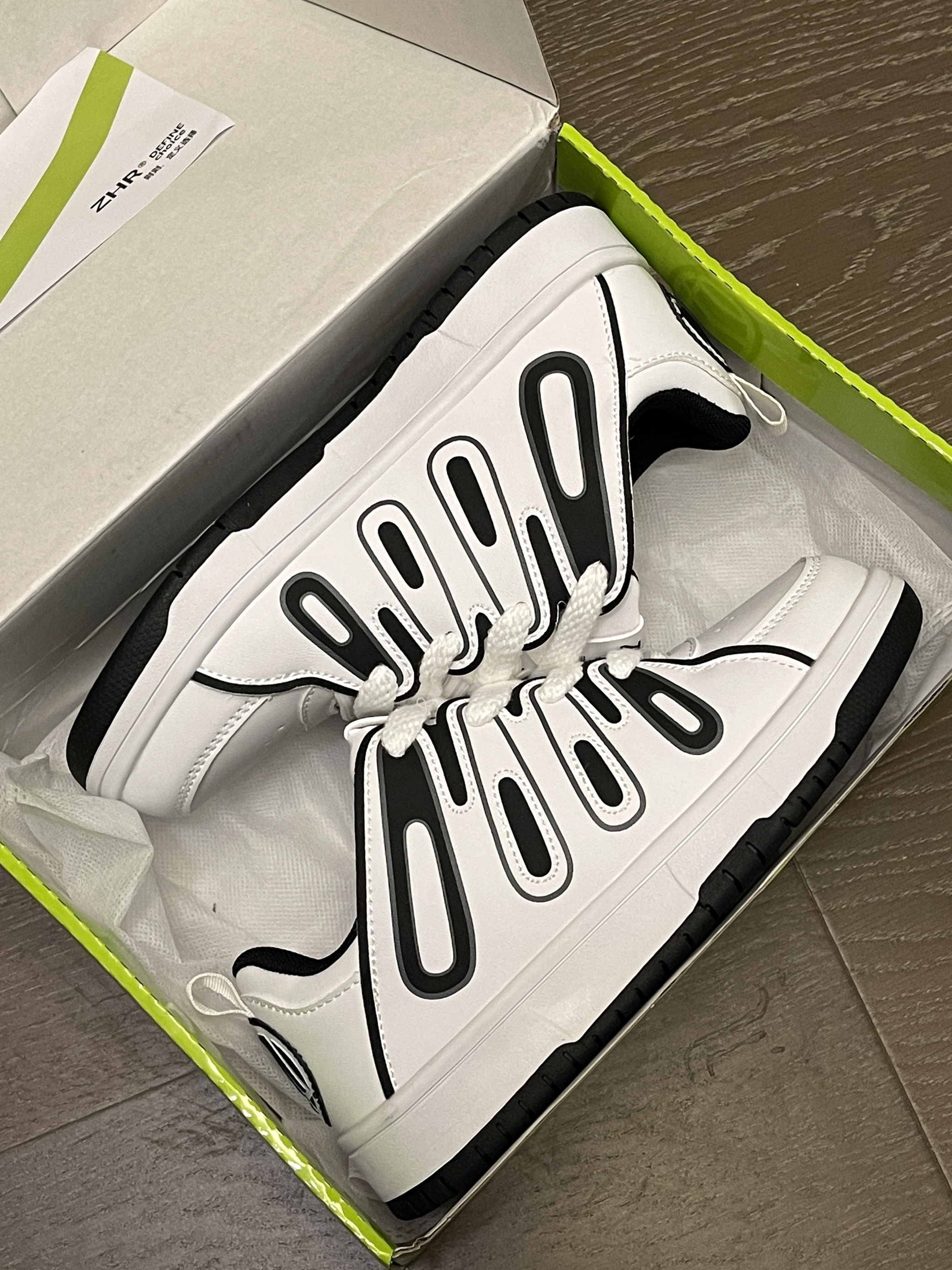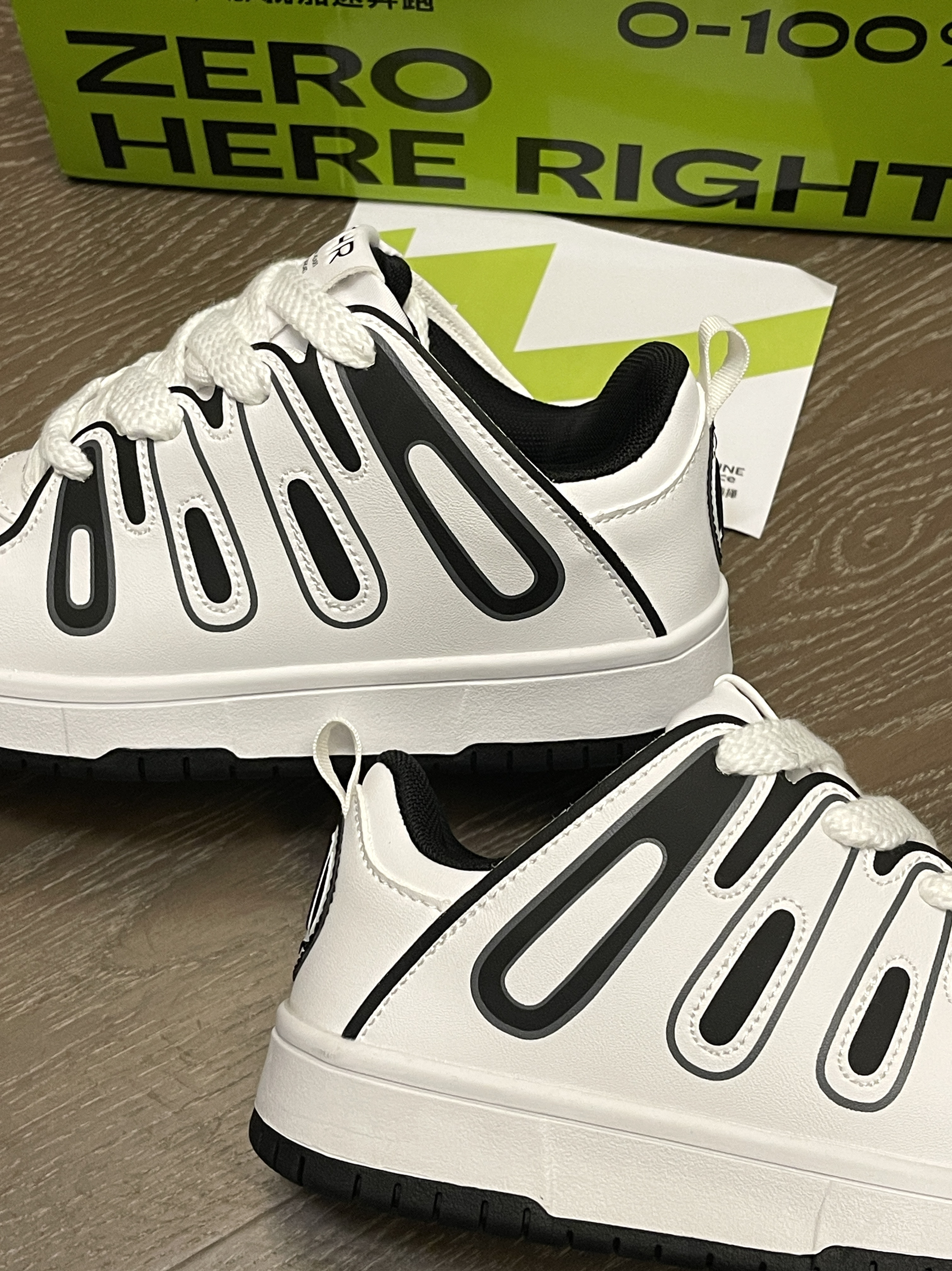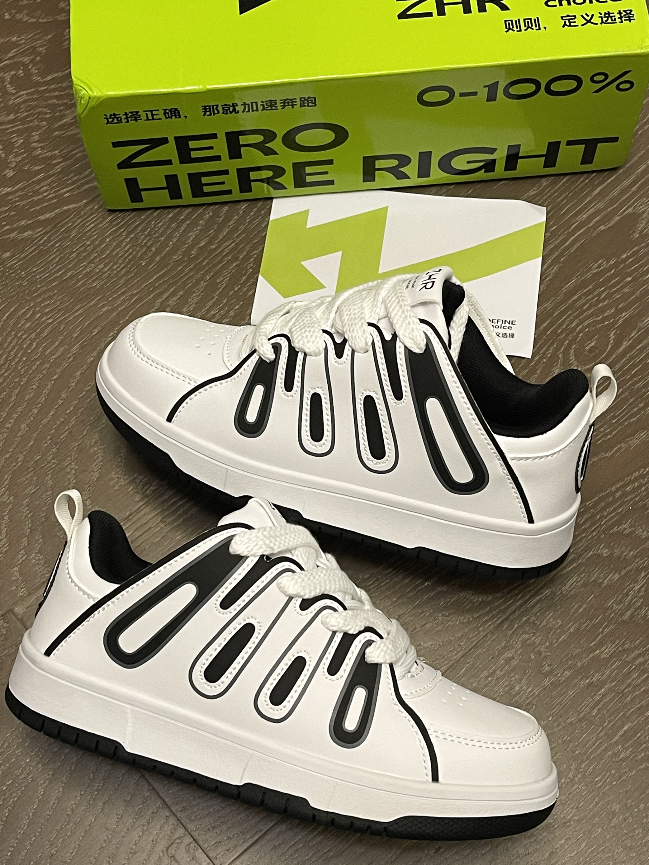 冷空气要来啦,秋冬季节越来越近咯!你的秋冬百搭单品准备好了吗! ZHR|则则 双鞋带设计复古时尚板鞋“黑白”,轻便舒适的鞋型,整体采用超纤皮材质,上脚轻便柔软!鞋面黑白两种颜色进行拼接搭配,奥利奥风格,上脚百搭时尚~性价比很高,不到一百米就可以轻松拿下!🤩