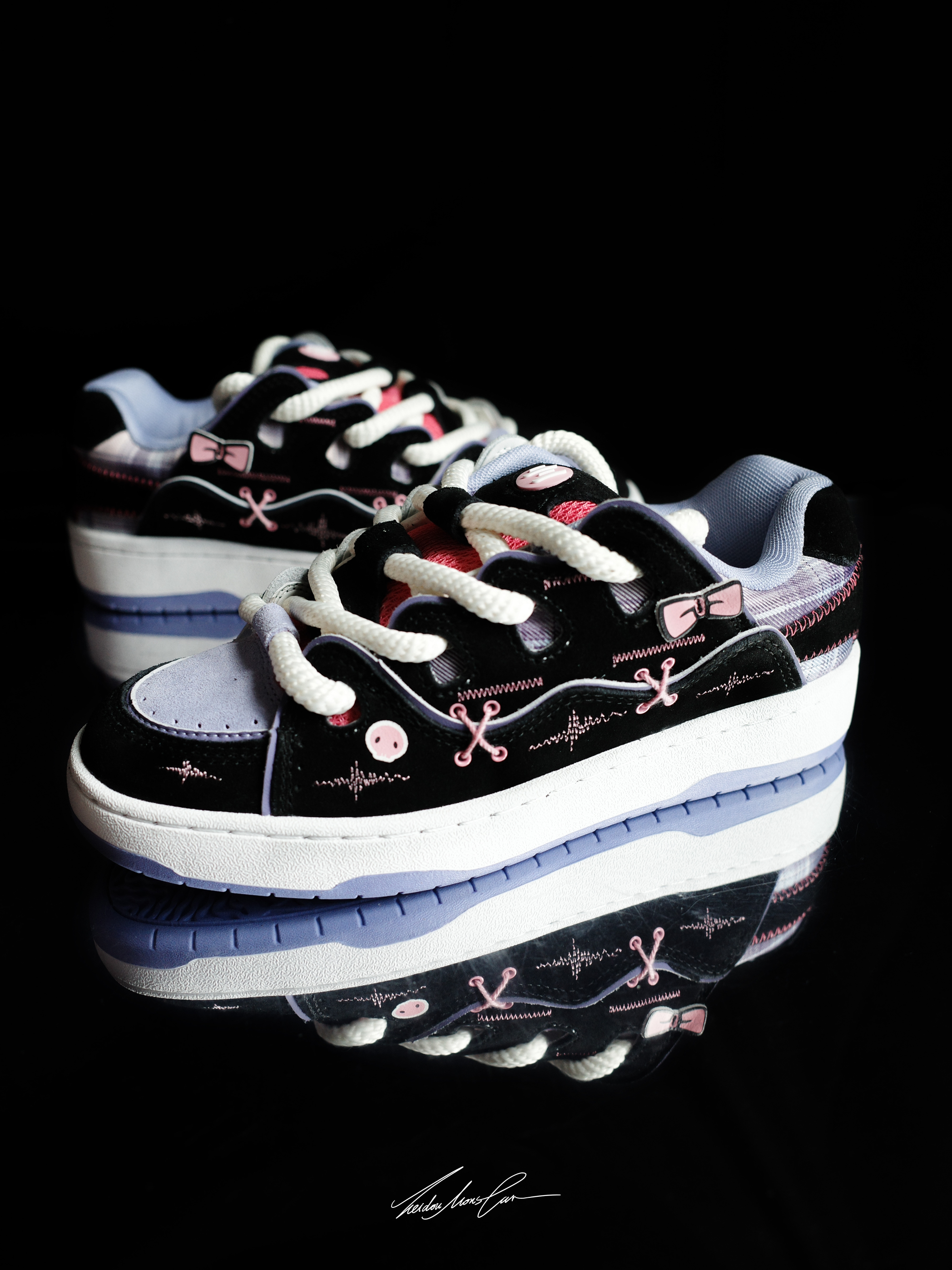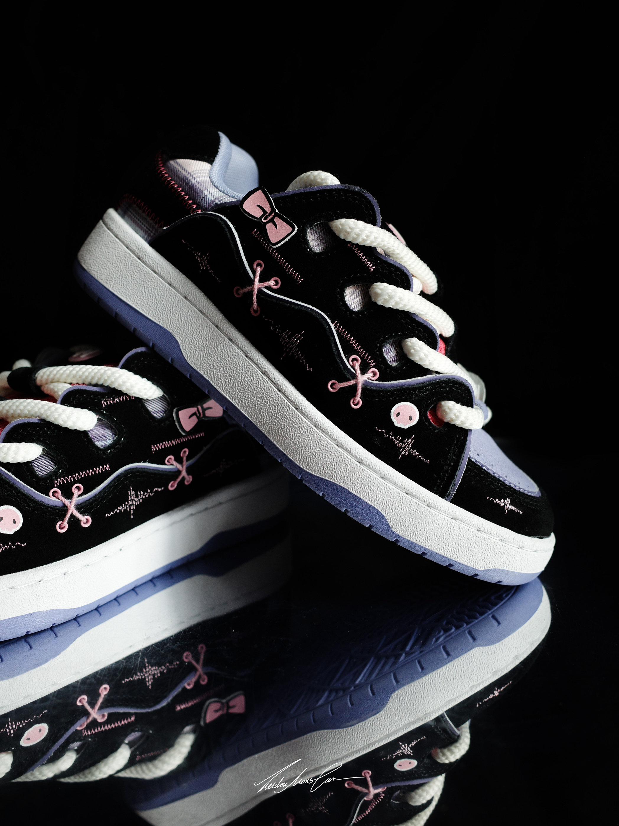 今天种草的这双是来自 顽刻ollieskate 的面包鞋,黑粉紫的库洛米配色太适合女生了,鞋面的装饰相较于之前的鞋款丰富了很多,骷髅头和蝴蝶结一看就是库洛米,鞋型超百搭,秋冬季节搭配牛仔裤休闲裤都是不错的选择。目前鞋子的价格才二开,喜欢的朋友不要犹豫,闭眼入就完了!