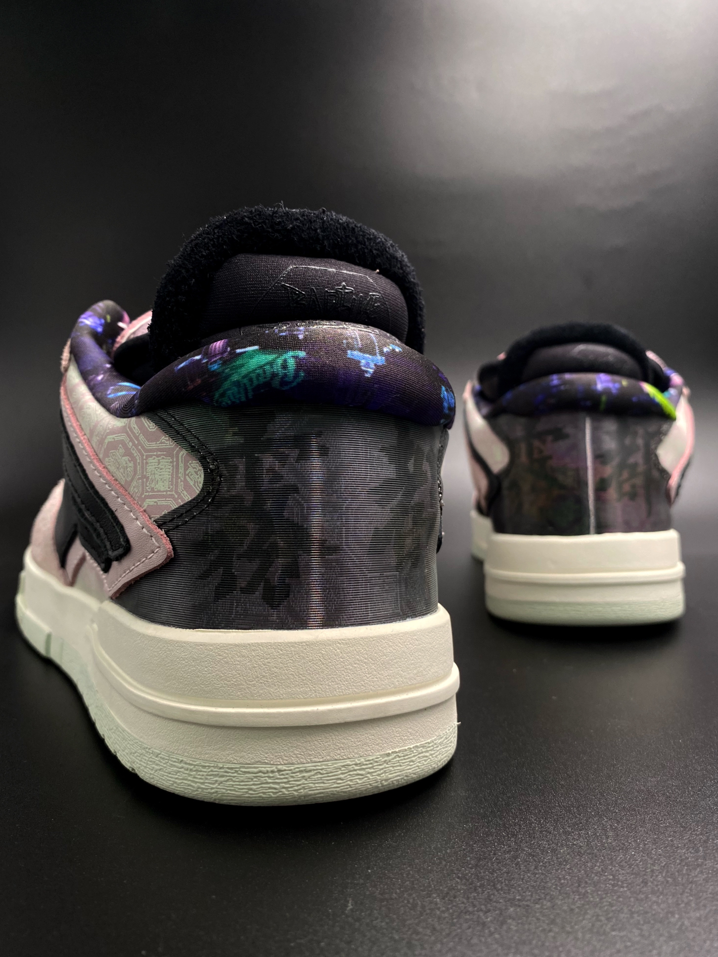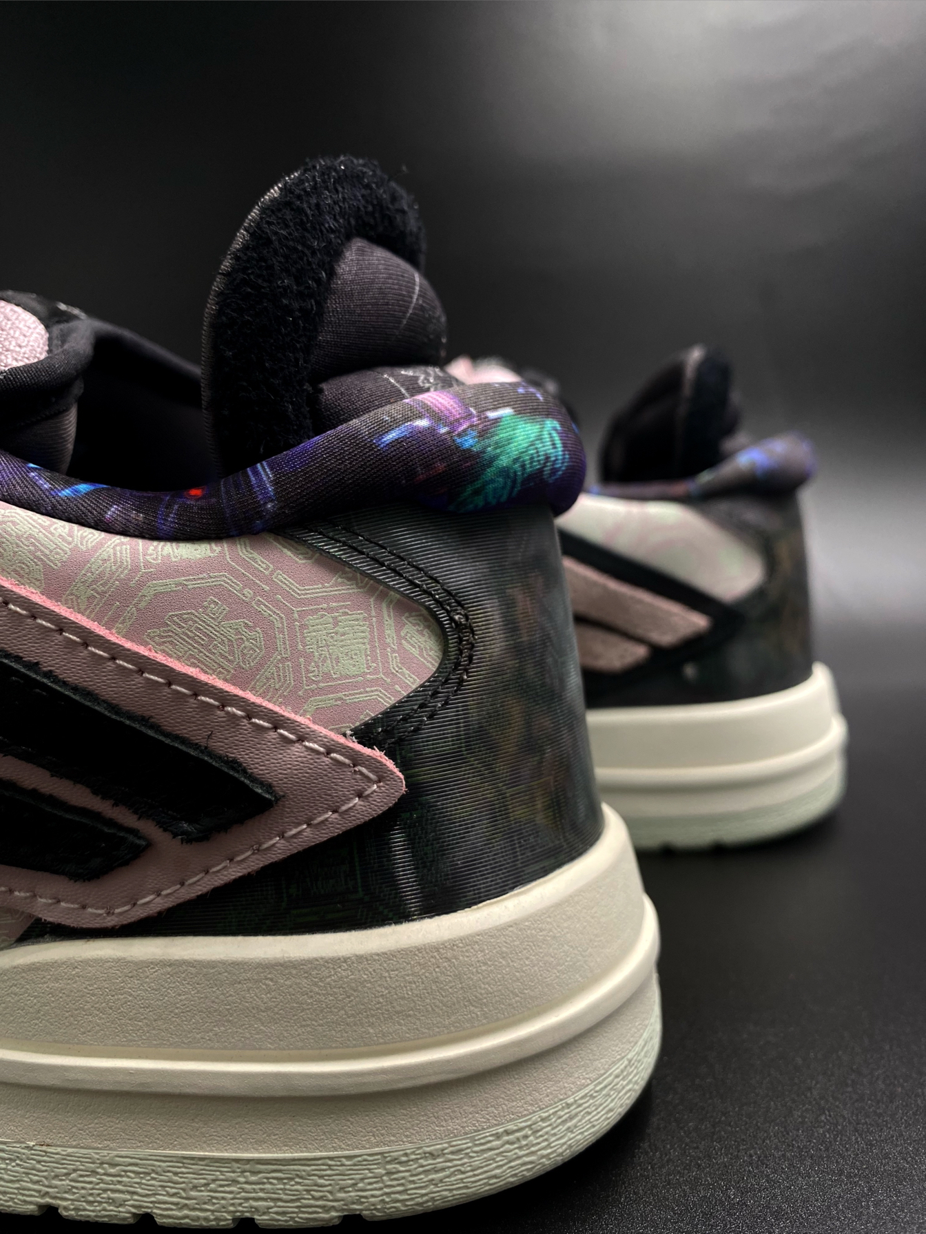我觉得惟吾Pro的城市系列都是非常有特色非常好看,这双重庆的雾都大势采用黑粉配色简直戳中心窝。后跟和鞋舌有闪卡效果,非常炫酷,内衬里也采用了充满未来感的赛博朋克风格。而鞋子材质方面,翻皮毛的运用我个人也是非常喜欢,质感满满。