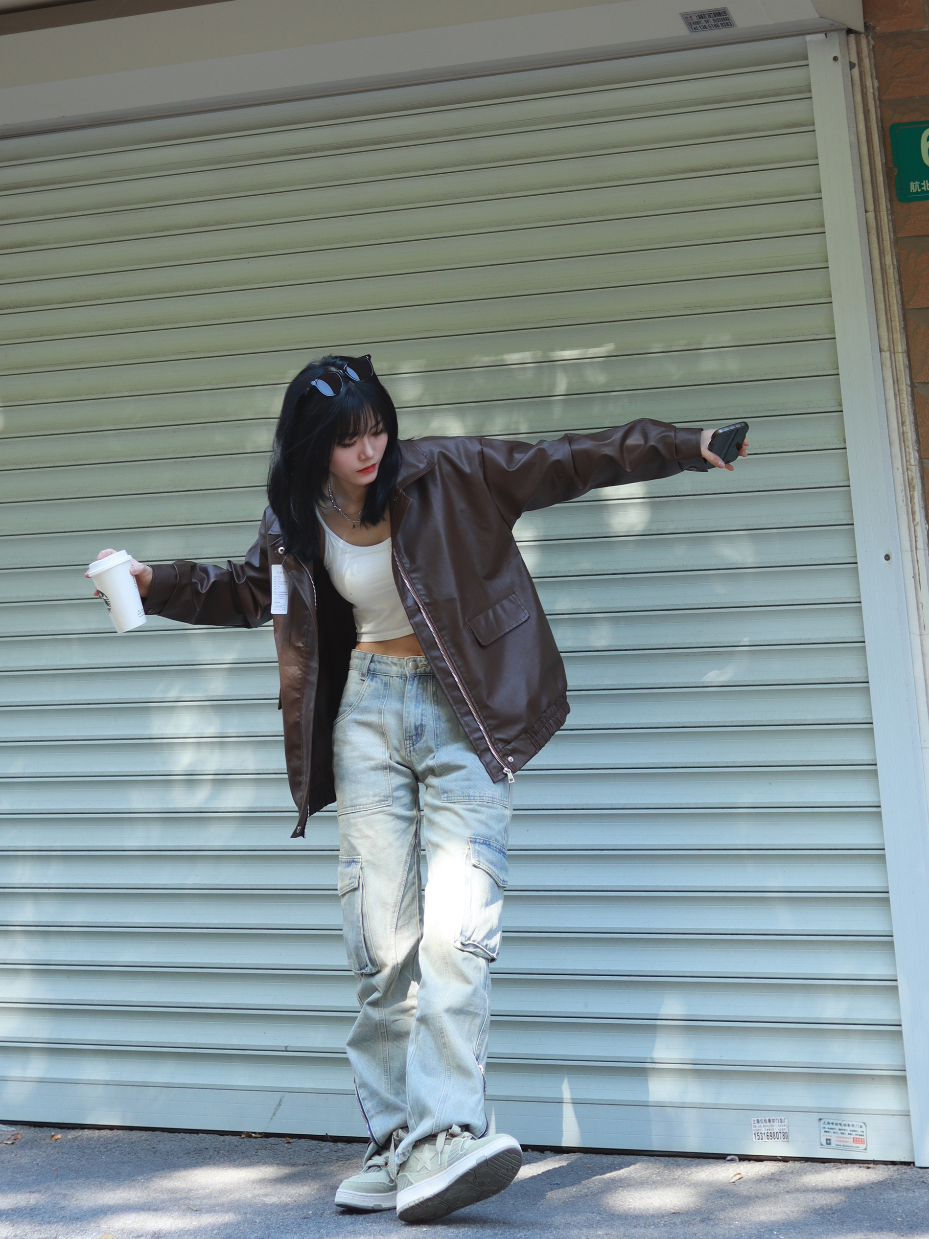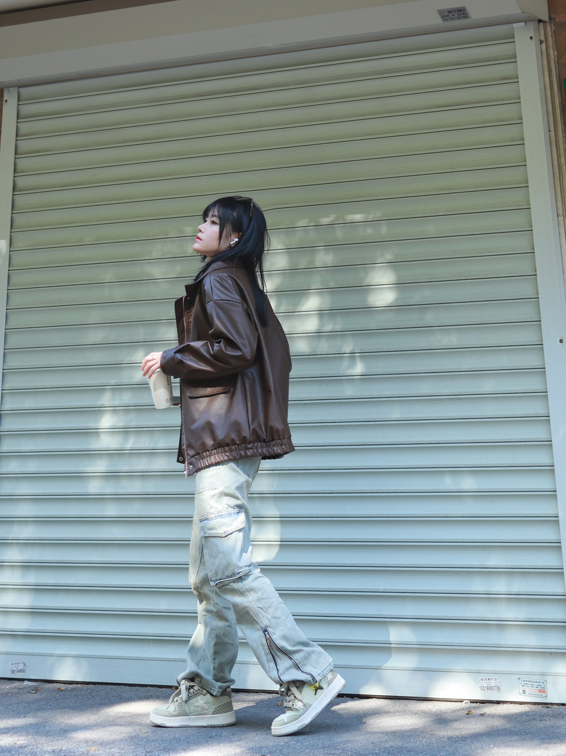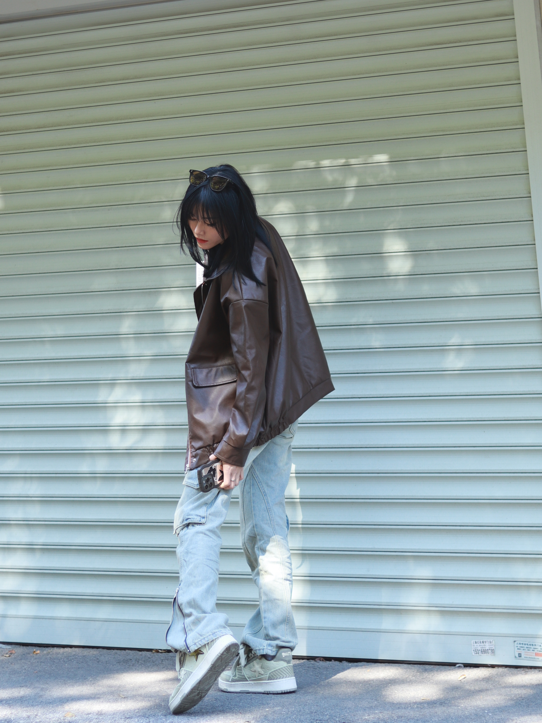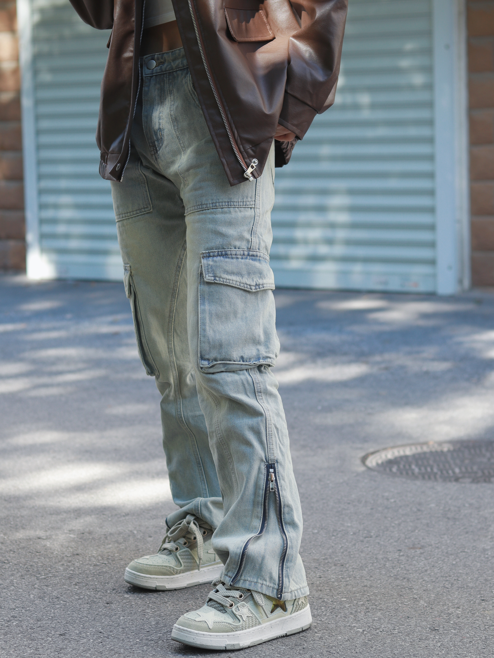 普通人也能拍出氛围感穿搭 哈喽大家好,这里是@章鱼小丸子嘟 👕:咖色皮衣外套 👖: Voguo Relay 牛仔裤 👟: KAALIXTO 西湖龙井星星板鞋 普普通通的衣服搭配的好也可以很好看,比如说这条牛仔裤,它的颜色本身就蛮复古的,水洗做旧的风格,再加上它的多口袋设计,哦对了裤脚侧边还有拉链的设计,工装、复古还有金属感都有了,它就变得不再普通了。 这样一条裤子再搭配一双西湖龙井,...