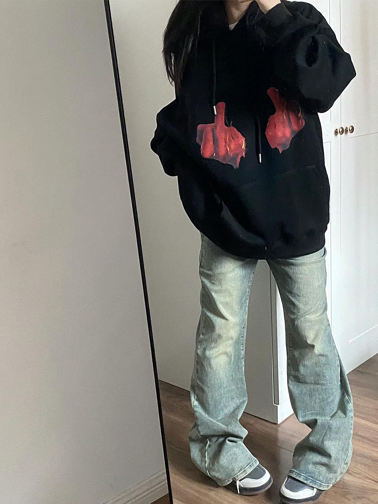 本篇笔记关联了【王一博同款】HELIPORT 水洗工艺系列美式做旧垂坠感修身不硬直筒牛仔长裤 K11 黄泥染、摇滚计划 中指手势印花连帽长袖T恤 A4716 复古黑等商品,为用户提供真实的使用体验和购买参考。