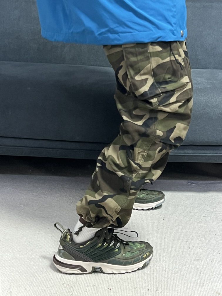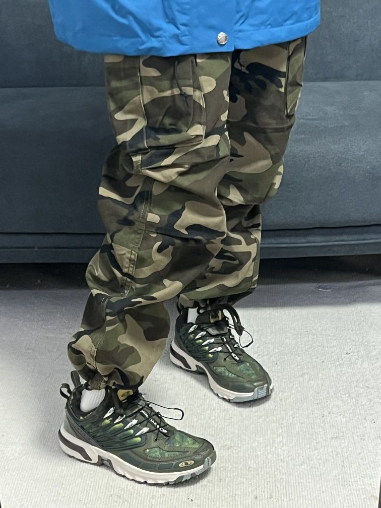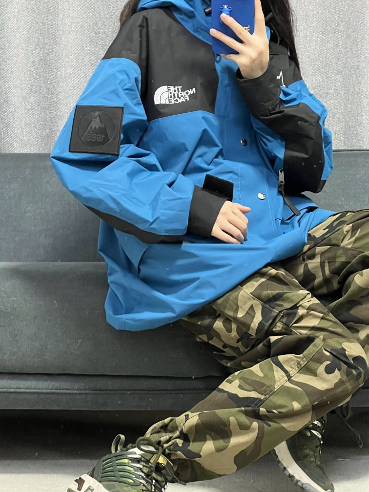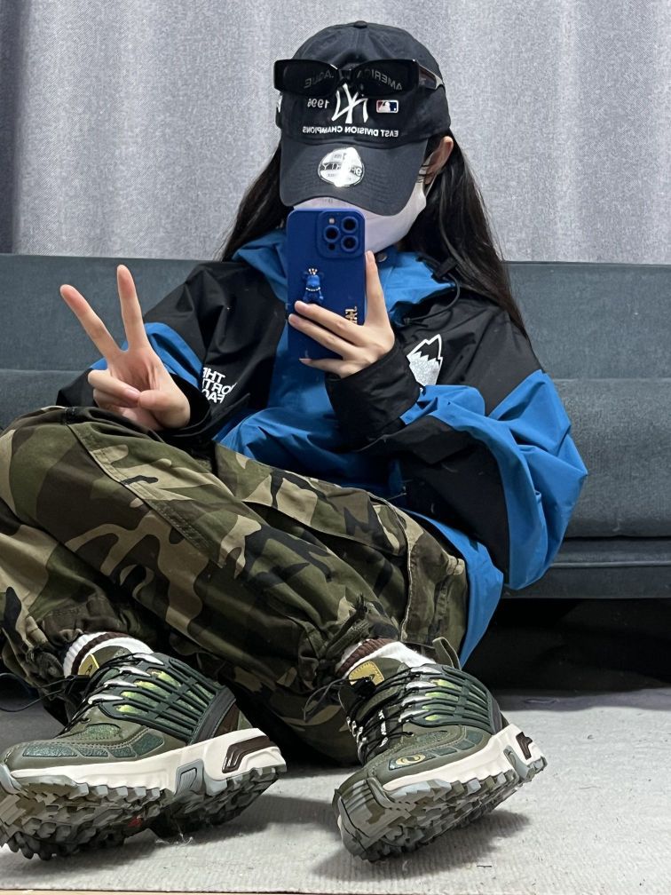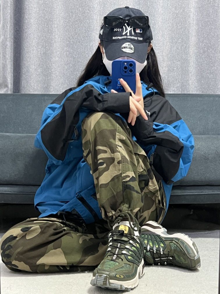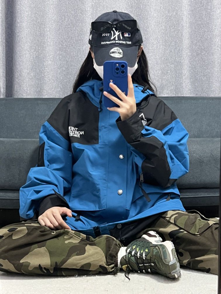 大脸妹163/47, m码 •北面冲锋衣真的帅呀,除了贵没有别的毛病,蓝黑色的拼接设计,上身真的超好看!!比较轻薄的款,爬四菇凉雪山,冲鸭 •工装迷彩裤,上身效果不错,比较帅,下面有 抽绳设计,可以自由调节, --塞洛蒙户外鞋,渐变色绿色,在光线下,会渐变出不同的颜色,帅是真的帅,个人觉得性价比不高,国产鞋现在也做的很好,喜欢的也可以入,脚感还是很不错的~ 穿这套去户外,做个靓仔~