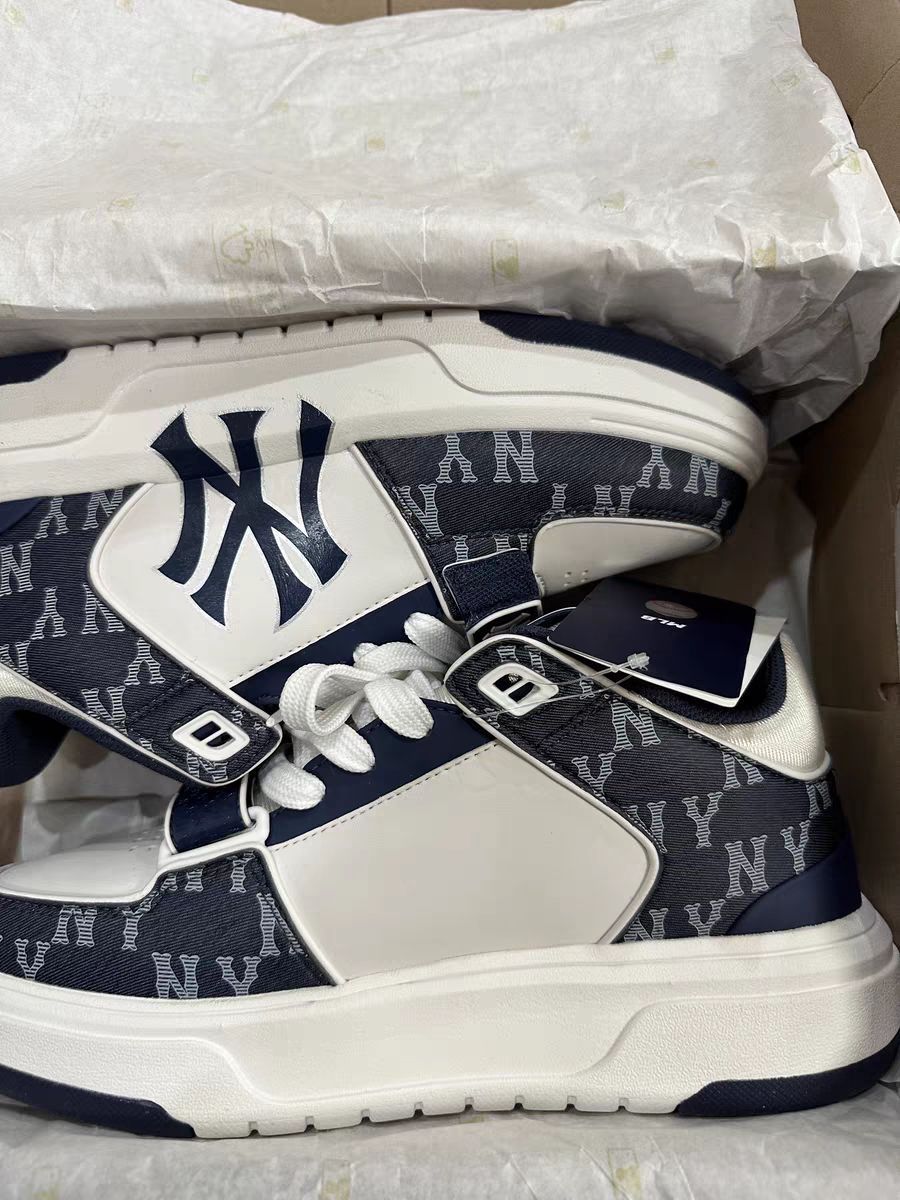 这款 MLB 的经典老花配色哦,穿上非常减龄又好看,鞋身外侧经典的蓝色 LOGO 搭配白色皮面底色也非常好看哦,而且是男女同款,可以搭配情侣款穿起来,平时搭配裙子,休闲系列都腓常不错!码数正码推荐。